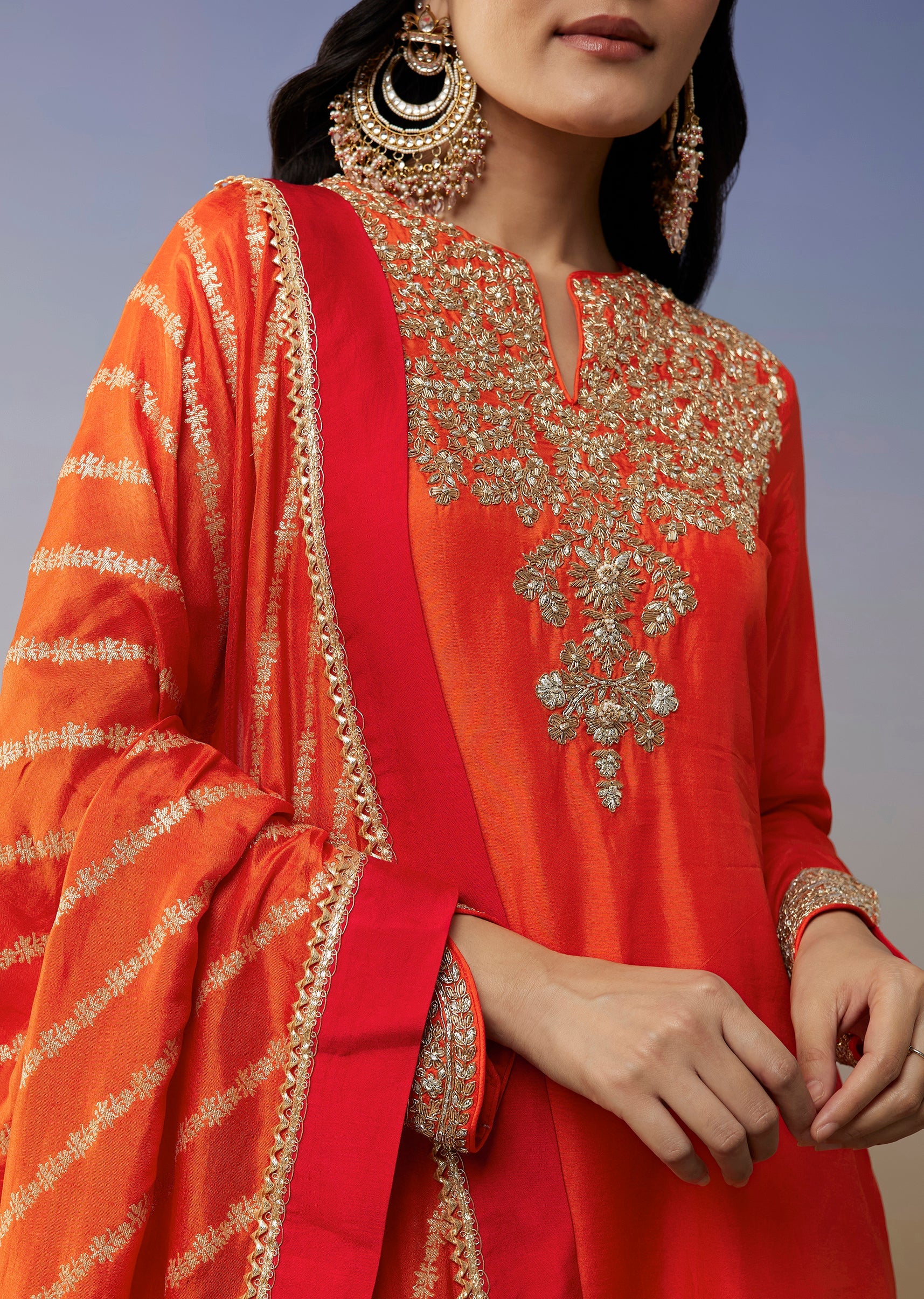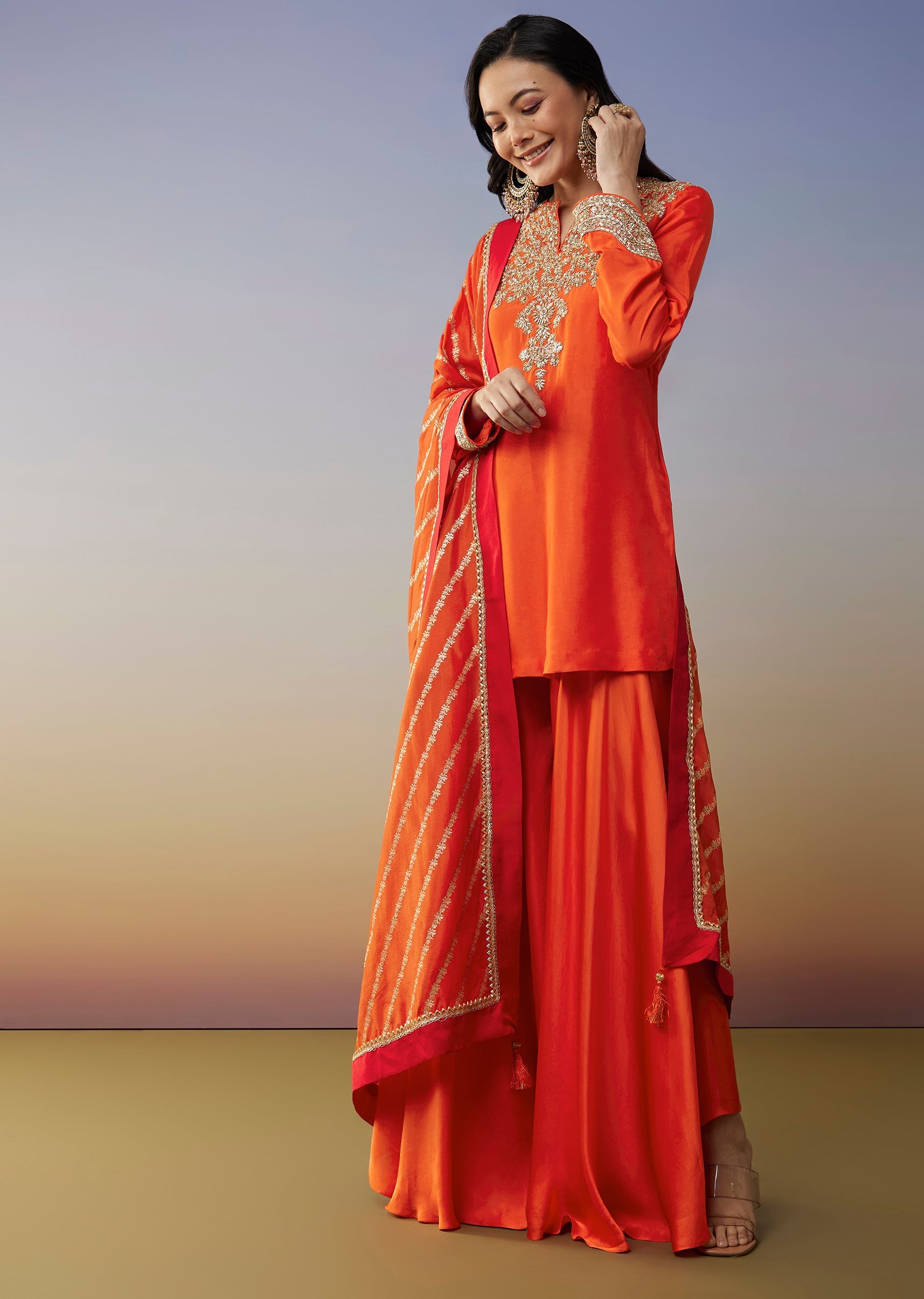 Orange Viscose Satin Palazzo Suit with Zardosi Work