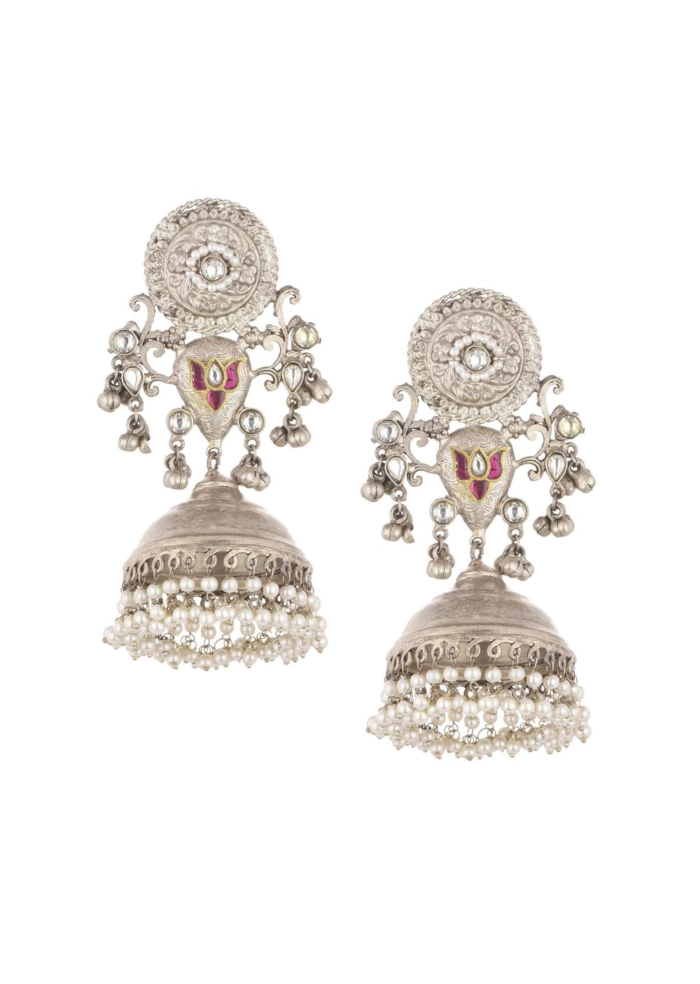 Oxidised Silver Finish Jhumkas With Meenakari Work