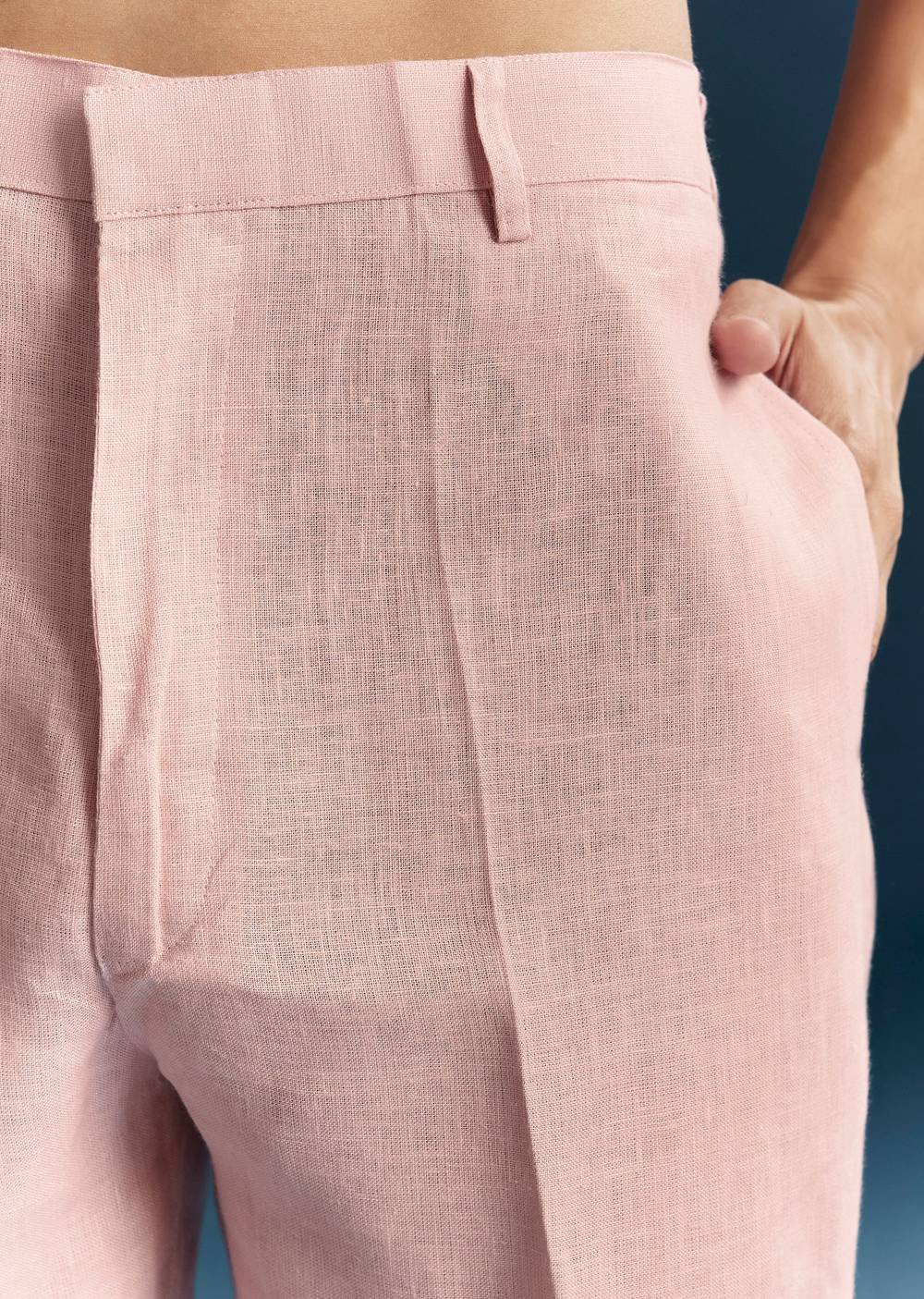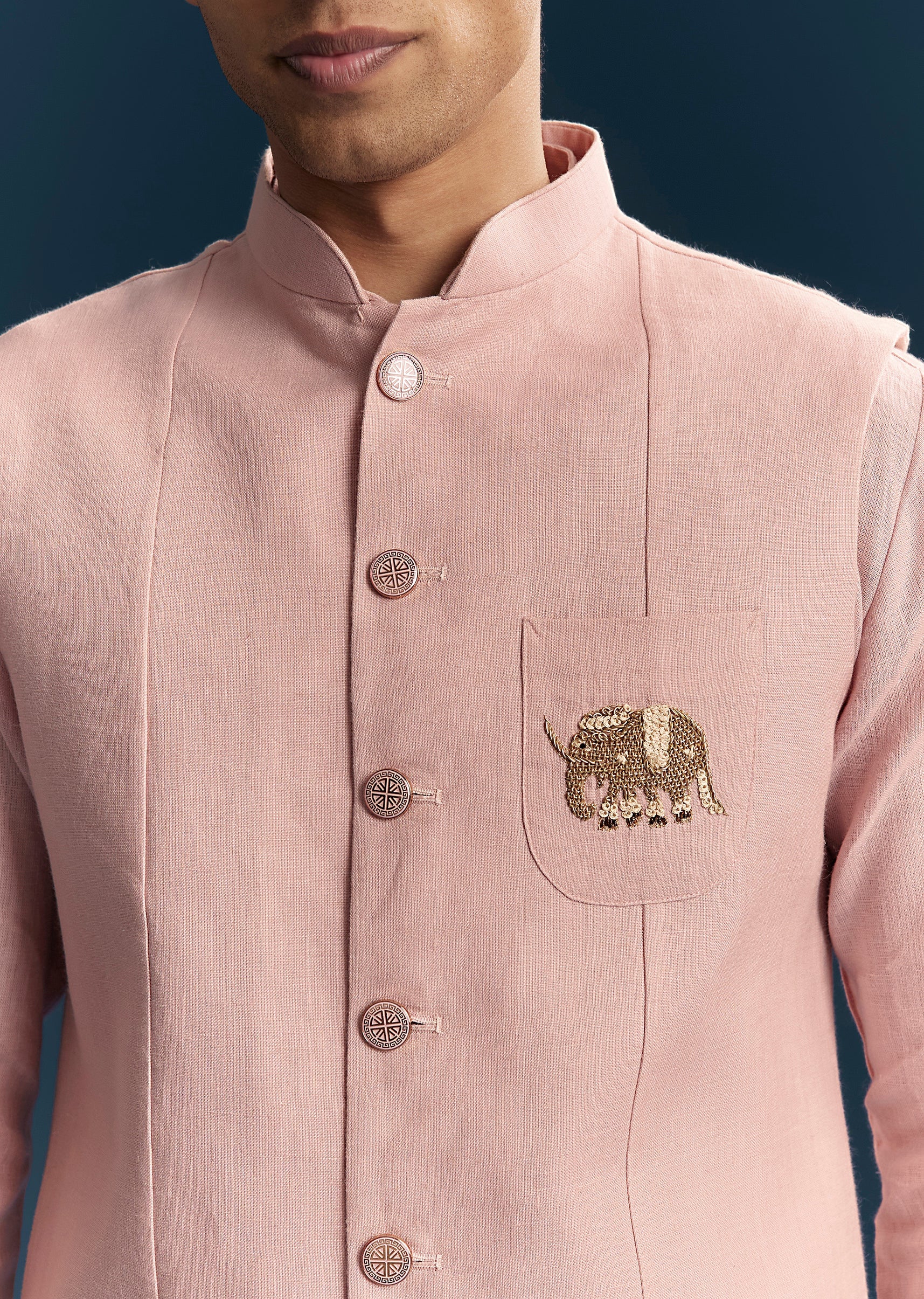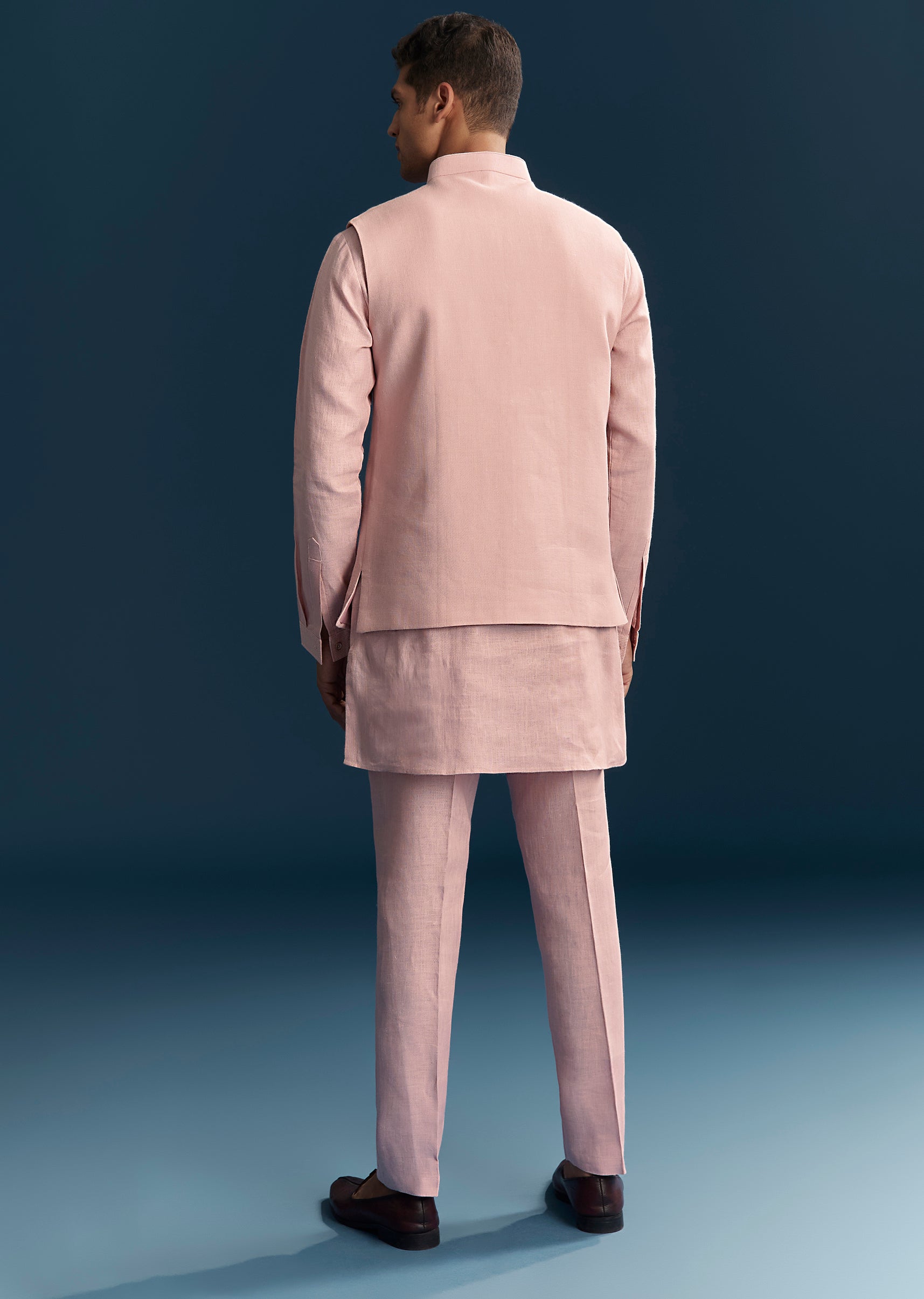 Pastel Pink Silk Kurta Jacket Set With Thread Detail Work
