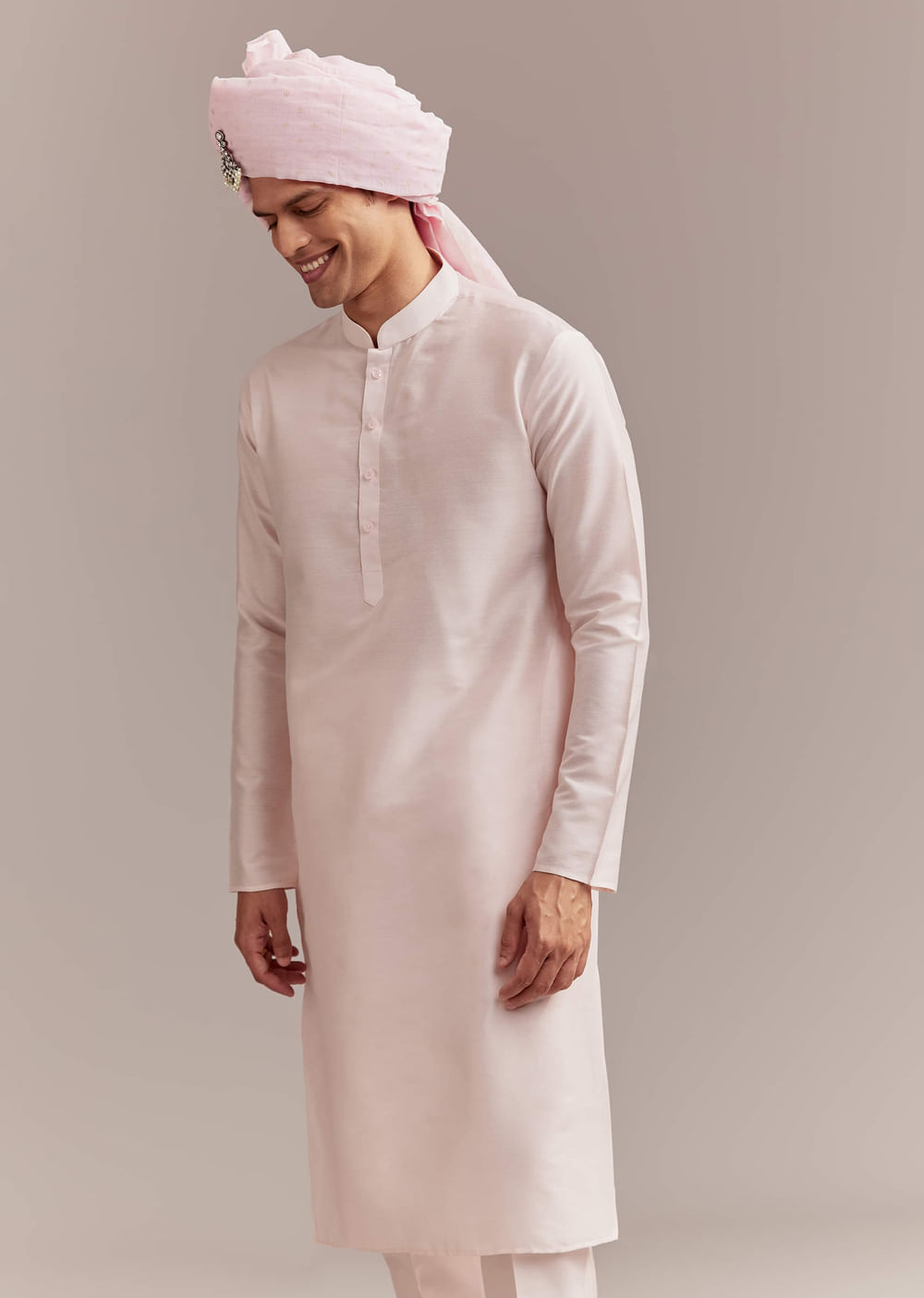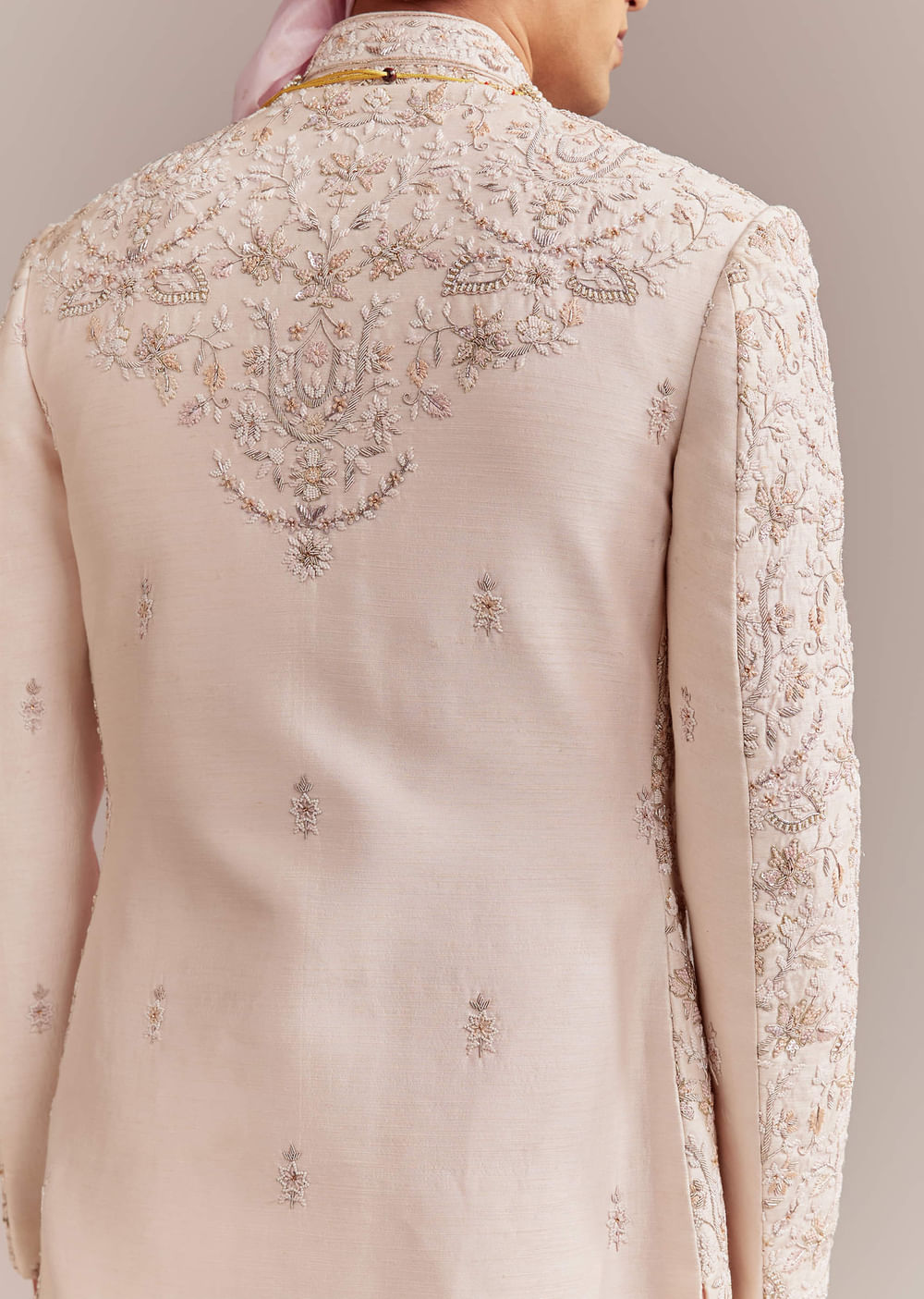 Pastel Pink Silk Sherwani For Groom With Intricate Embroidery