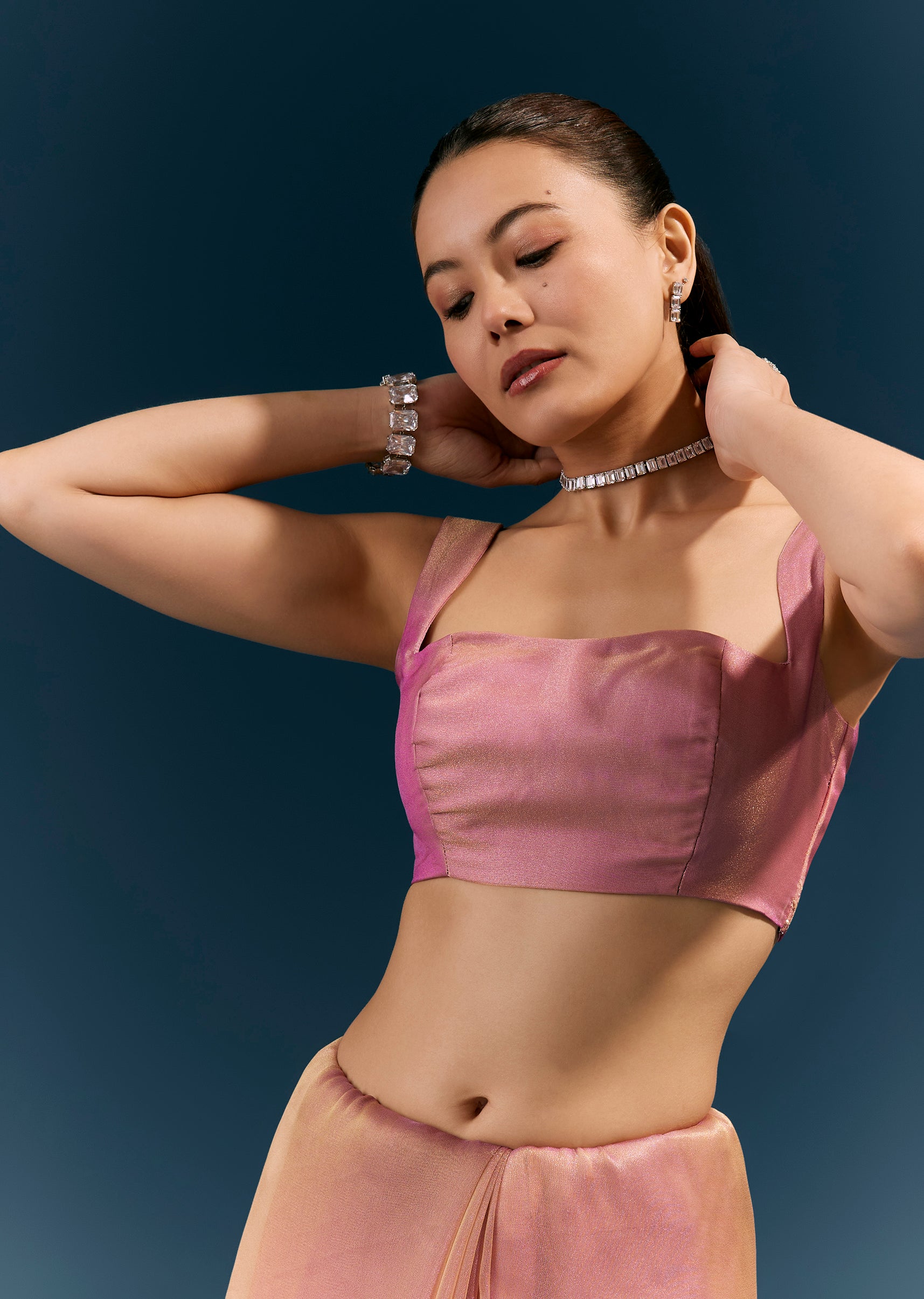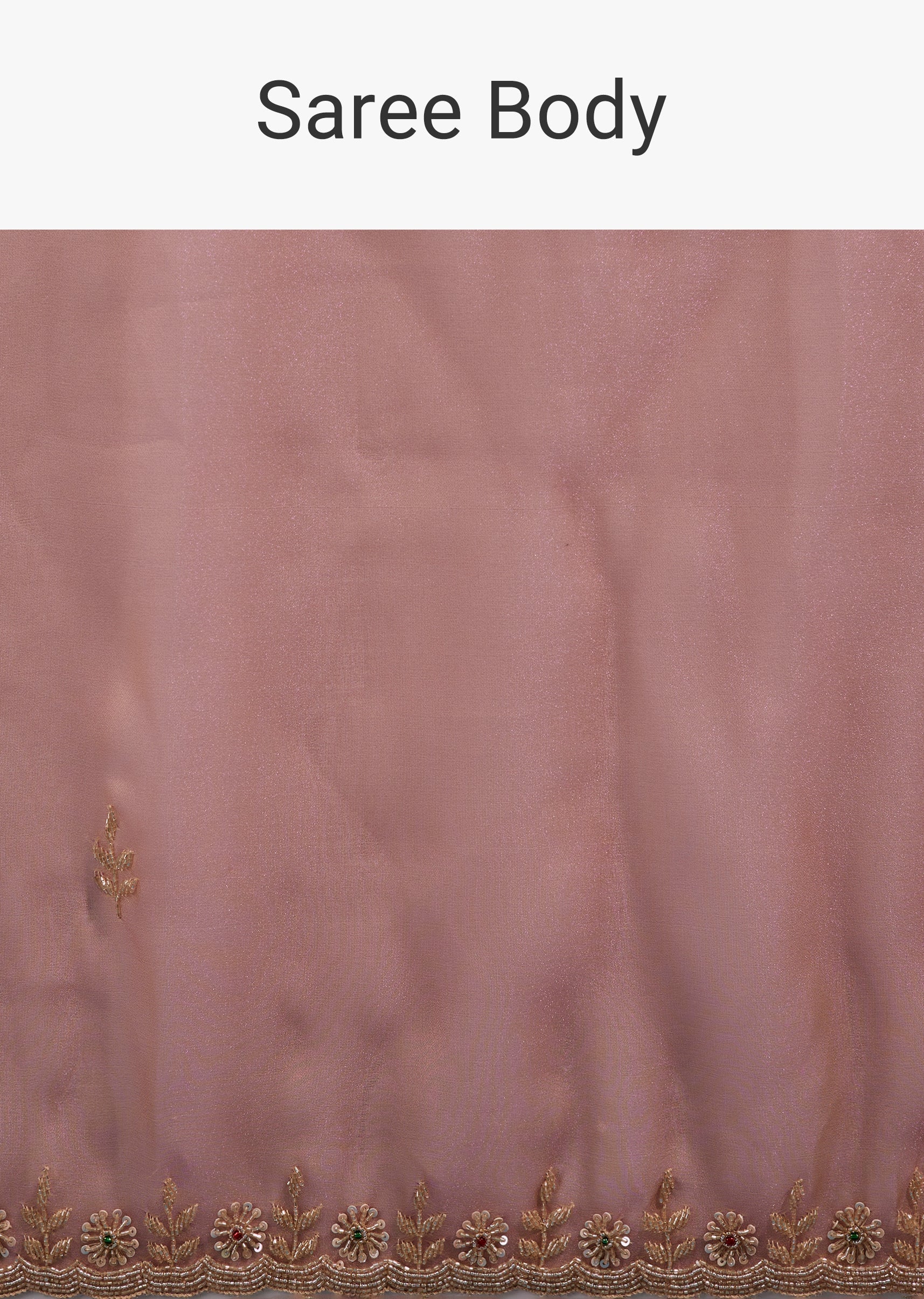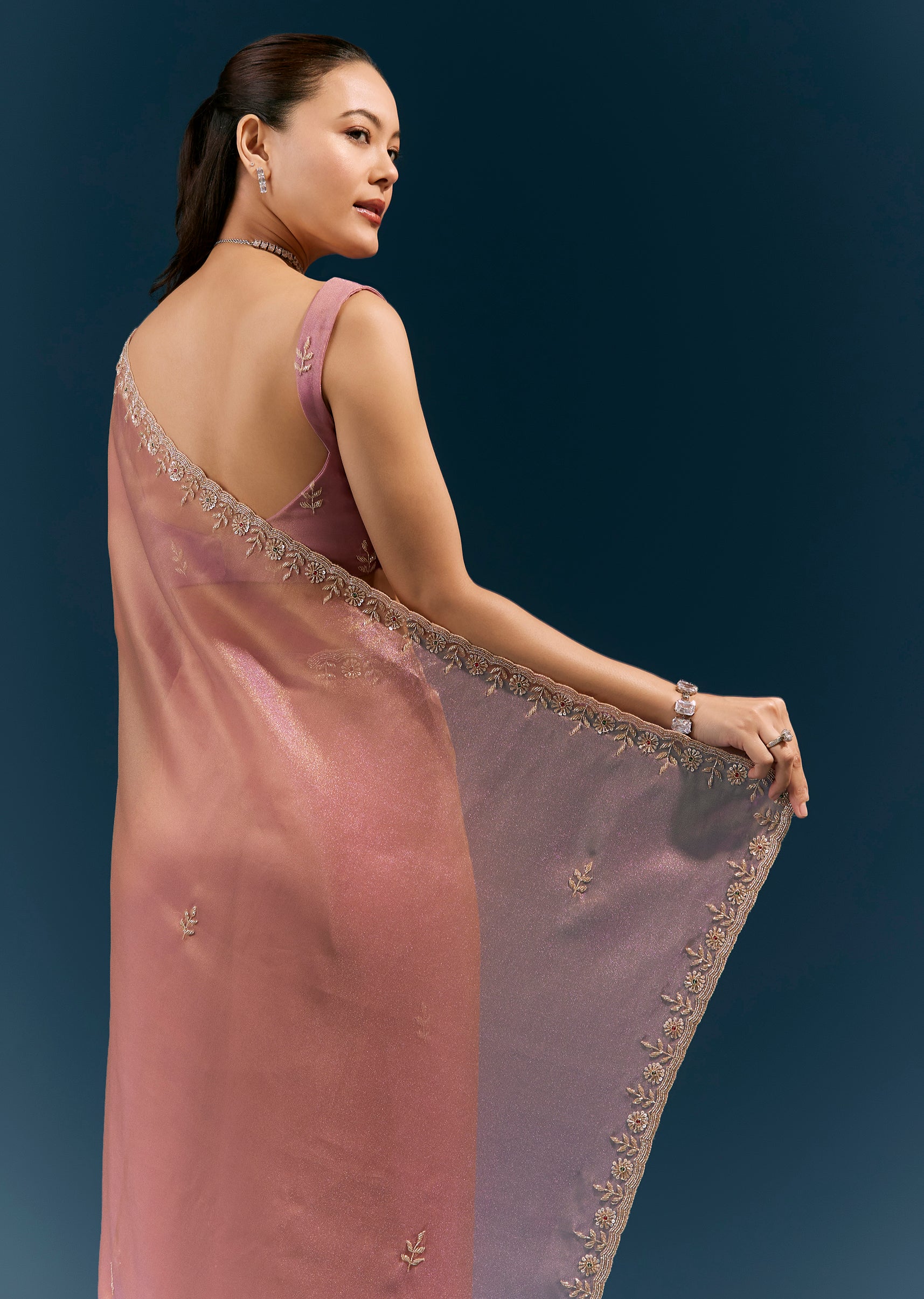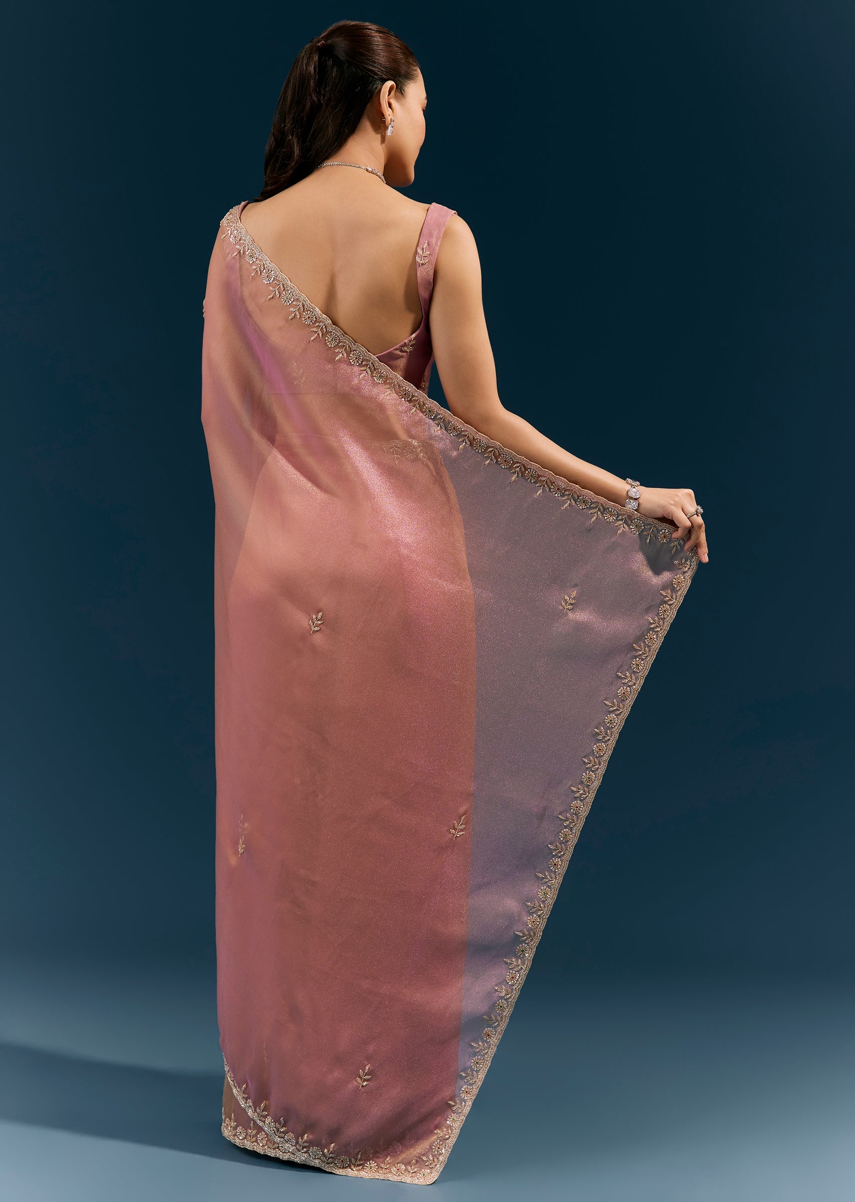 Pastel Pink Tissue Saree With Scallop Border Cutda Work And Stone Highlights