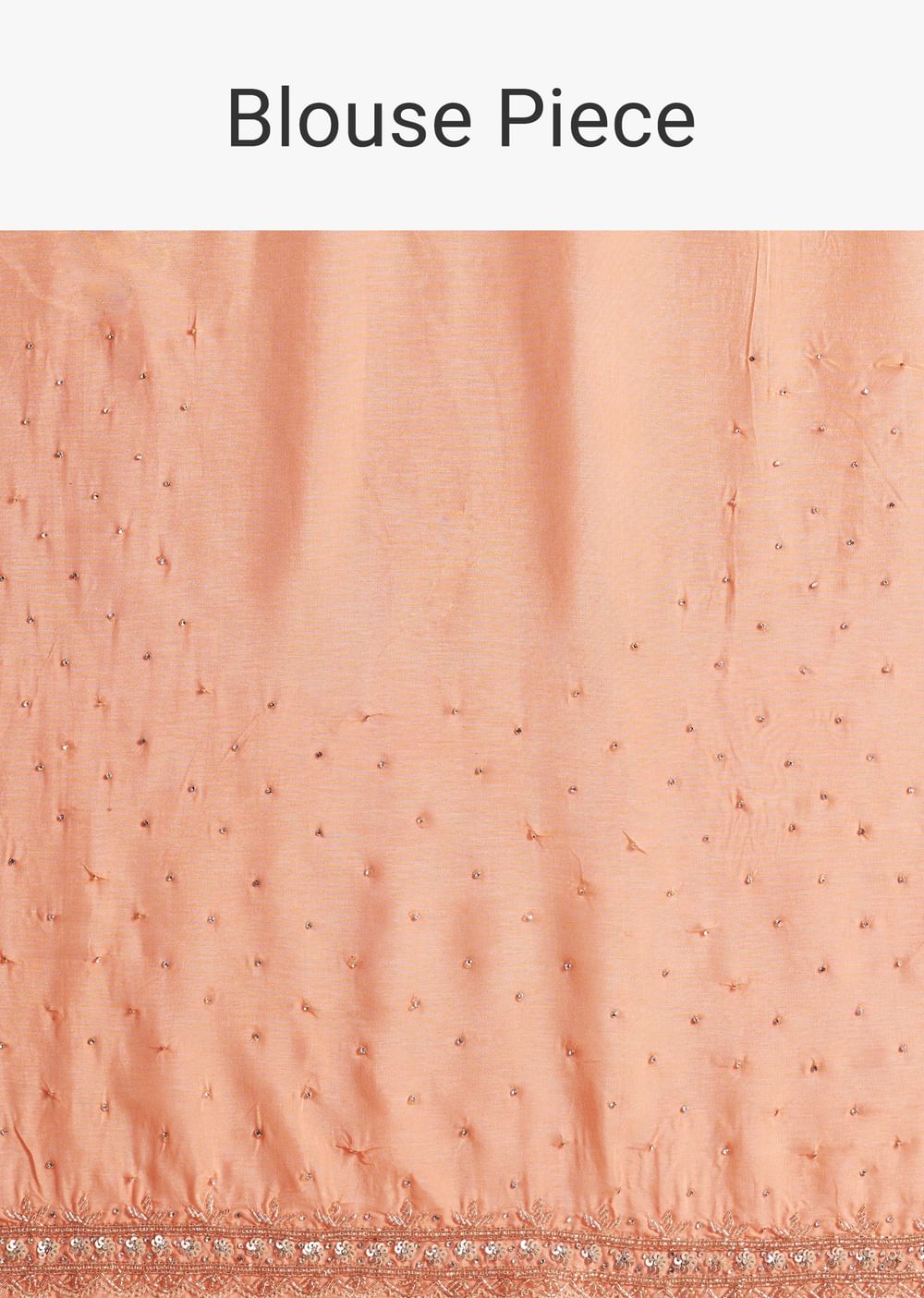 Radiate understated elegance in this pastel peach crepe saree blooming with a multicolor floral print. Stone and sequin embroidery gives it a refined shimmer, perfect for engagements or day events.... More Product Details