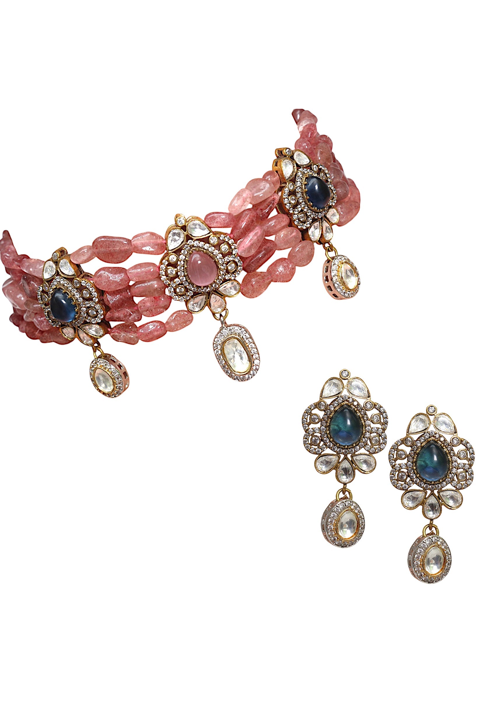 Peach Fusion Pendant Drop Stone Necklace Set