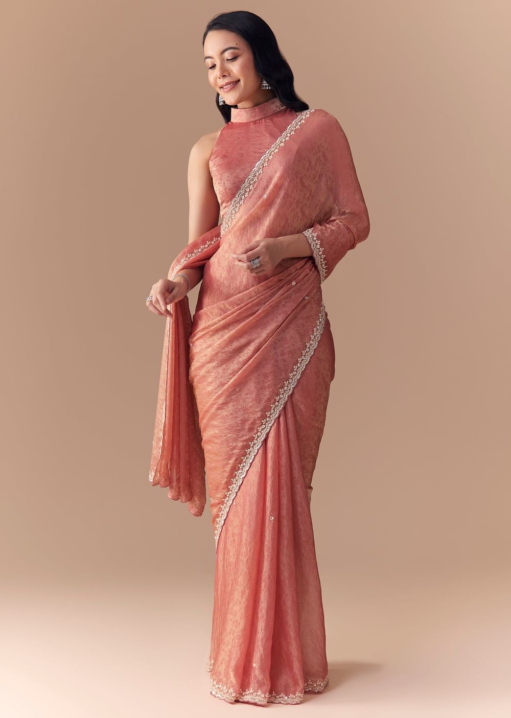 Fit Tips:Stitch the blouse for a tailored fit to enhance the saree’s fluid drape and intricate detailing.
