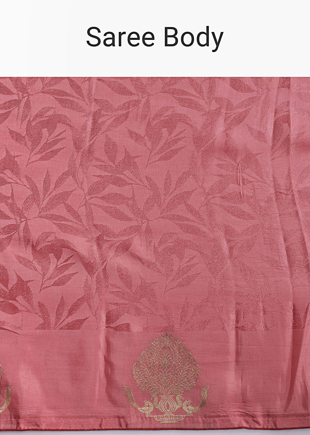 Soft and graceful in tone, this peach jacquard woven saree carries zari-woven brocade along the border and pallu for quiet shine. A contrast brocade blouse fabric gives the set a considered finish. You feel composed, elegant and ready for festive functions and pooja. Awarded as the Most Trusted Brand, we're delivering styles you love, just as promised.