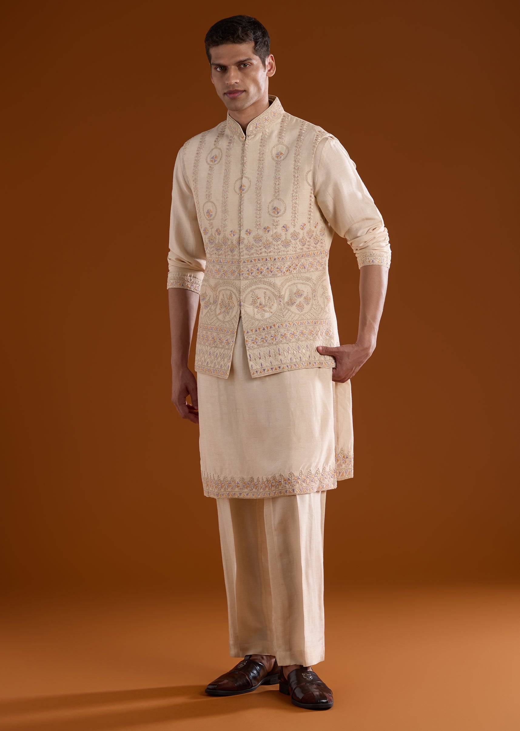 Fit Tips:The jacket should align well at the shoulders, with the kurta offering ease and comfort throughout the event.
