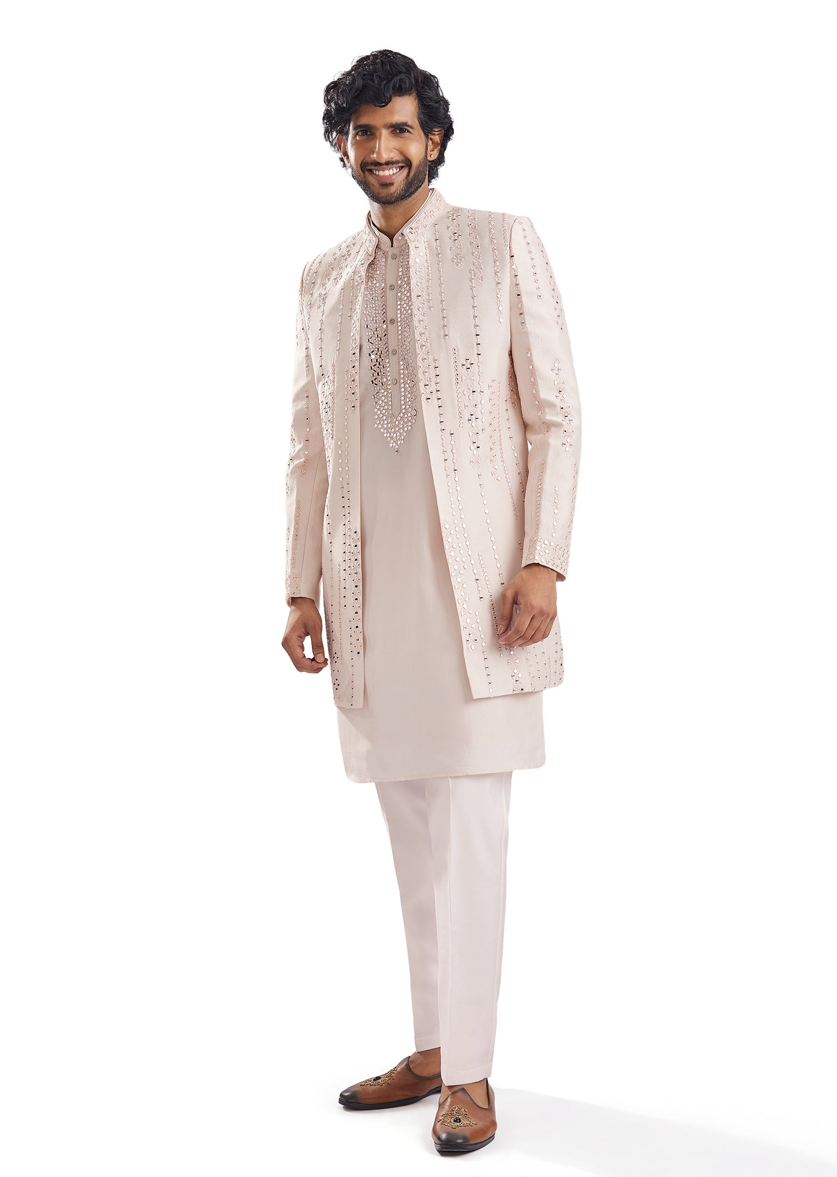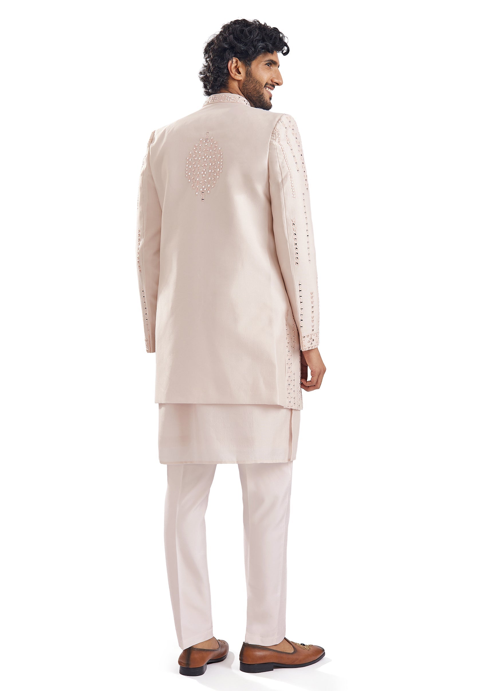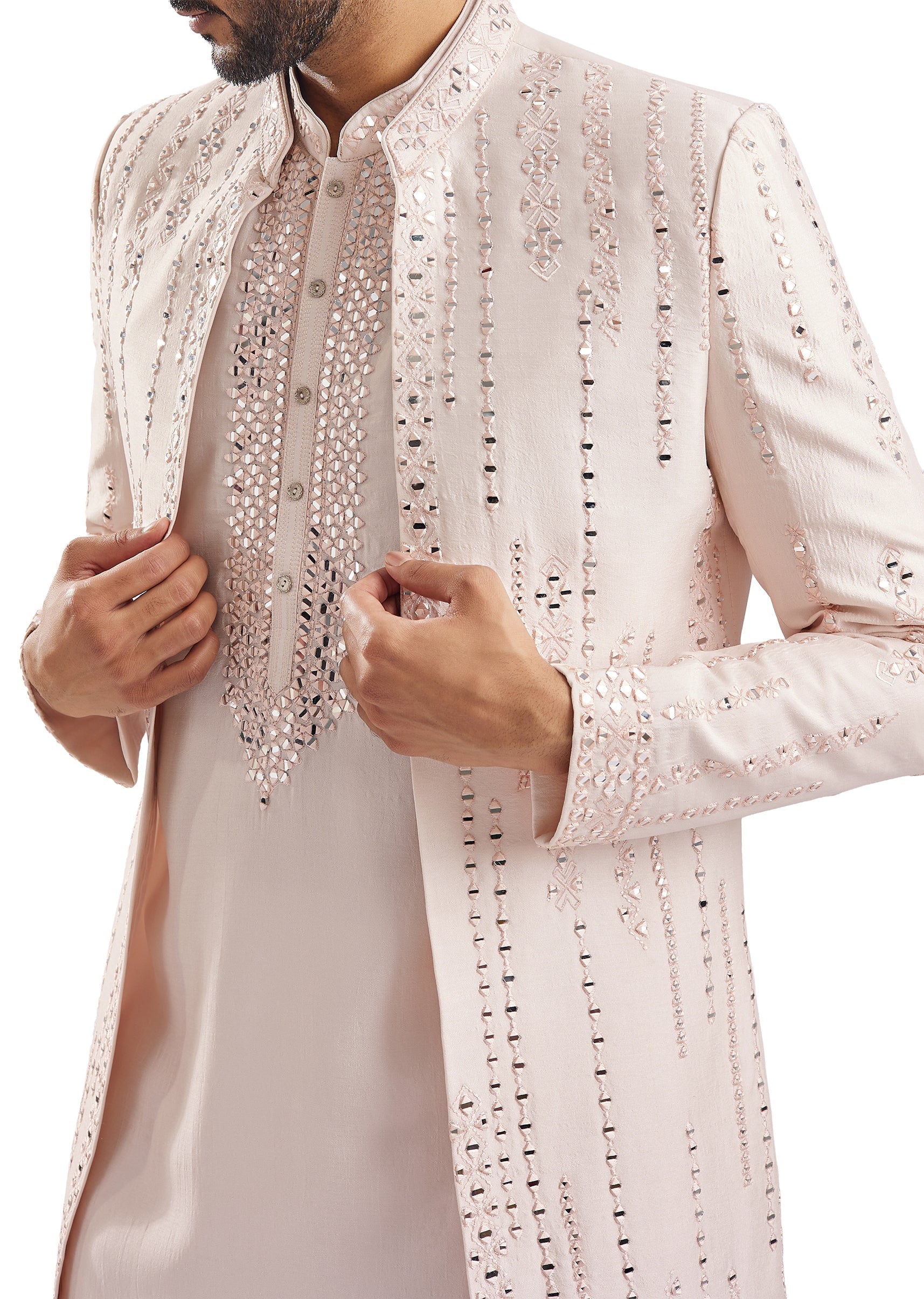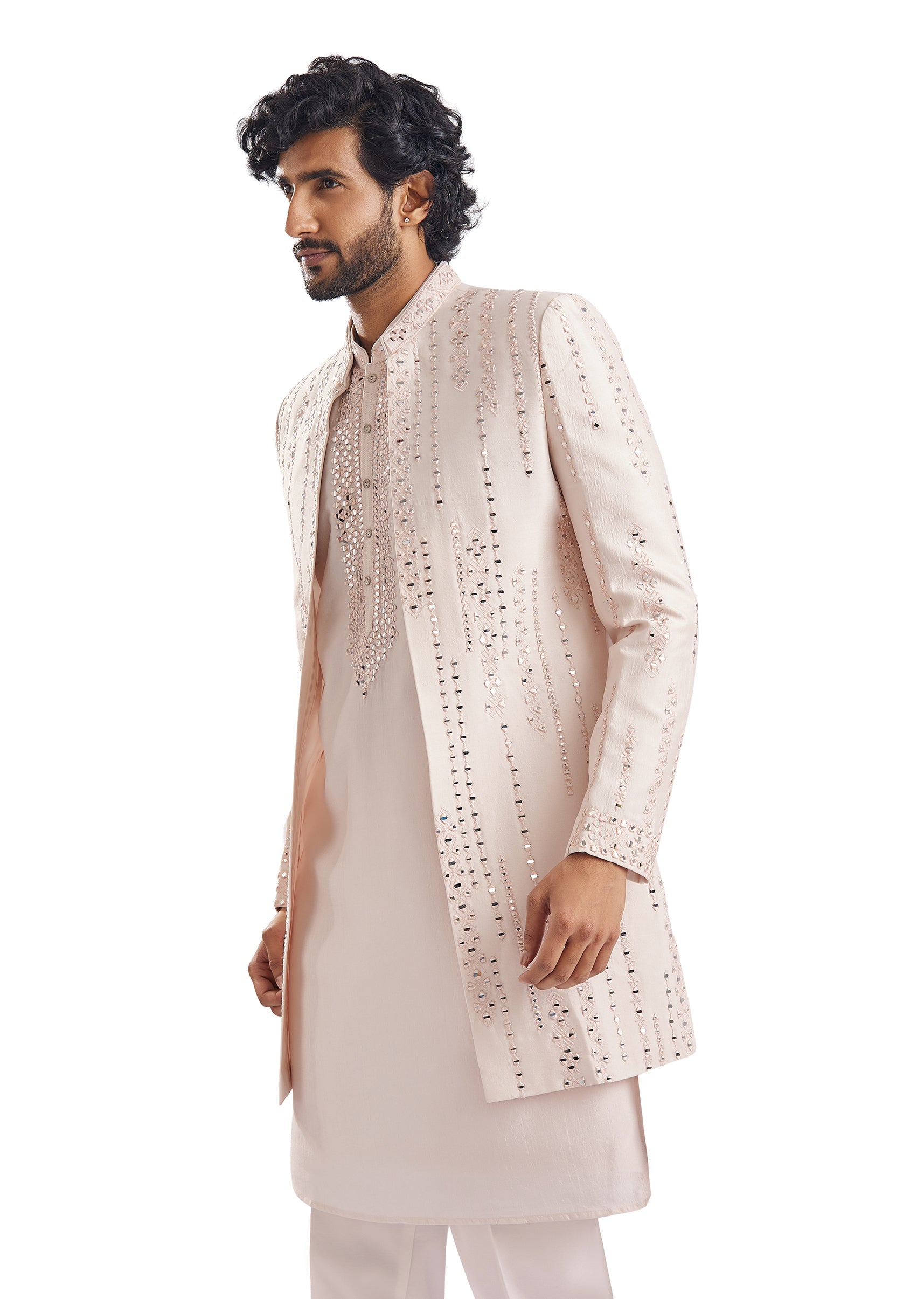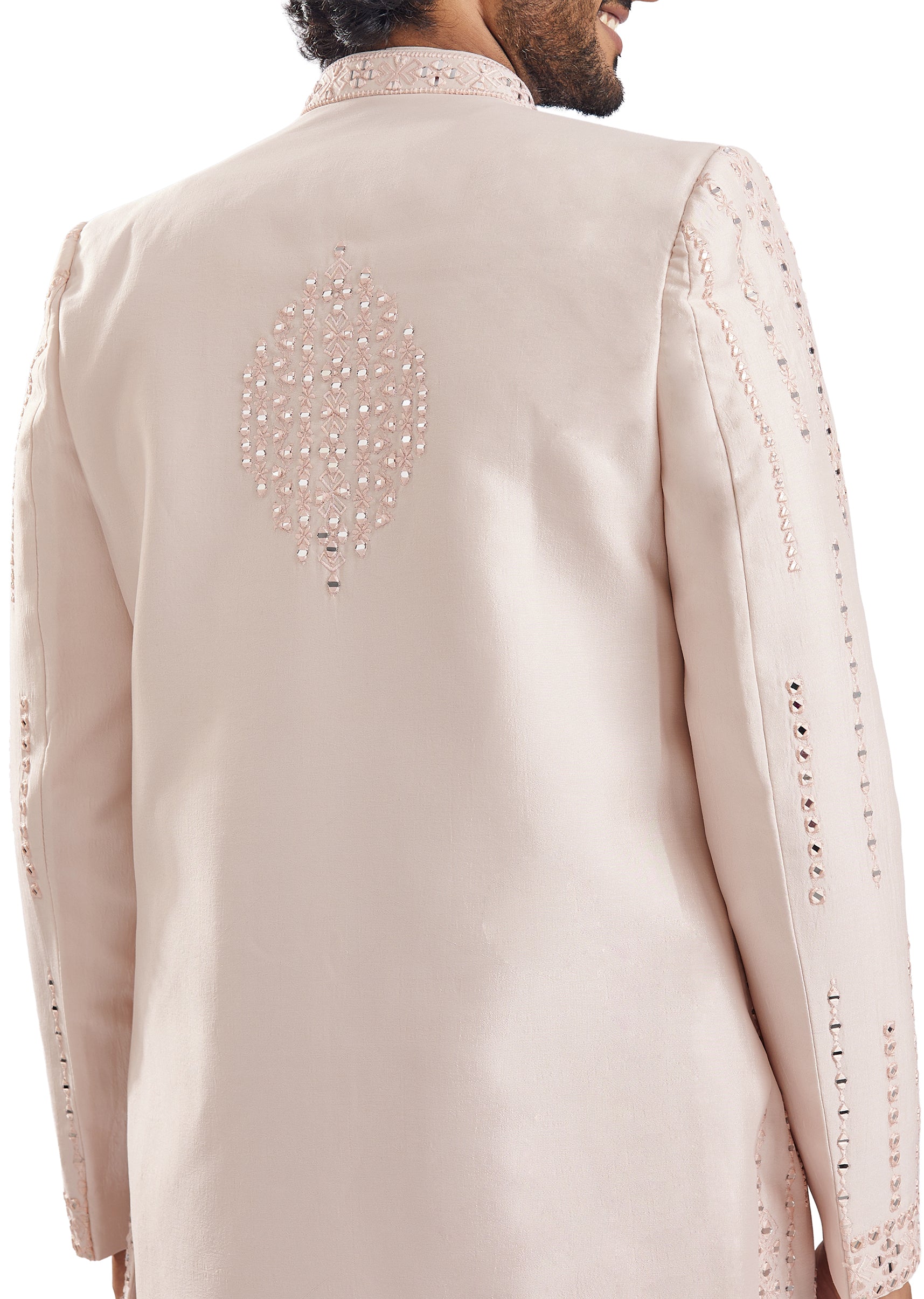 Peach Mirror Work Groomsman Sherwani