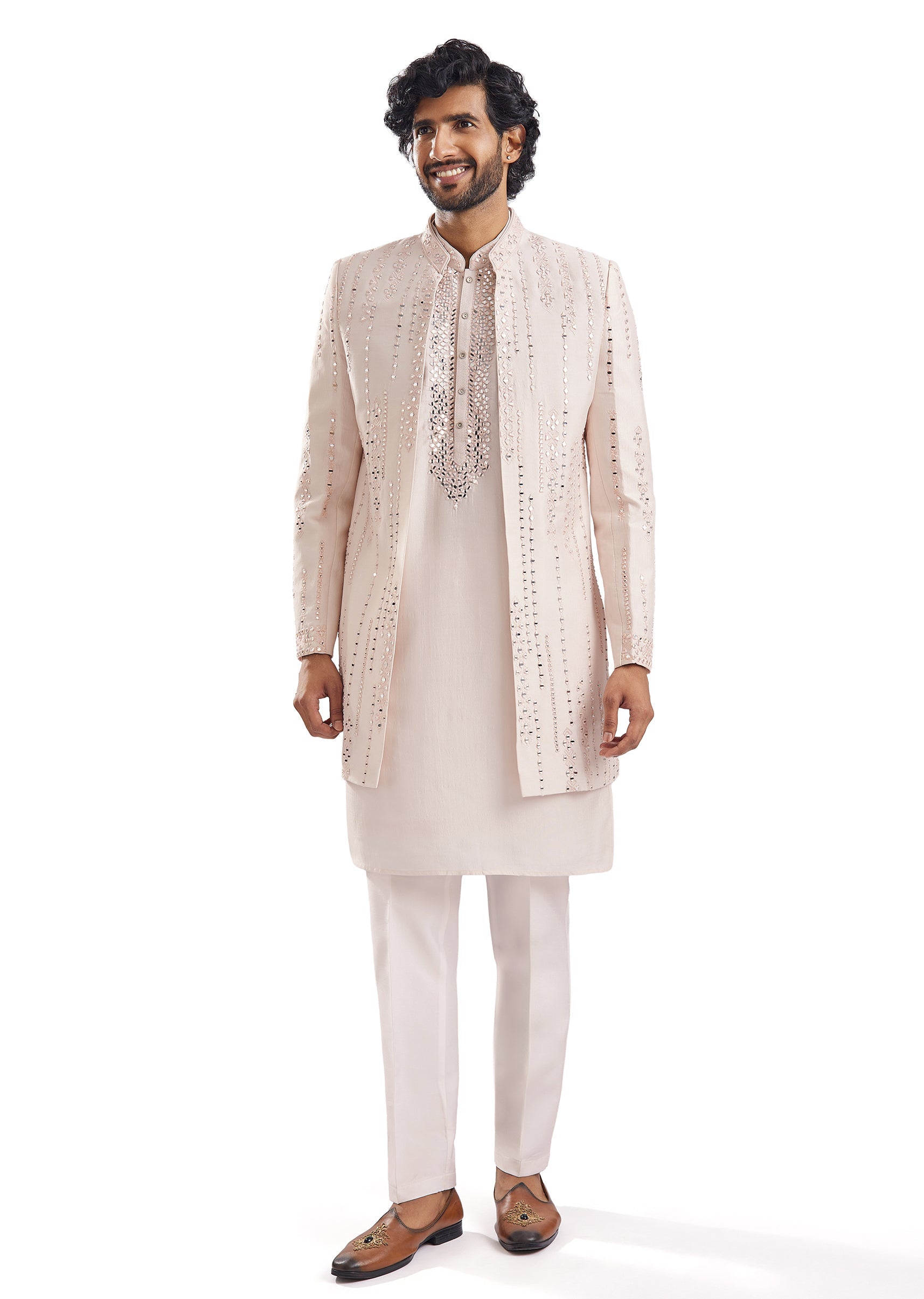 Fit Tips:This sherwani runs true to standard sizing — for a sharper, tailored look, consider getting the kurta taken in slightly at the sides post-purchase.
