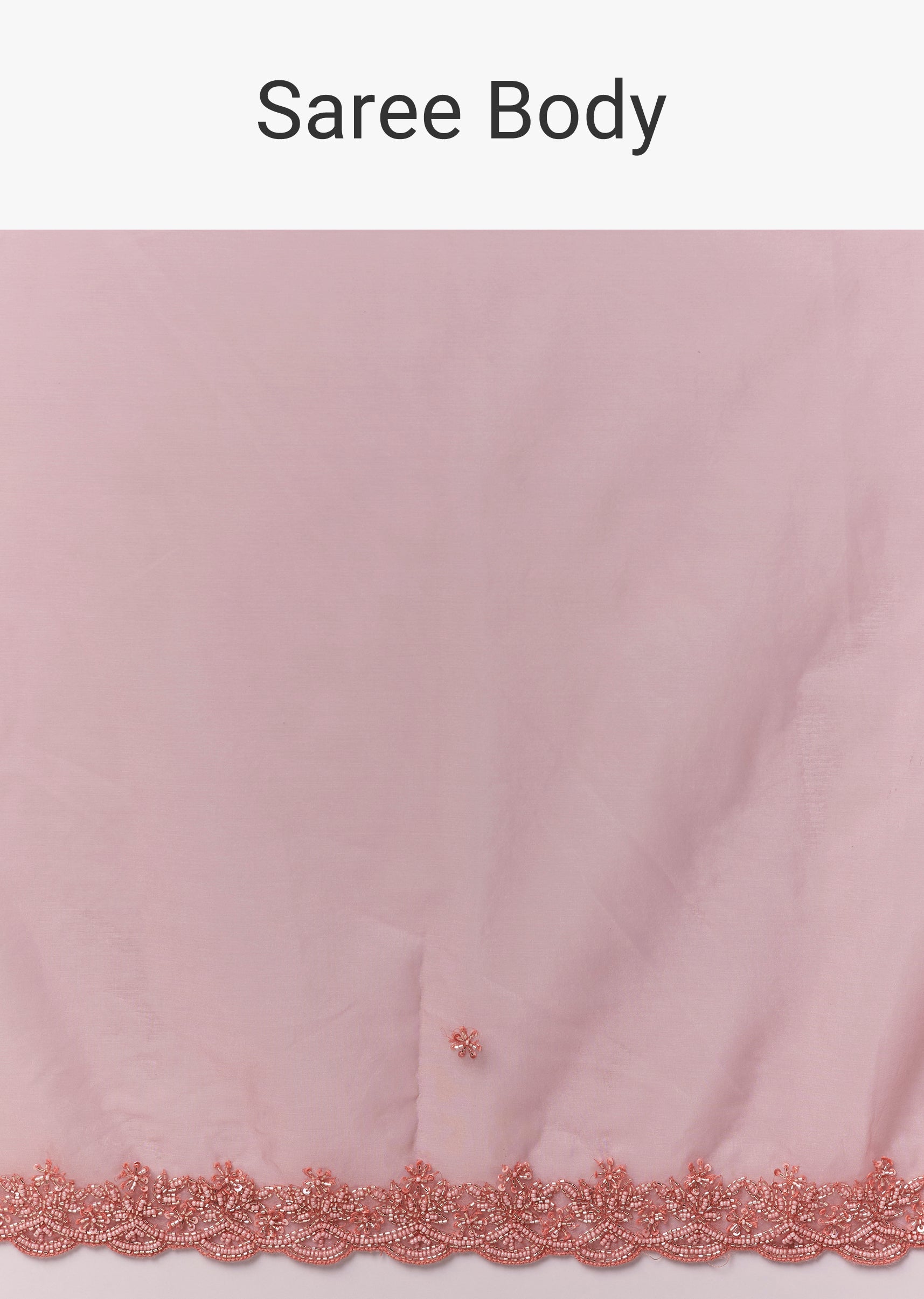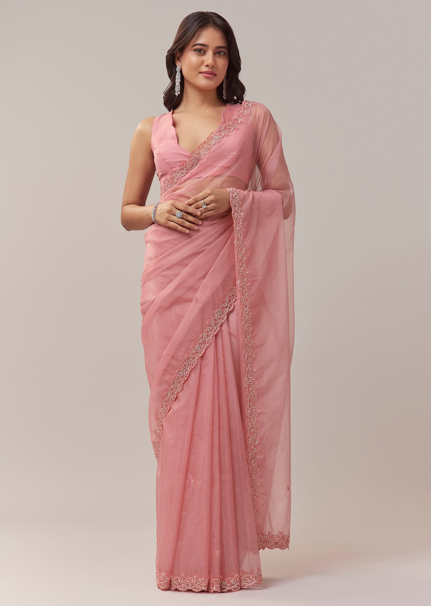 Peach Organza Saree With Scallop Border And Butti Embroidery