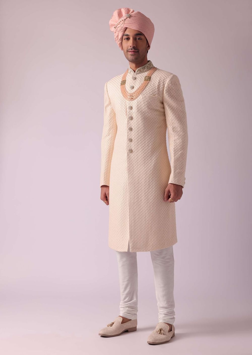 Fit Tips:Gold or silver accents will beautifully accentuate the sherwani's luxurious silk texture and intricate embroidery.