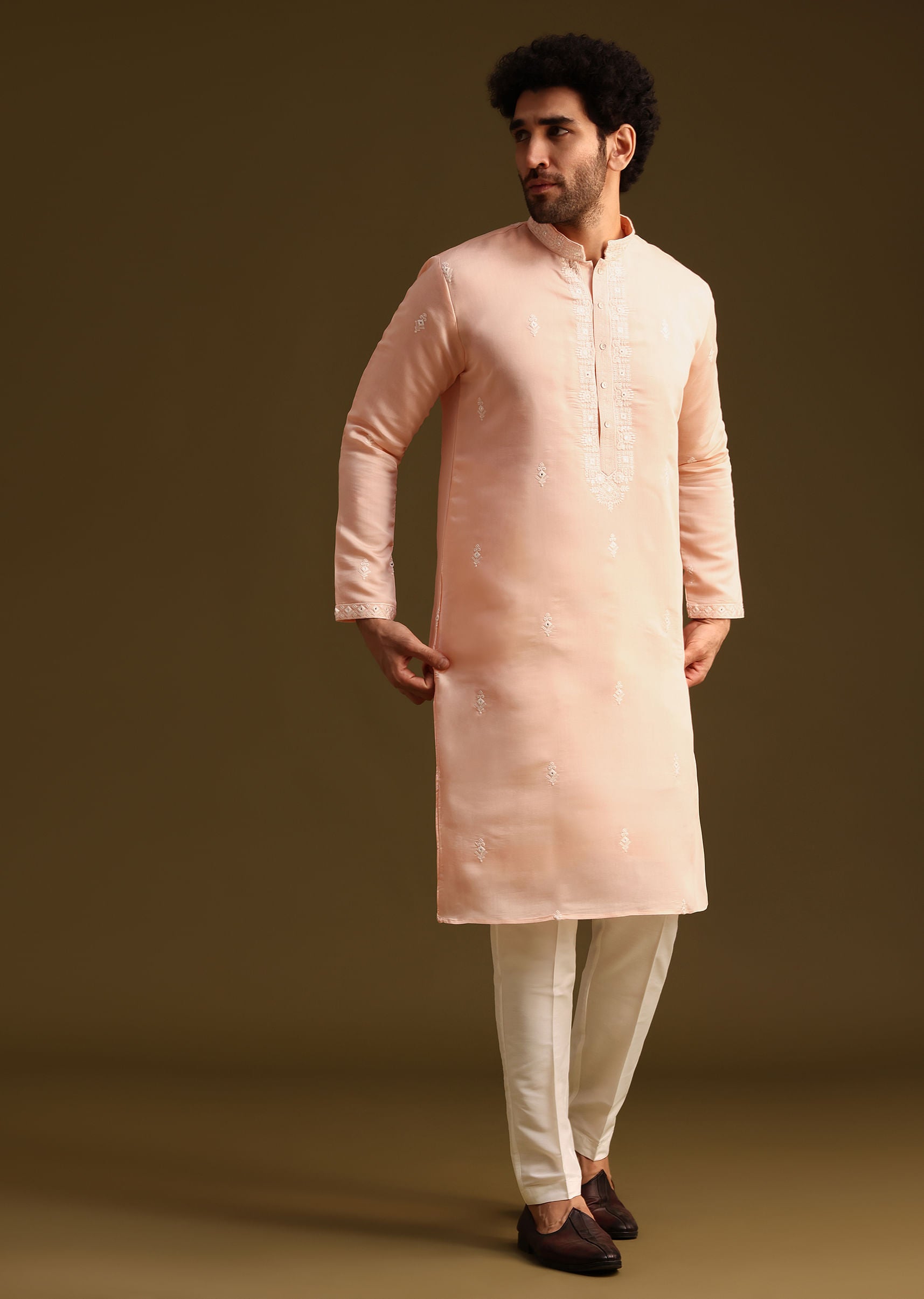 Adorned with intricate threadwork it features a stylish mandarin collar that adds a touch of class. Perfect for festive occasions this outfit effortlessly combines elegance and comfort making it an ideal choice for any celebration. Awarded as the Most Trusted Brand, we're delivering styles you love, just as promised.