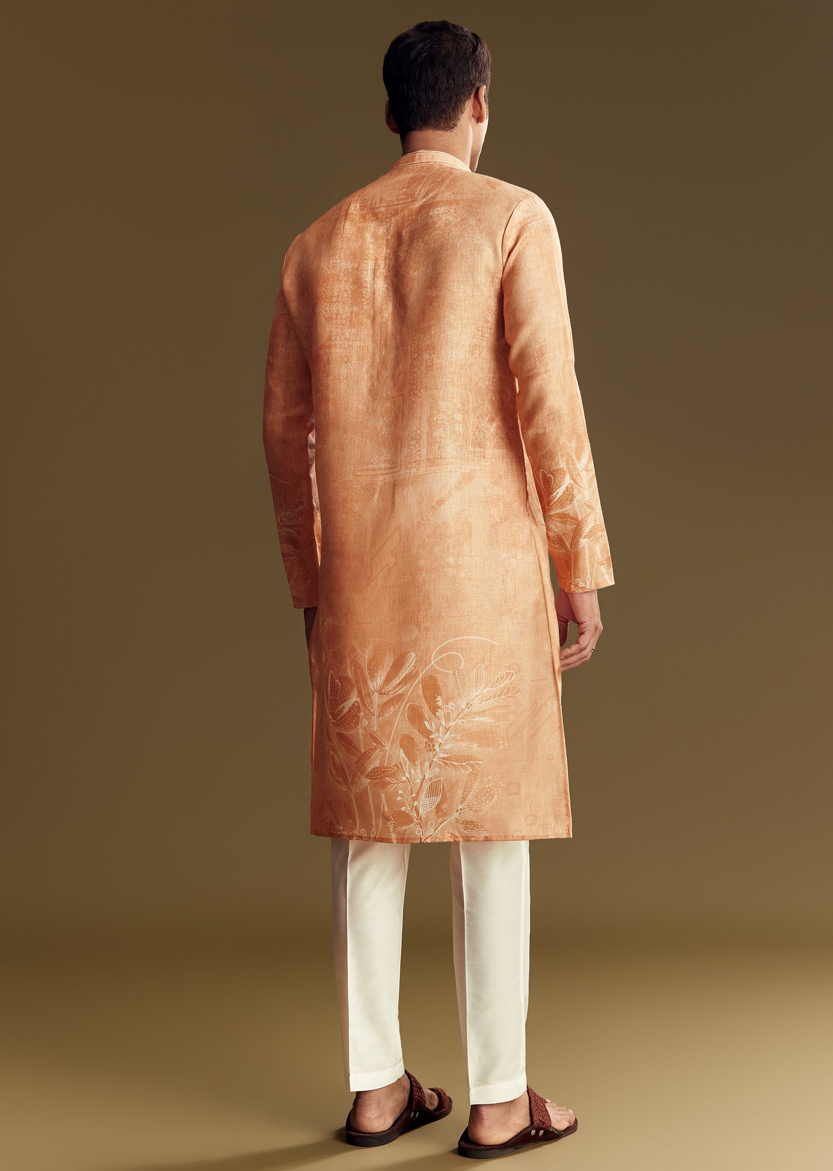 Soft, serene, and effortlessly elegant, this pastel peach silk kurta set is designed with full sleeves and a timeless mandarin collar. The clean silhouette and refined detailing make it an... More Product Details