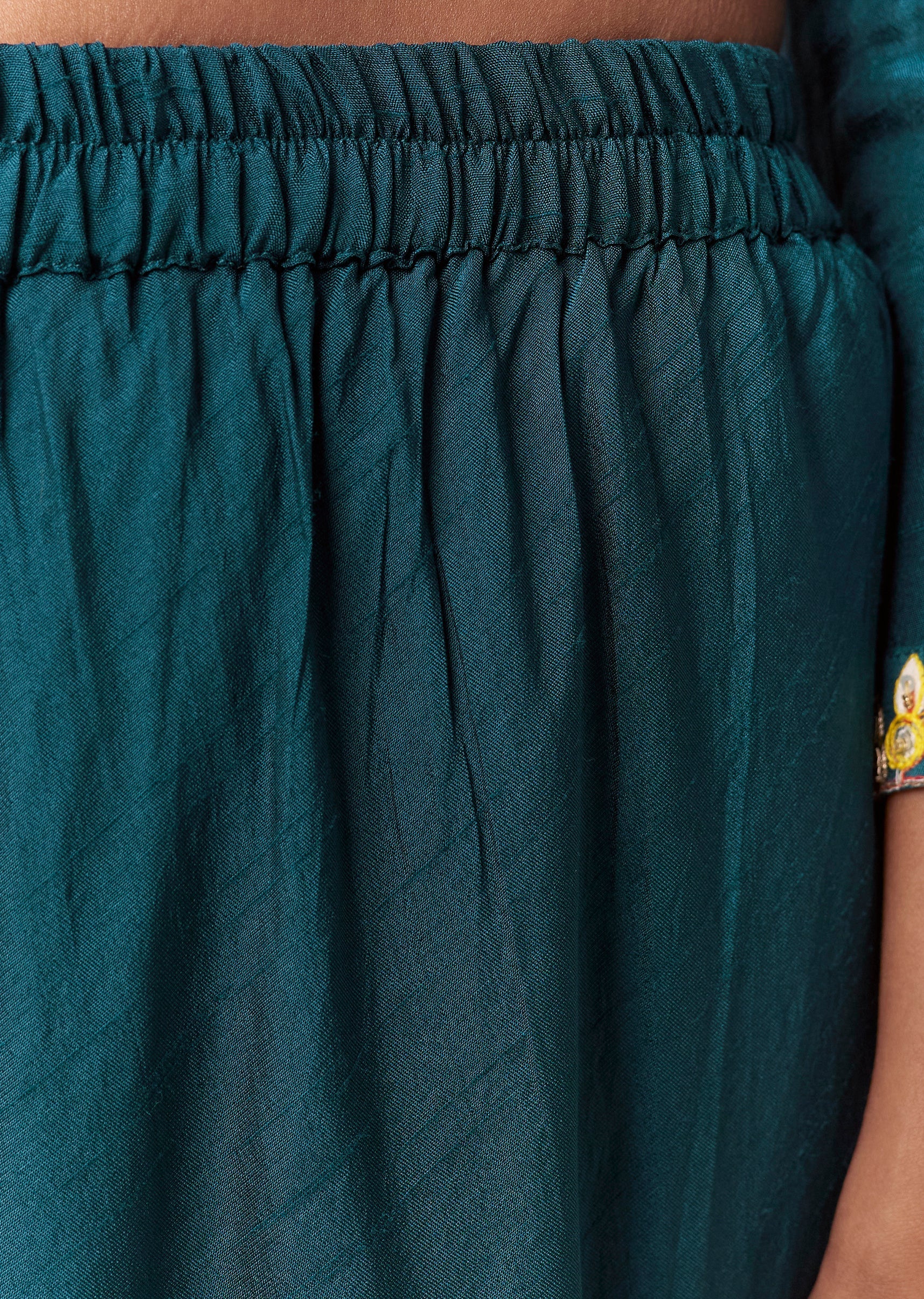 Designed in luxurious dola silk, this festive palazzo set features an A-line kurta detailed with zardosi and thread embroidery for a refined finish. Styled with a V-neckline and 3/4th sleeves,... More Product Details