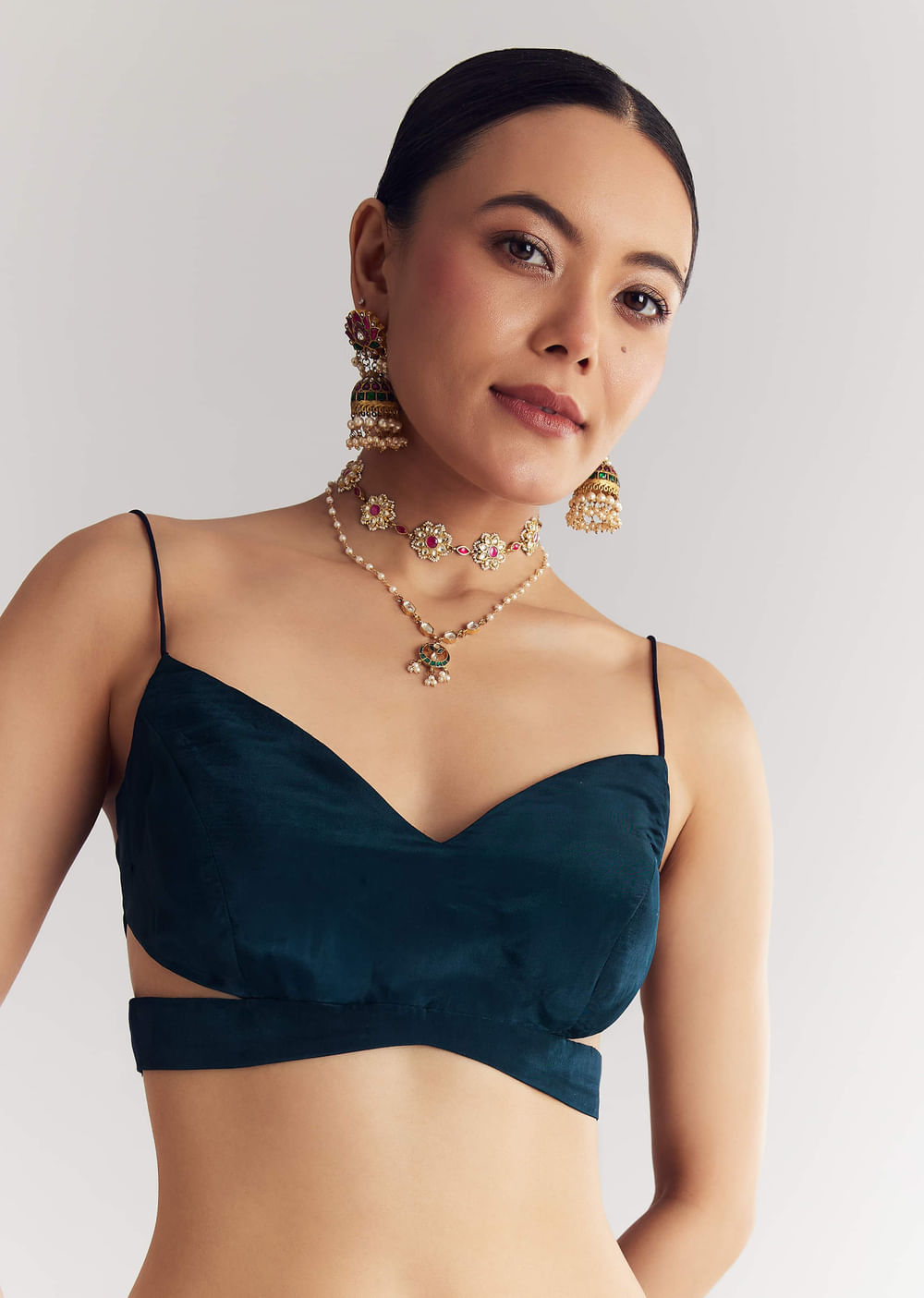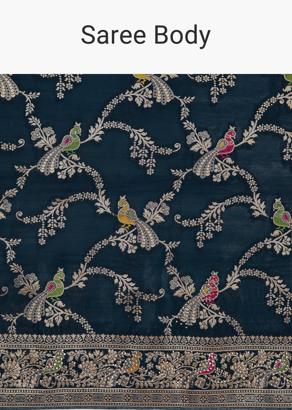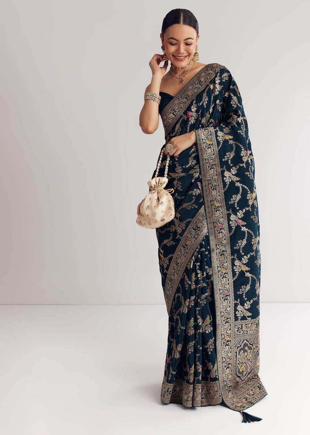 Peacok Blue Saree With Jaal Work And Embellished Stones All Over