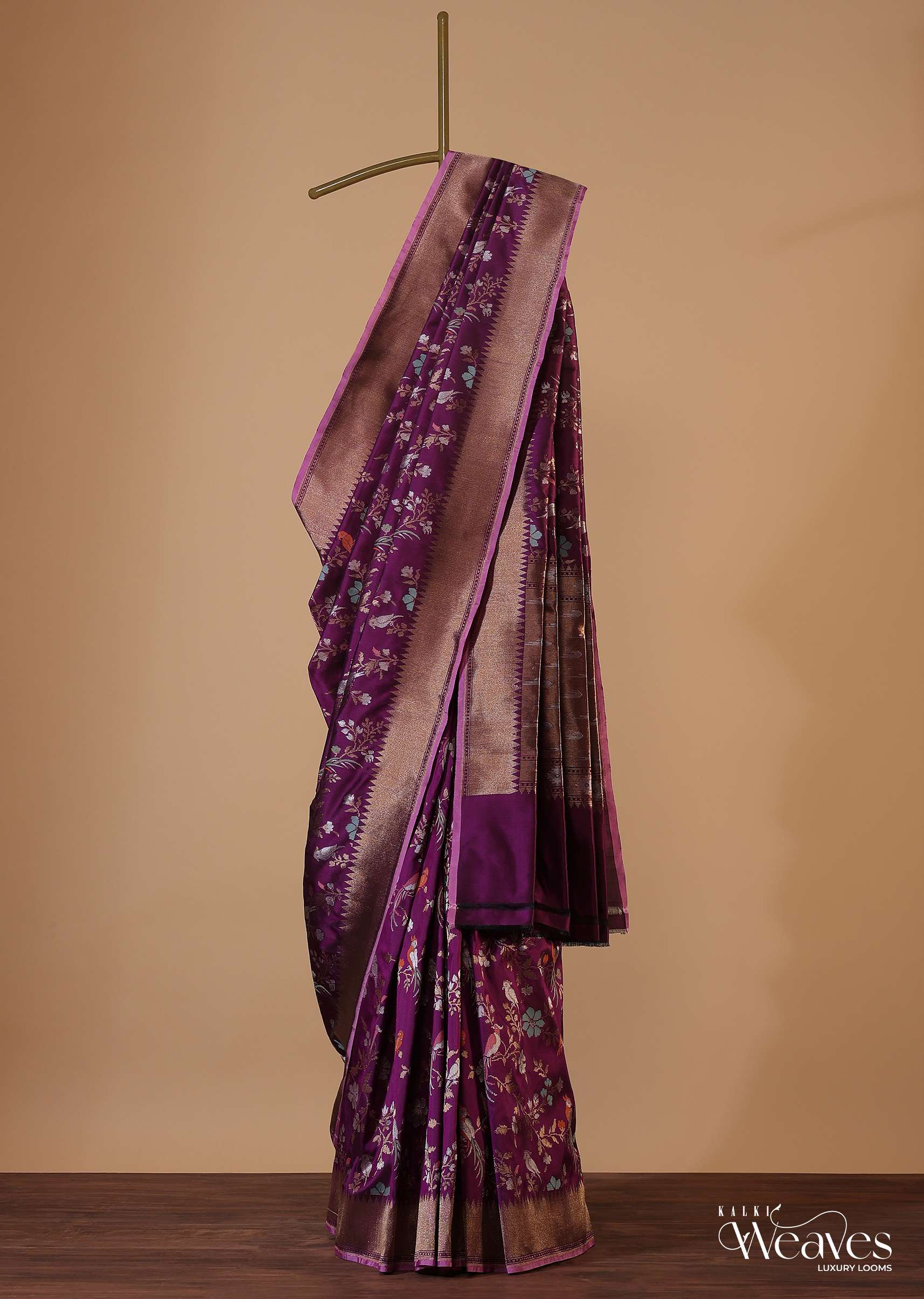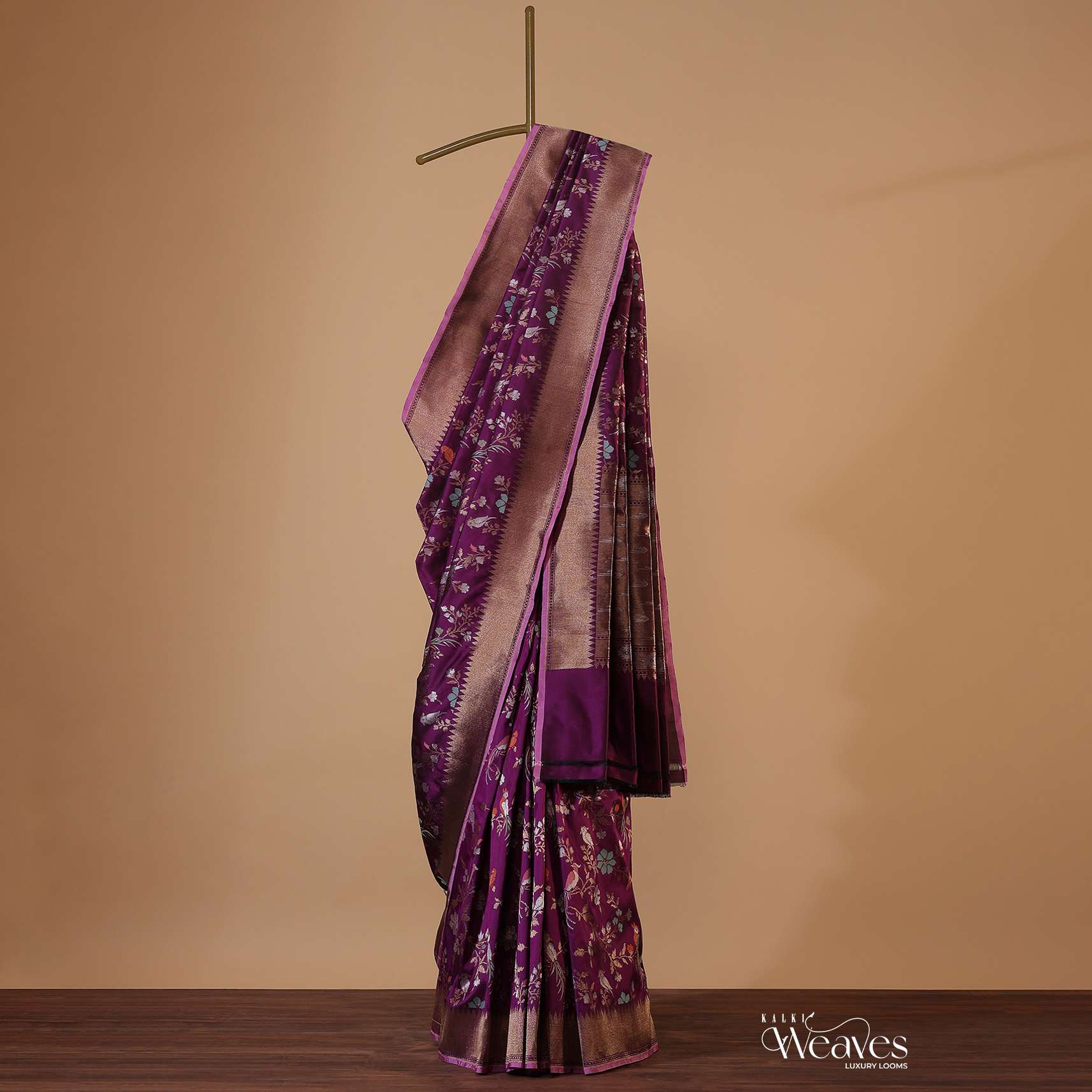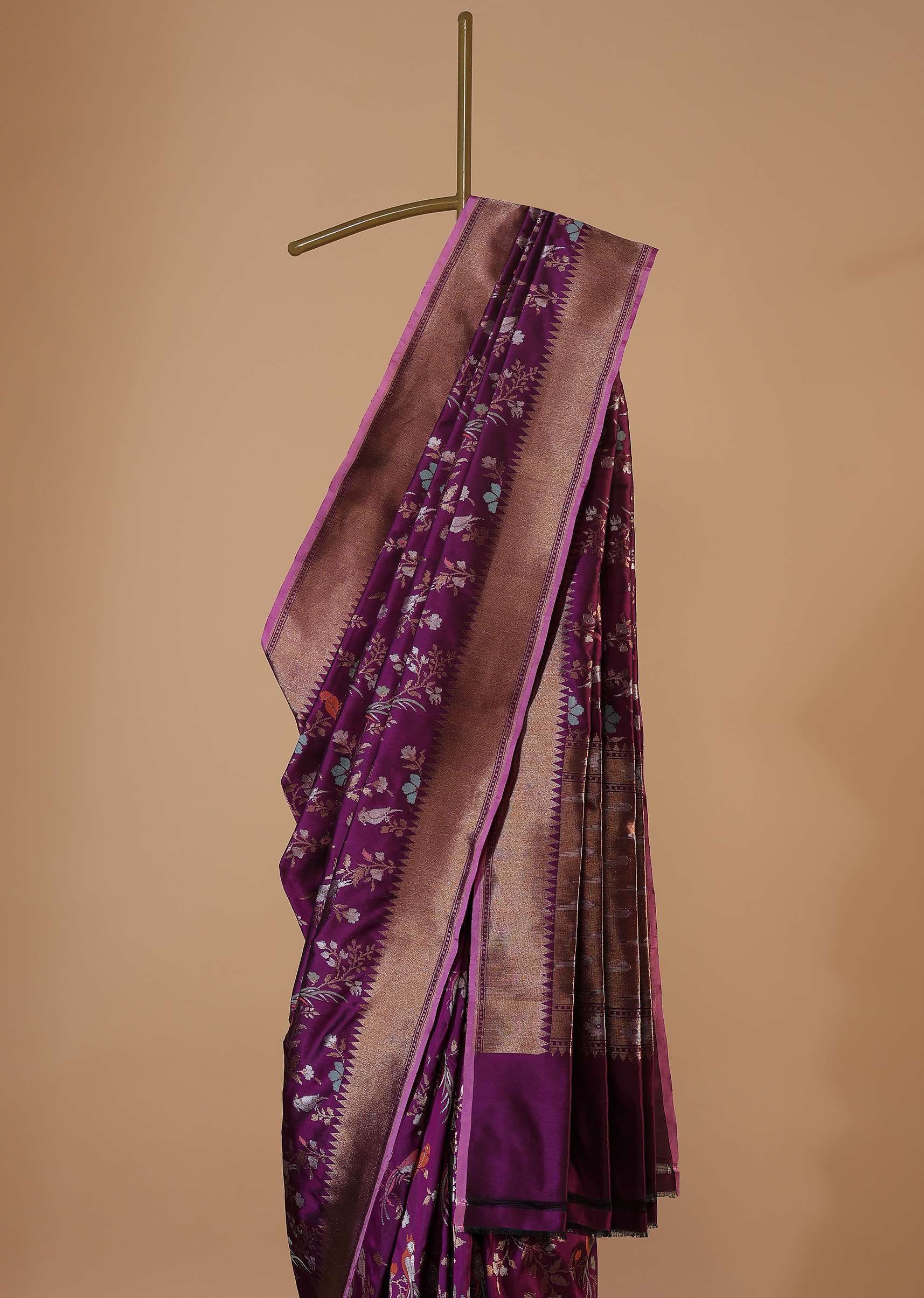 Plum Purple Banarasi Handloom Saree In Katan Silk With Unstitched Blouse
