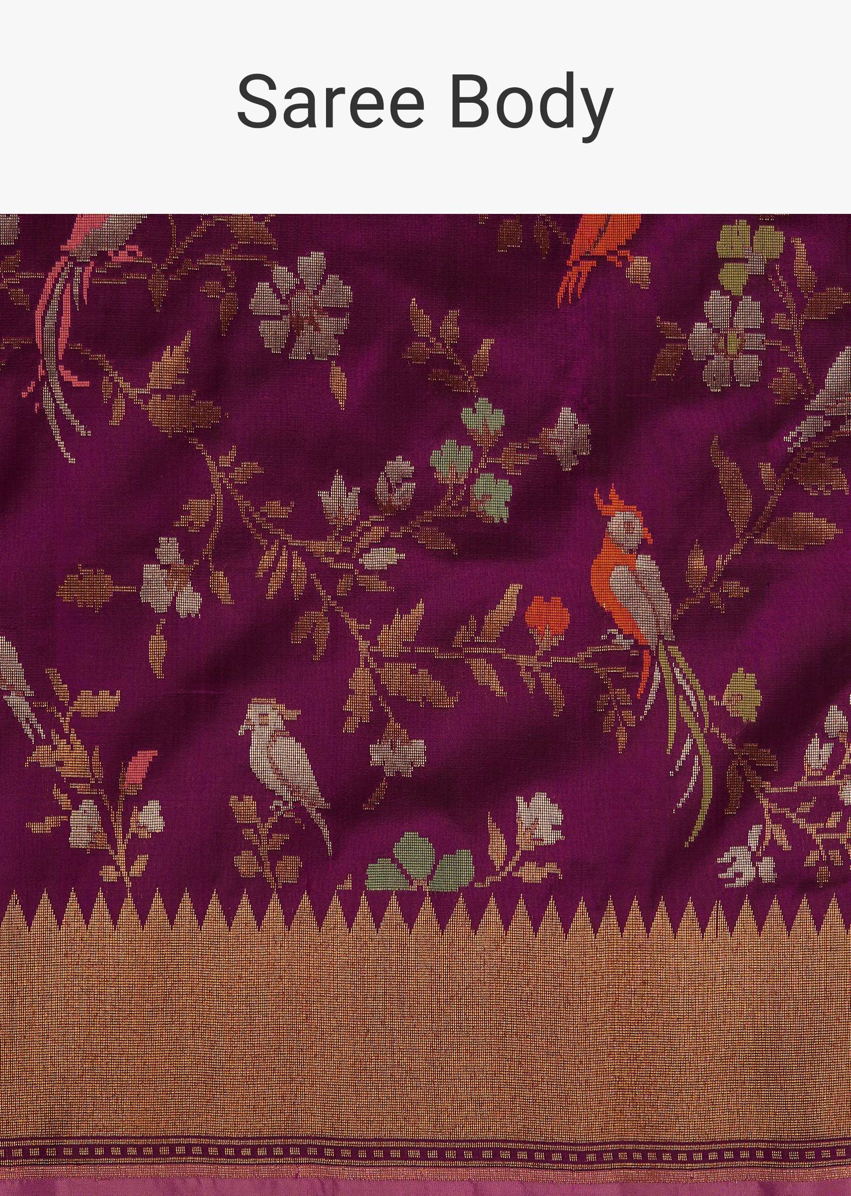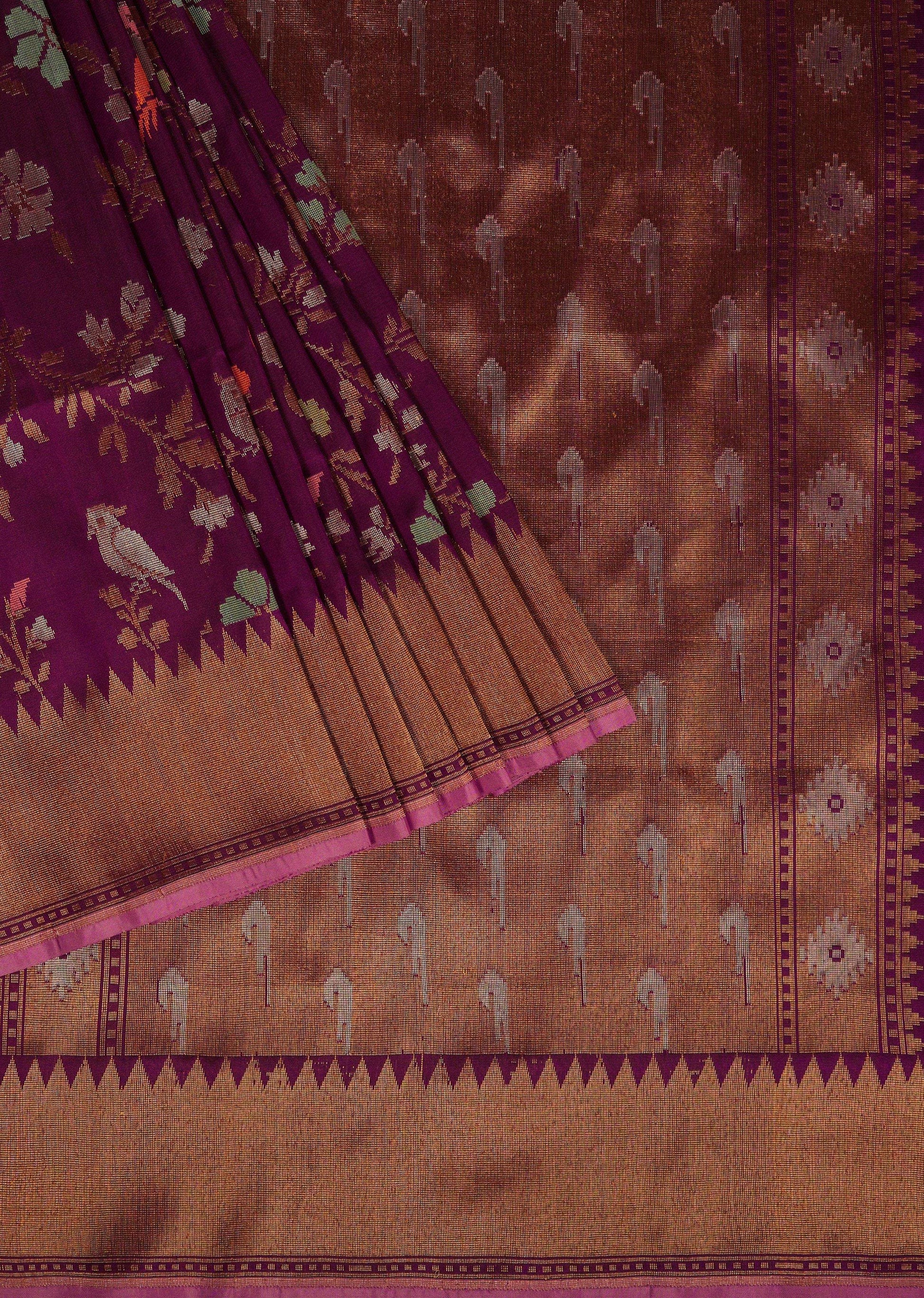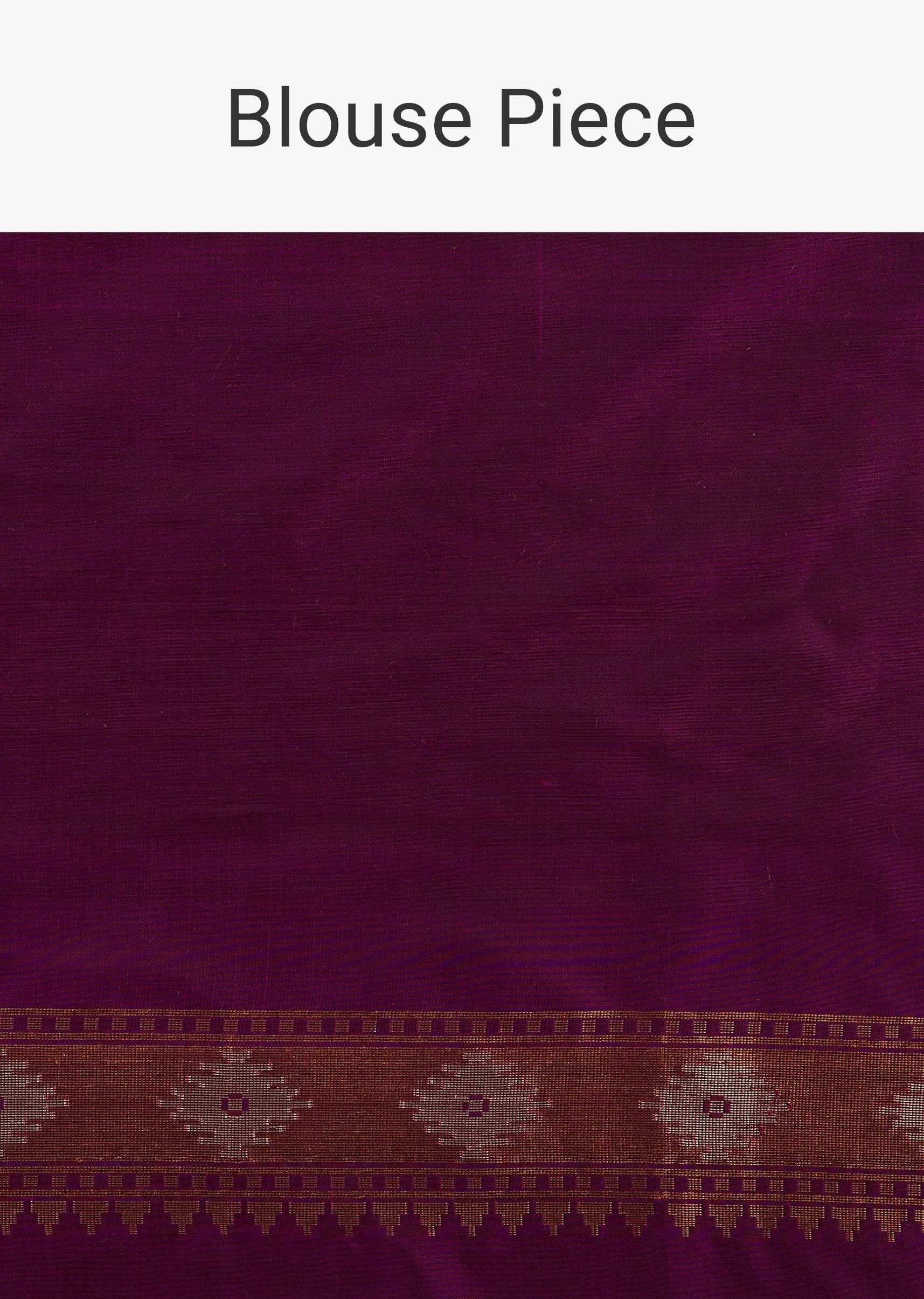 Plum Purple Banarasi Handloom Saree In Katan Silk With Unstitched Blouse