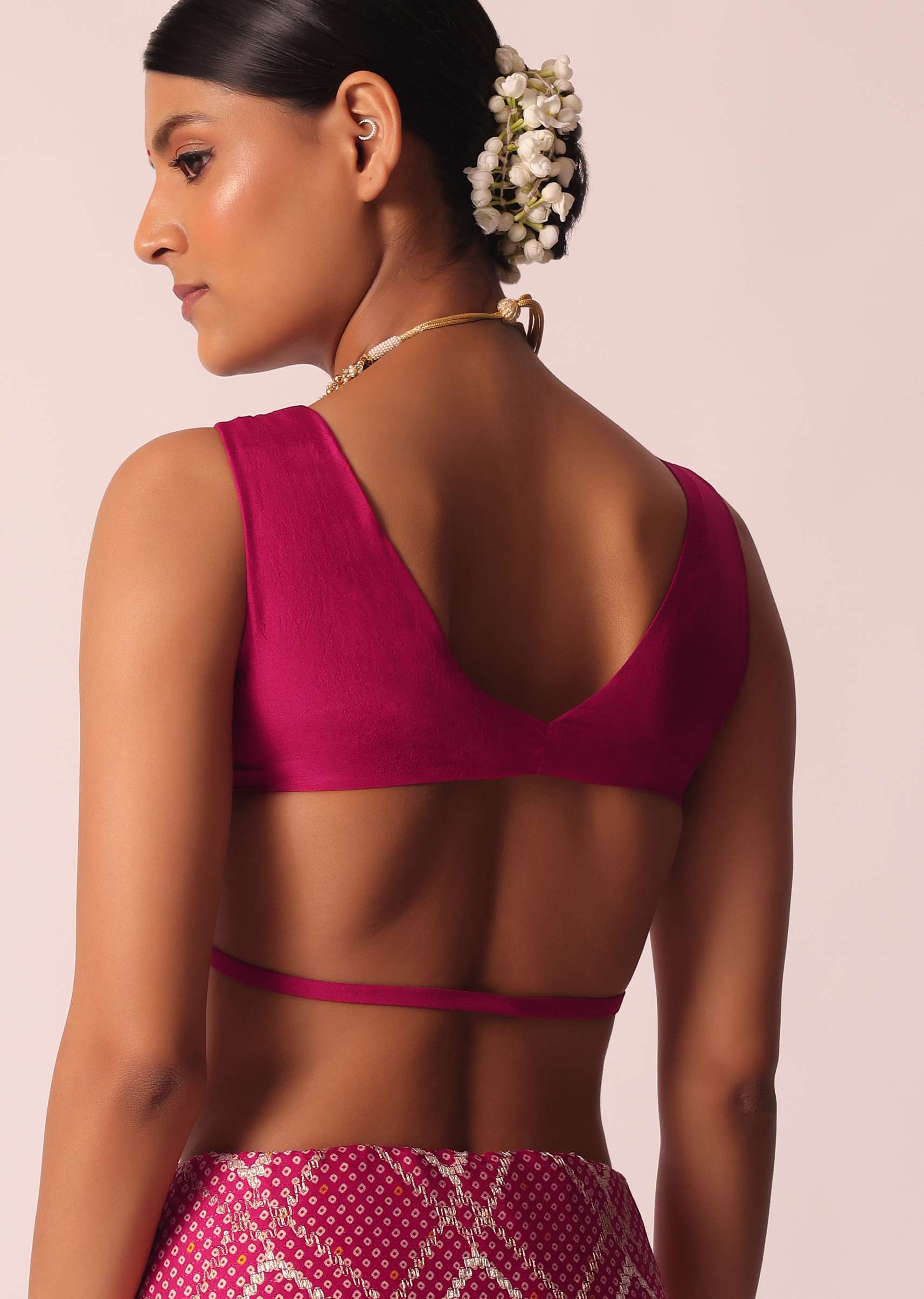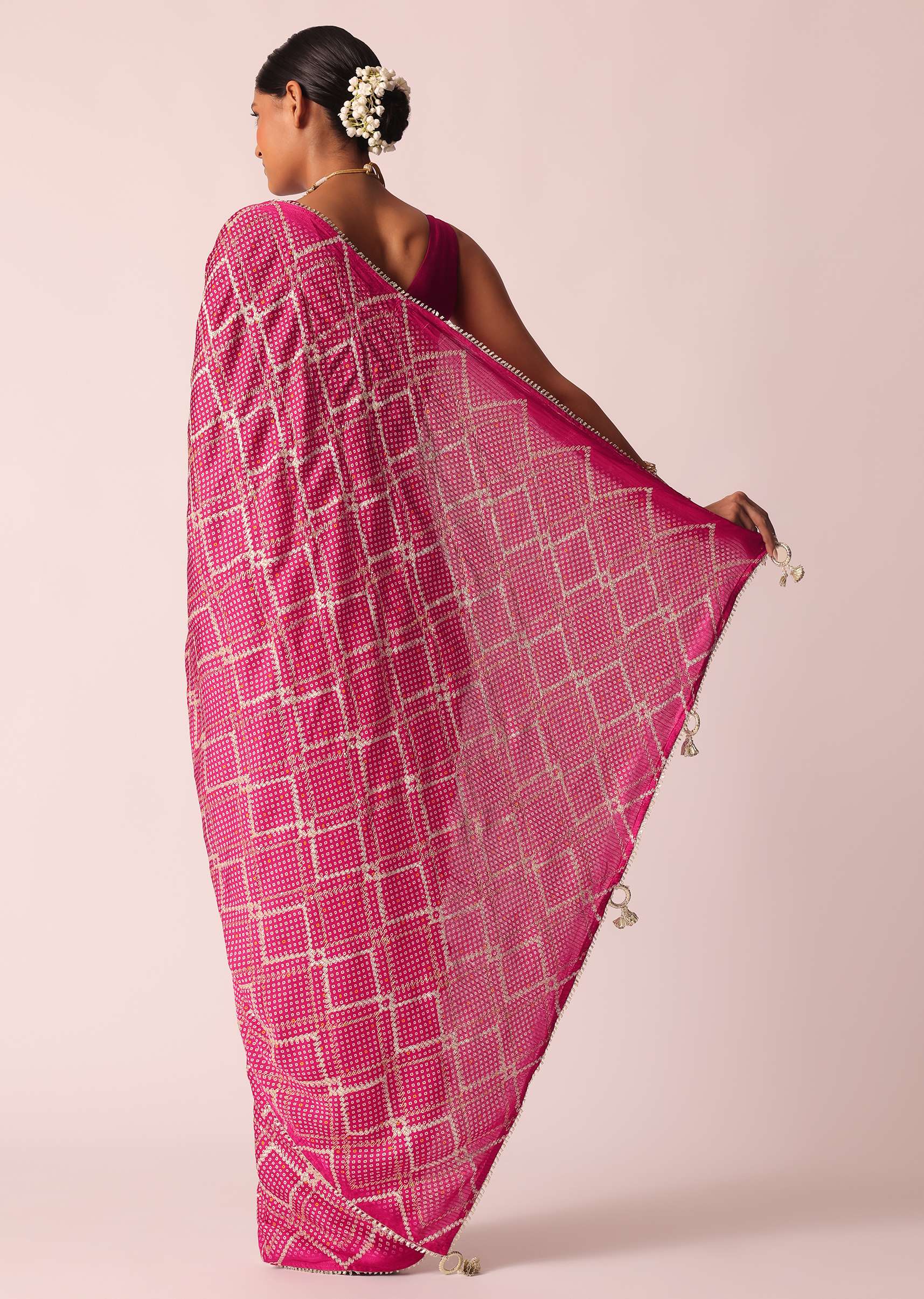 Pink Bandhani Saree With Gota Detail And Unstitched Blouse Piece