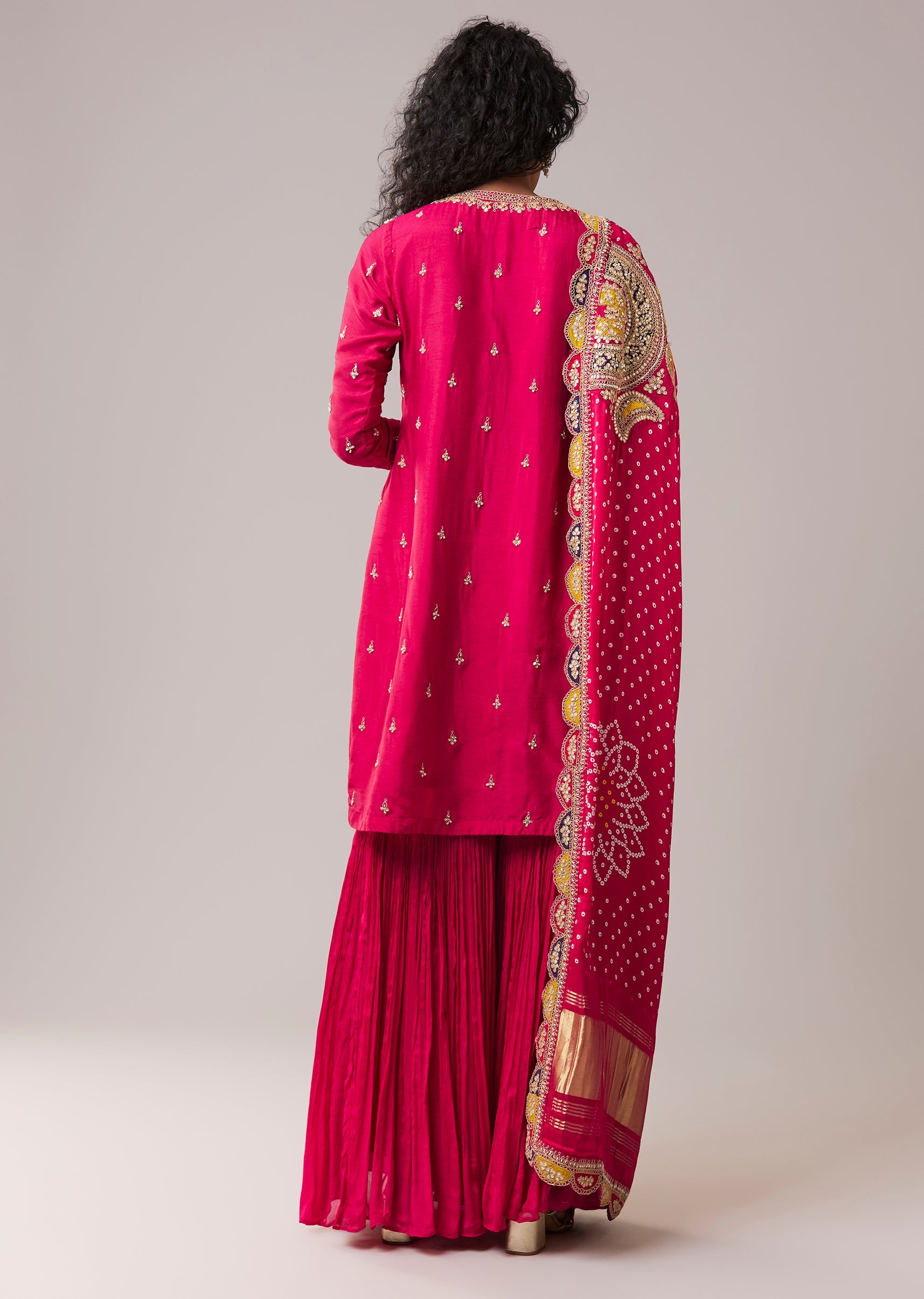 Pink Chinon Silk Kurta Sharara Set with Zari Work