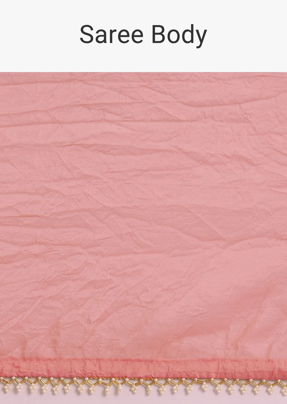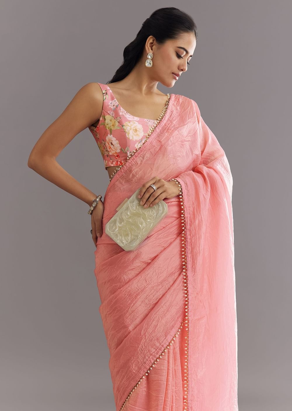 Pink Crushed Tissue Saree With Cutdana And Moti Embellished Border