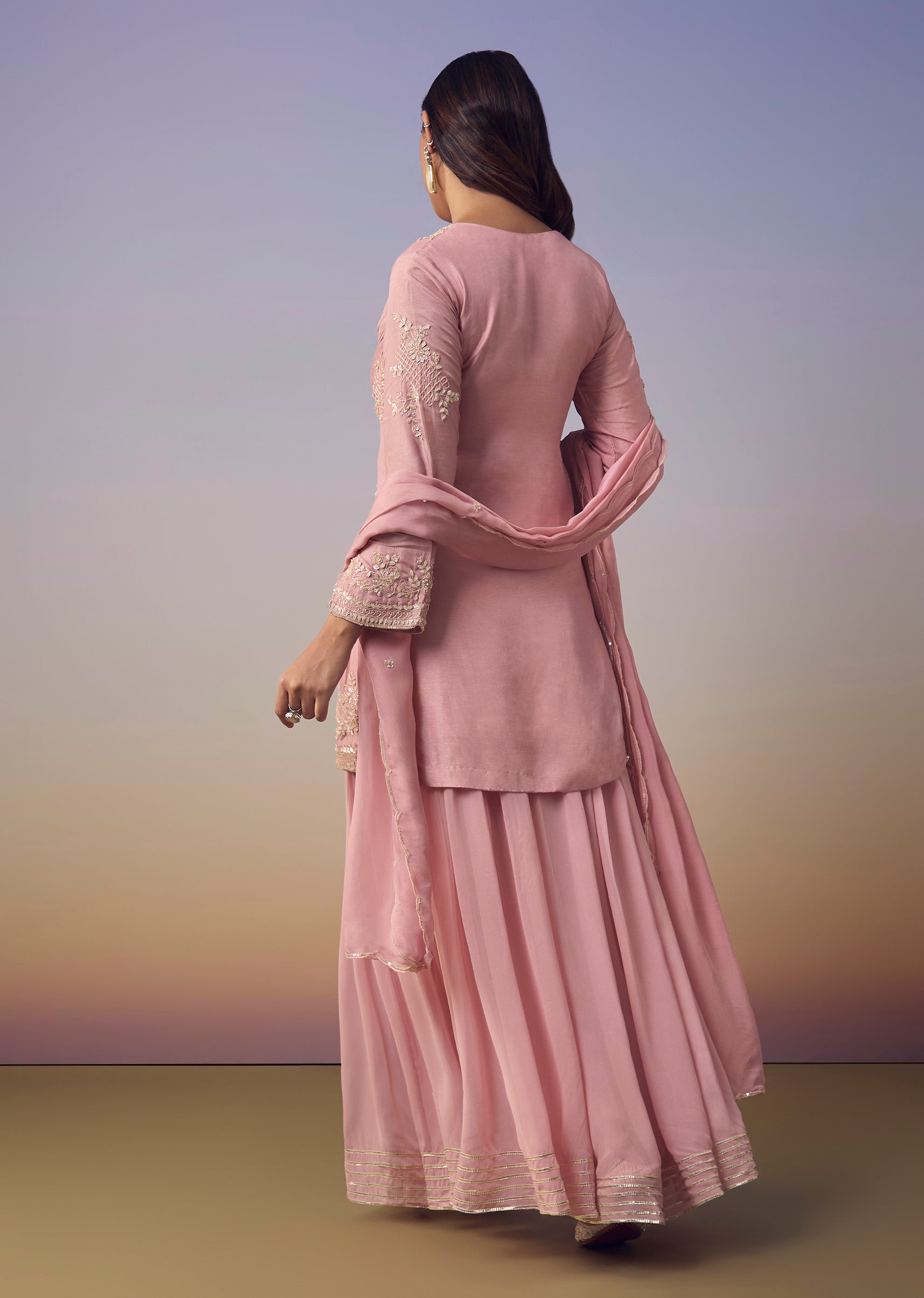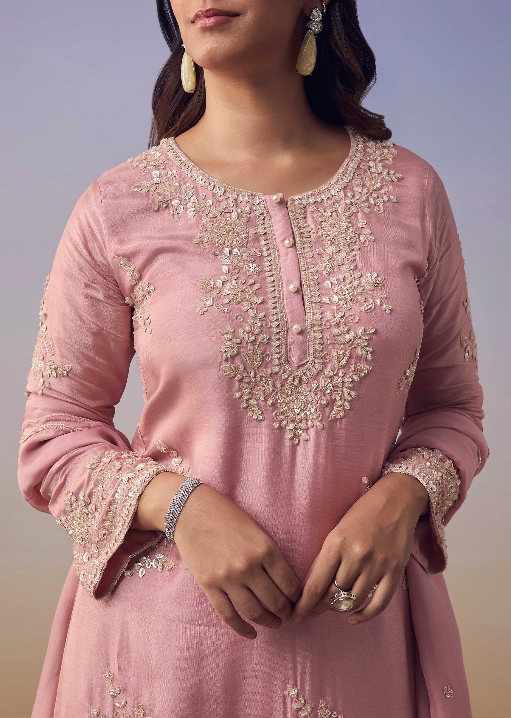 Pink Cutdana Embellished Kurta And Palazzo Set