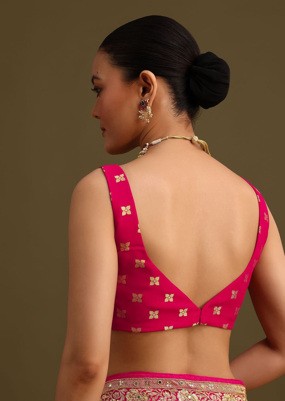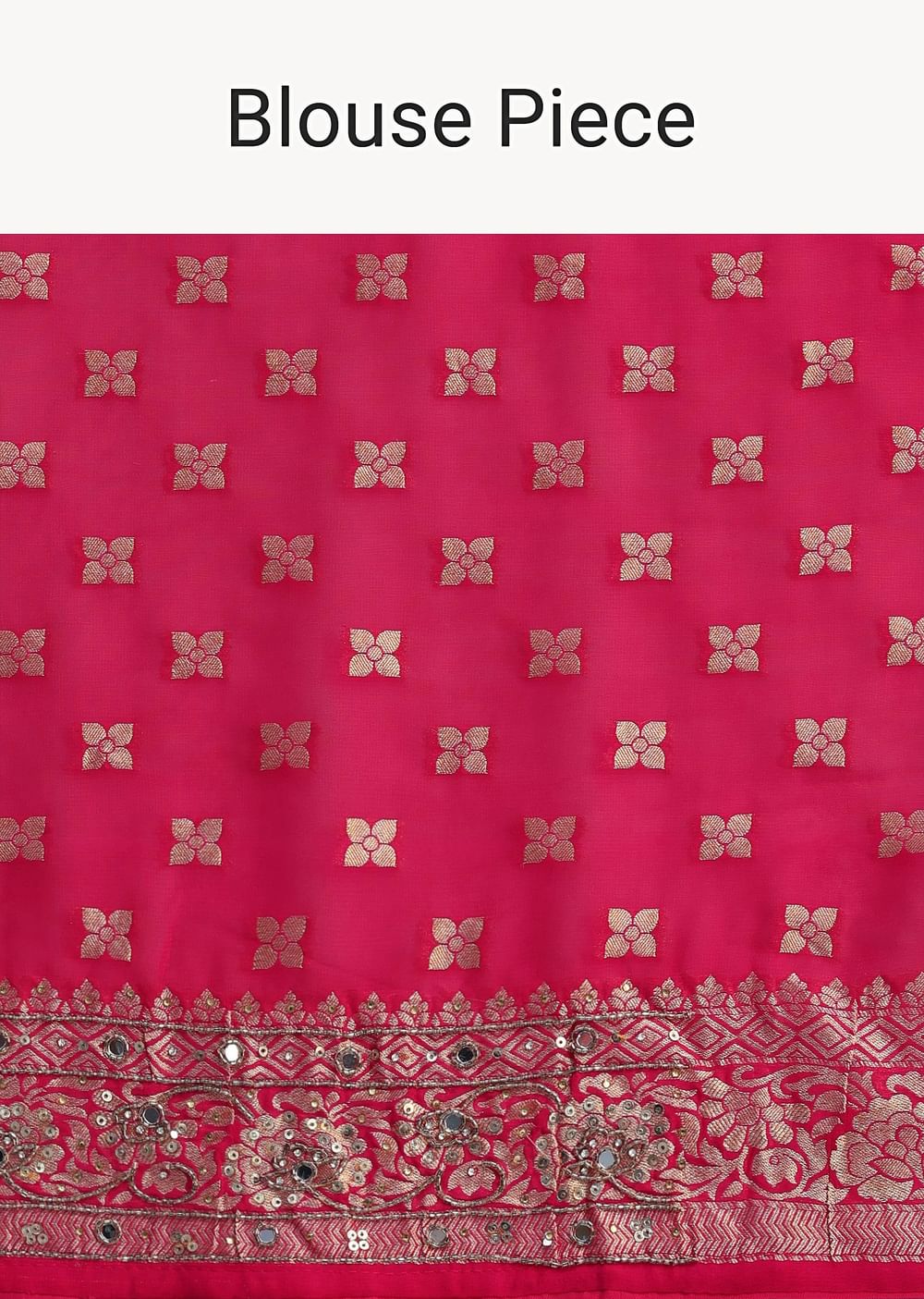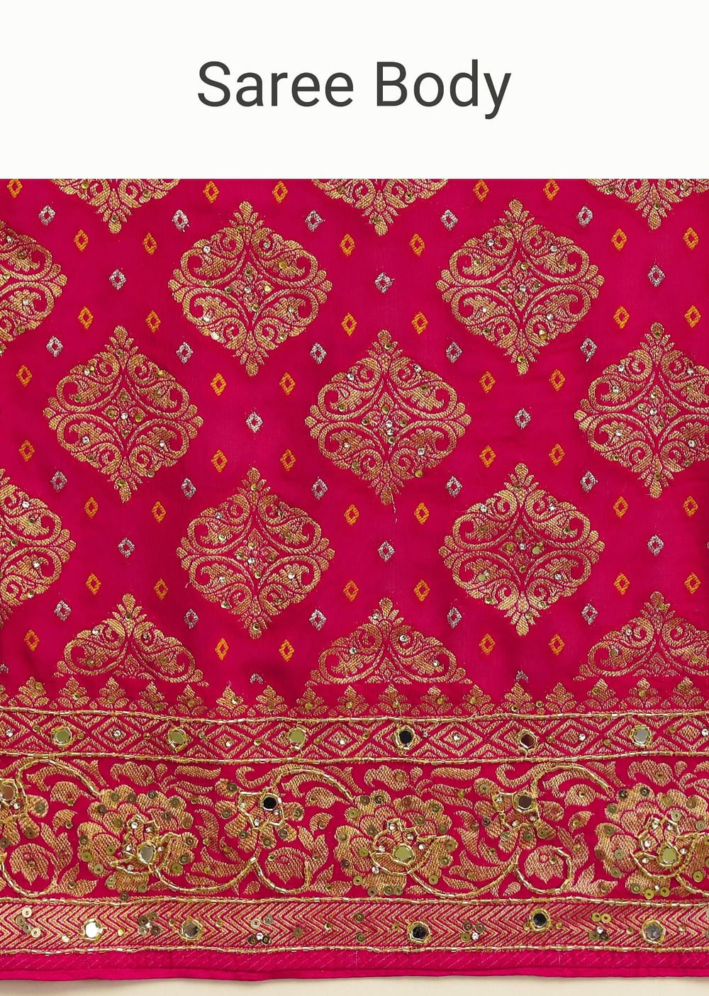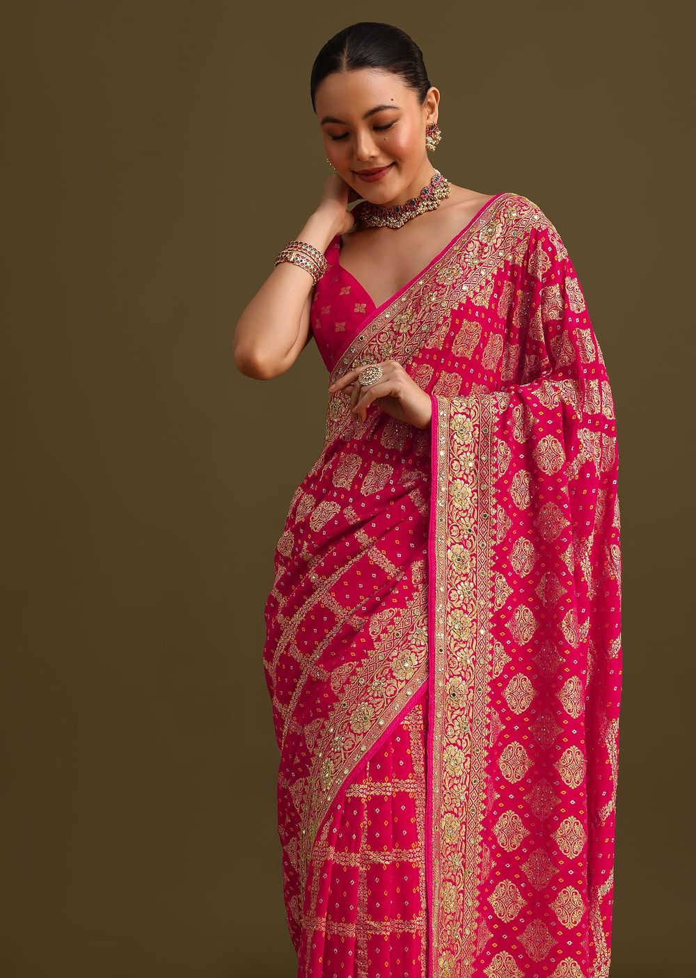 Pink Cutdana Embroidered Bandhani Weave Saree With Unstitched Blouse