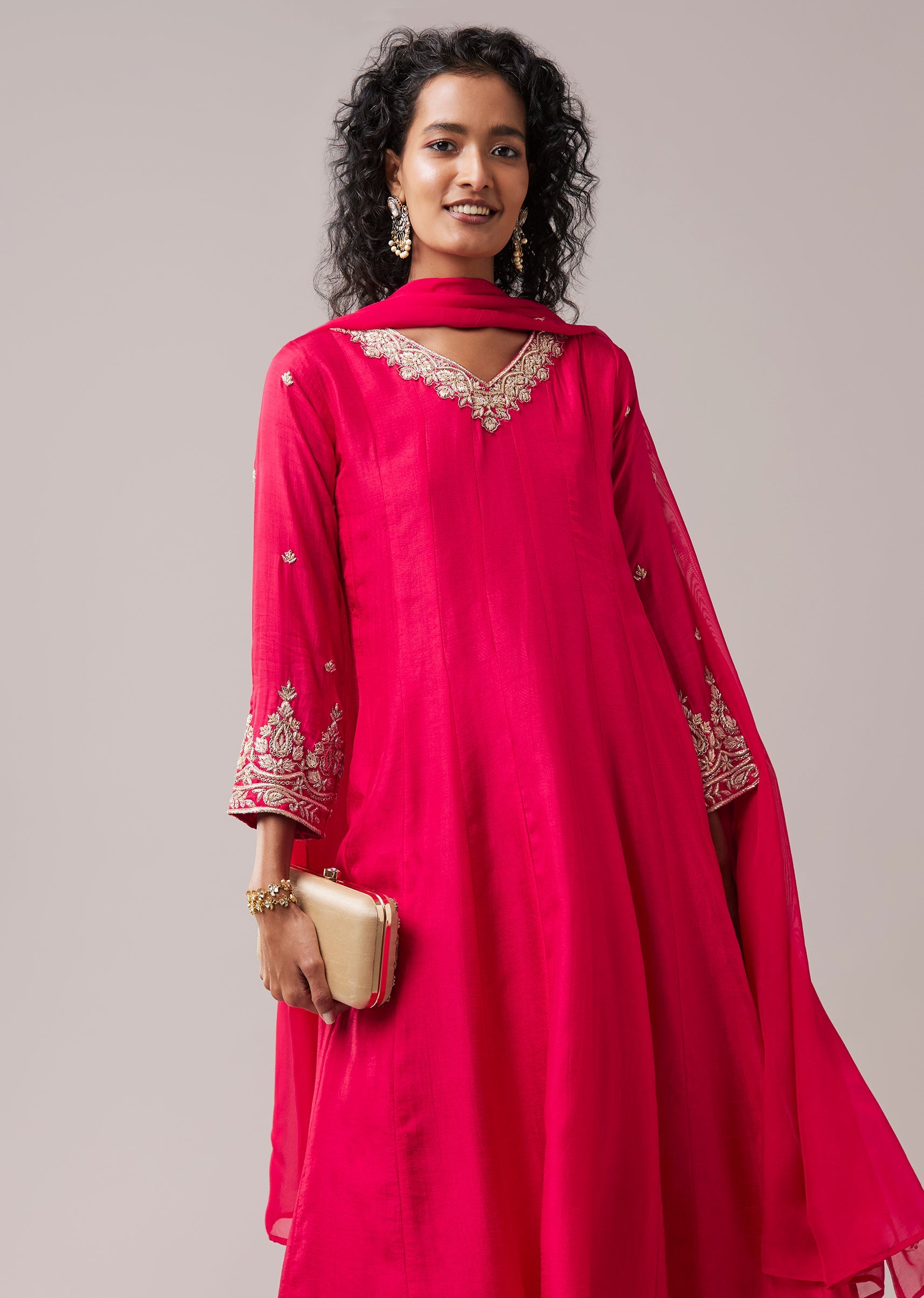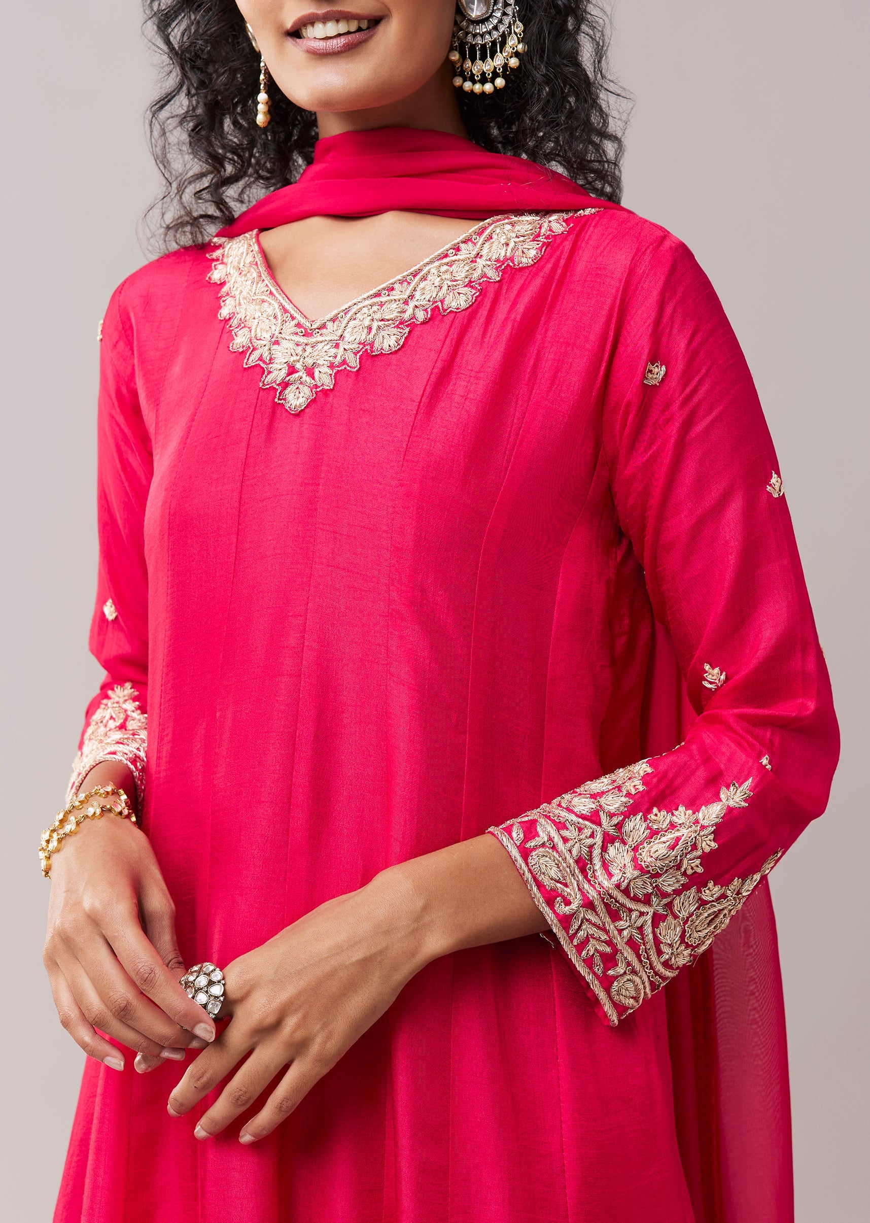 Pink Dola Silk Zardozi Embellished Anarkali Set