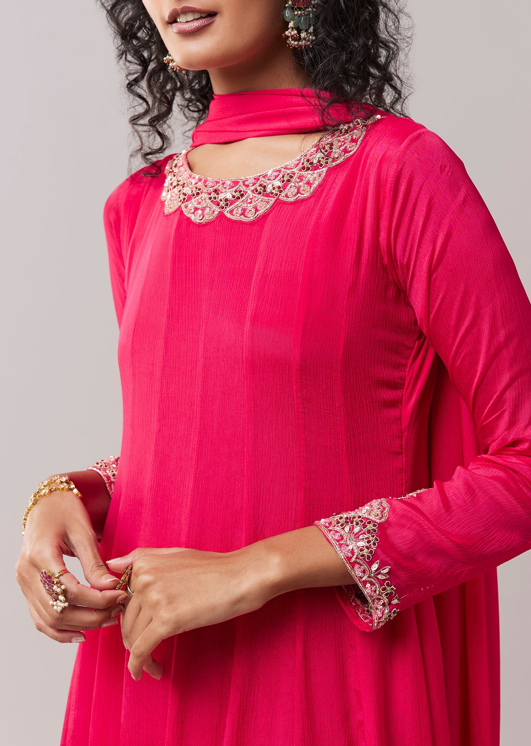 Fit Tips:The stitched anarkali offers a comfortable, flattering fit, while the flared silhouette ensures ease of movement and a graceful fall.