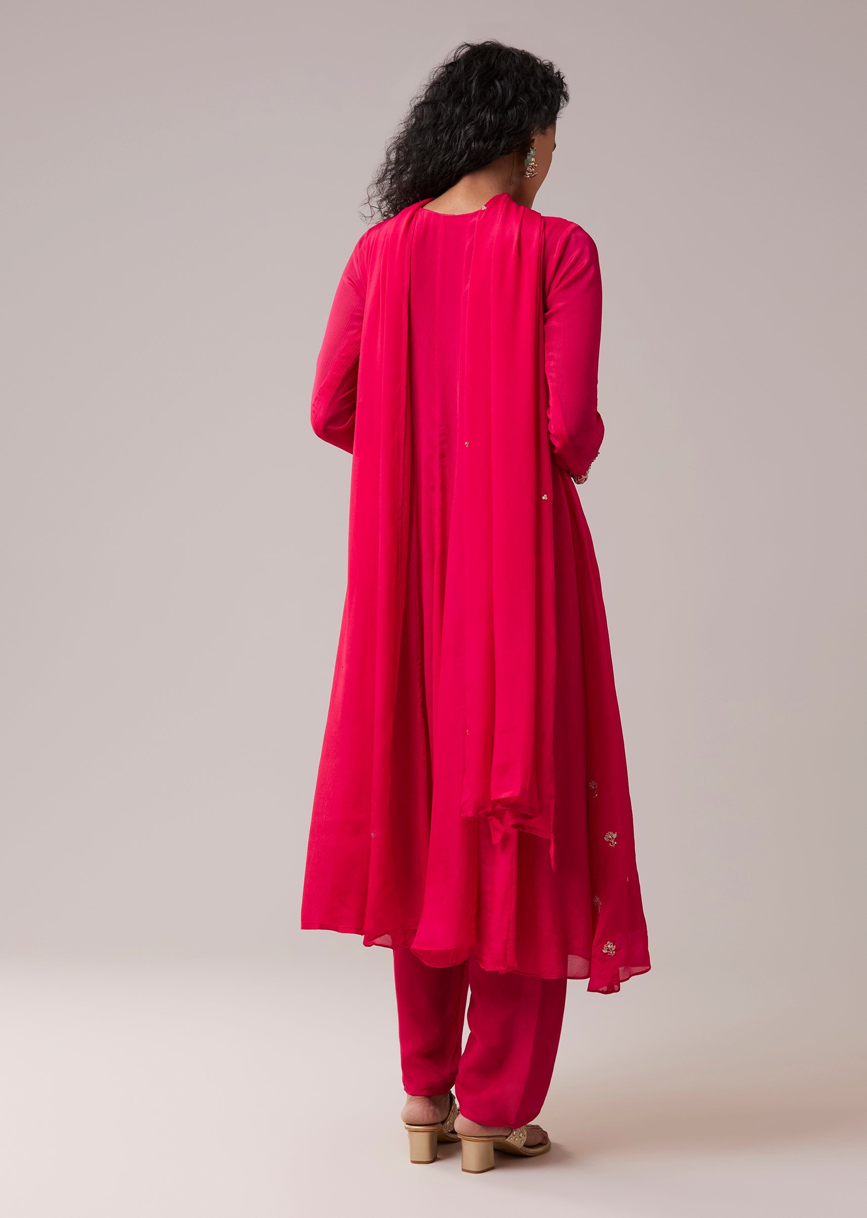 Light, fluid, and delicately radiant, this cut dana and sequins work anarkali is designed for effortless festive elegance. Crafted in airy chinon, the silhouette flows gracefully while the fine embroidery adds a soft shimmer. The classic round neckline and 3/4th sleeves lend a timeless, balanced appeal. Paired with matching pants and a coordinating dupatta, this ensemble is perfect for festive gatherings, celebrations, and elegant evening occasions. Awarded as the Most Trusted Brand, we're delivering styles you love, just as promised.