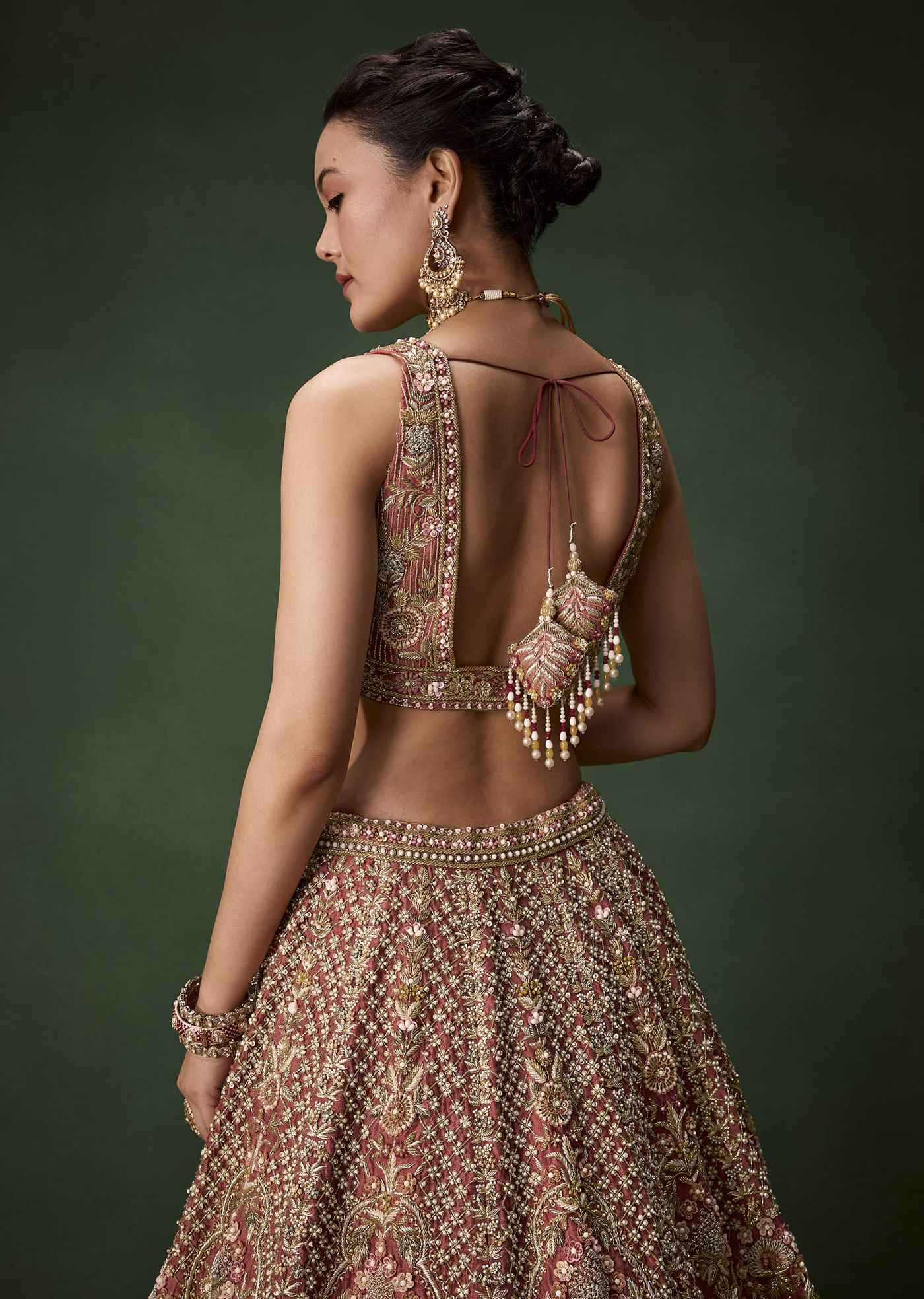Wrapped in refined bridal allure, this pink raw silk lehenga set showcases artisanal mastery and modern elegance. Intricate zardozi and patchwork artistry add depth and heirloom richness to the luxurious... More Product Details