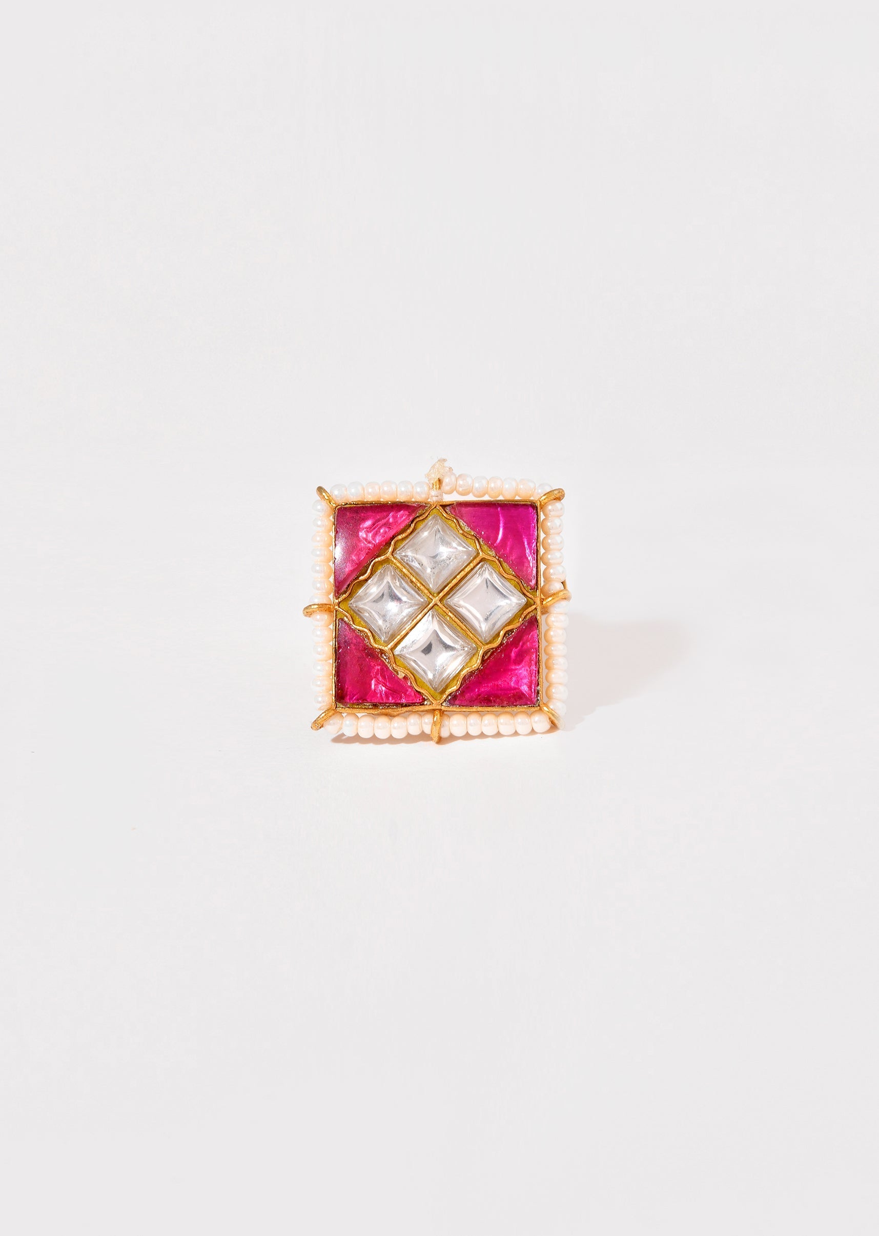 Make a chic statement with this pink geometric kundan ring, crafted with clean lines and vibrant stonework for a modern traditional look. Perfect for festive occasions or everyday elegance, it adds a refined pop of color to any ensemble.Awarded as the Most Trusted Brand, we're delivering styles you love, just as promised.