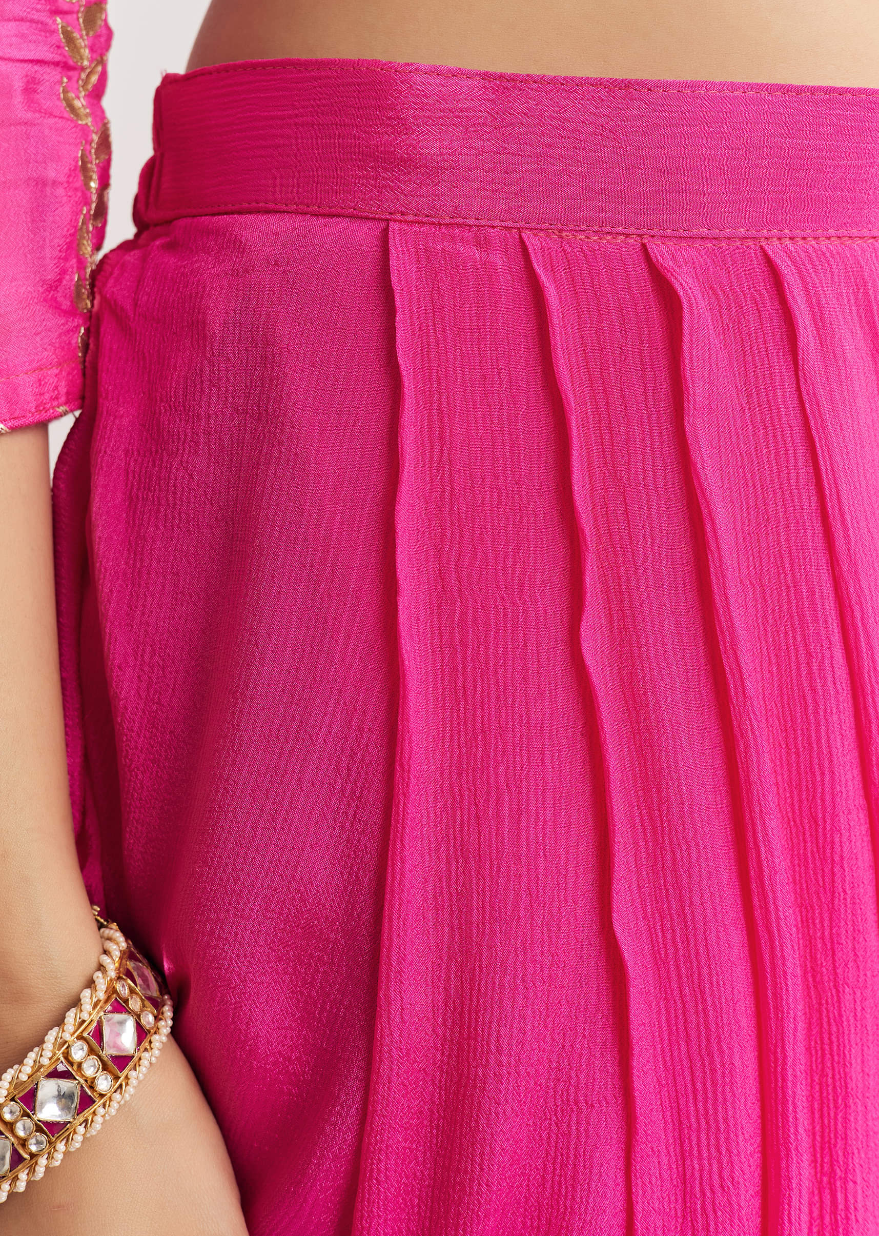 Pink Georgette Kurta Dhoti Suit With Gotta Lace And Moti Work