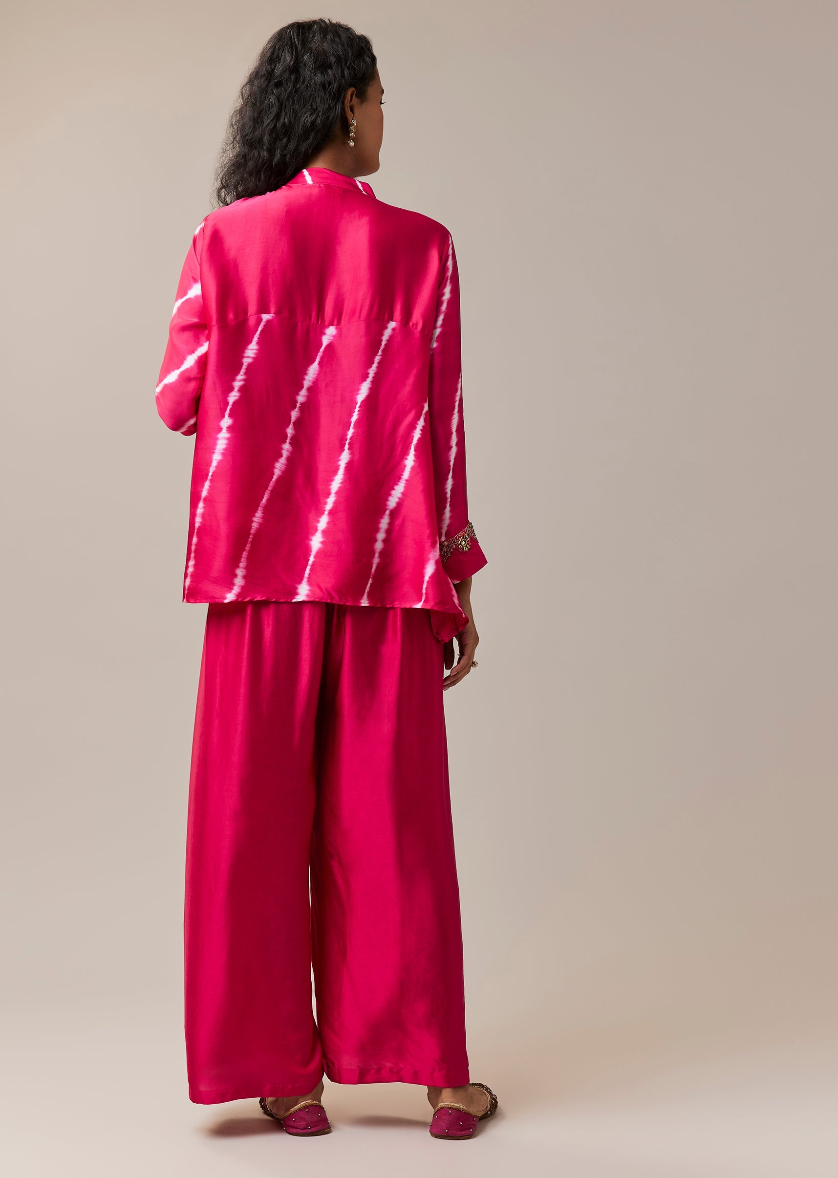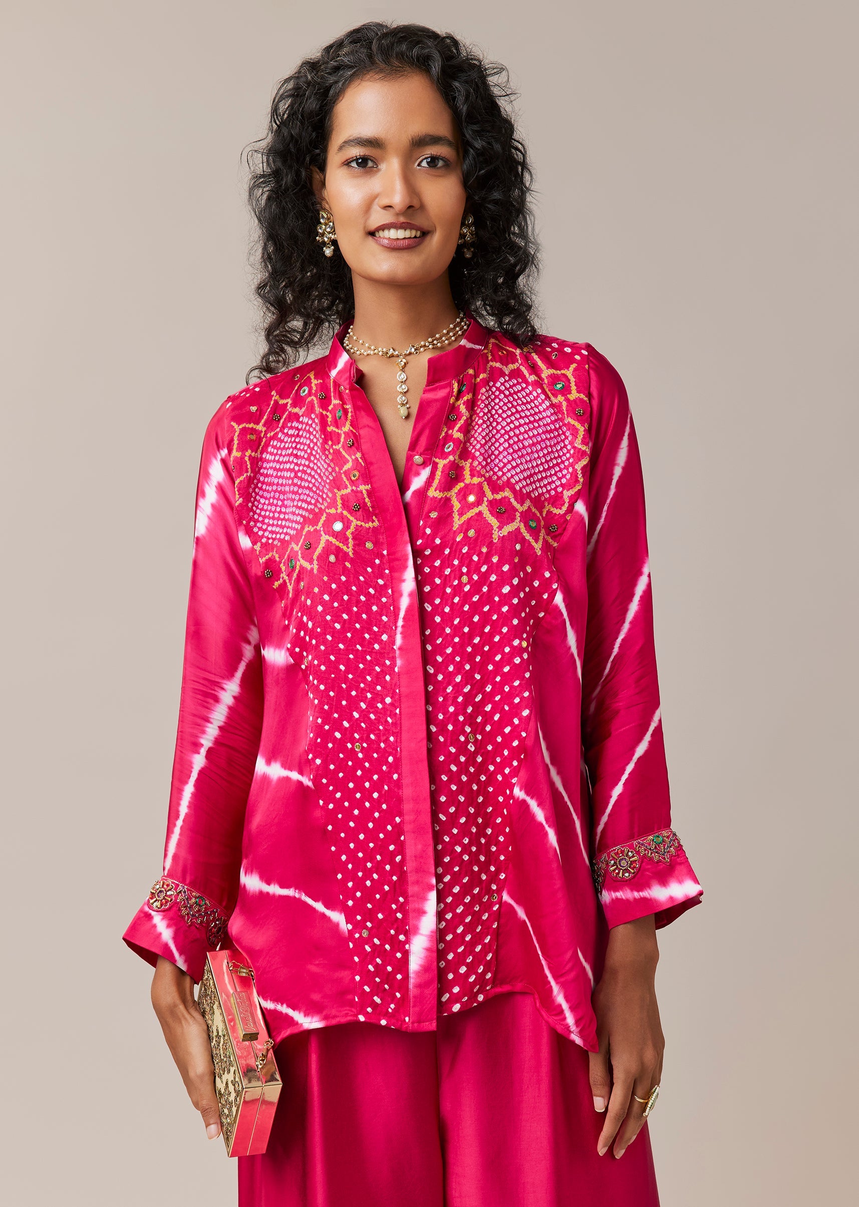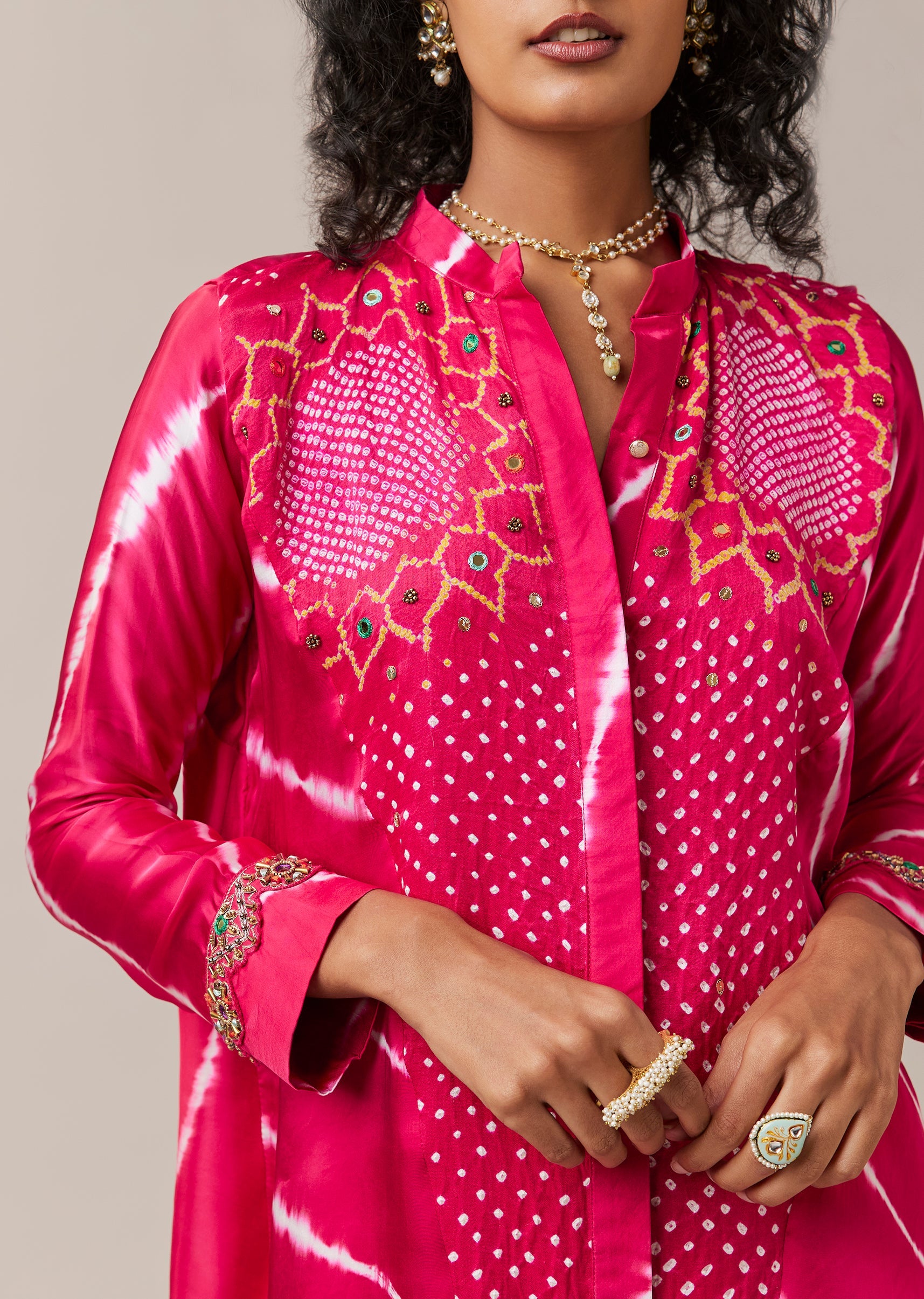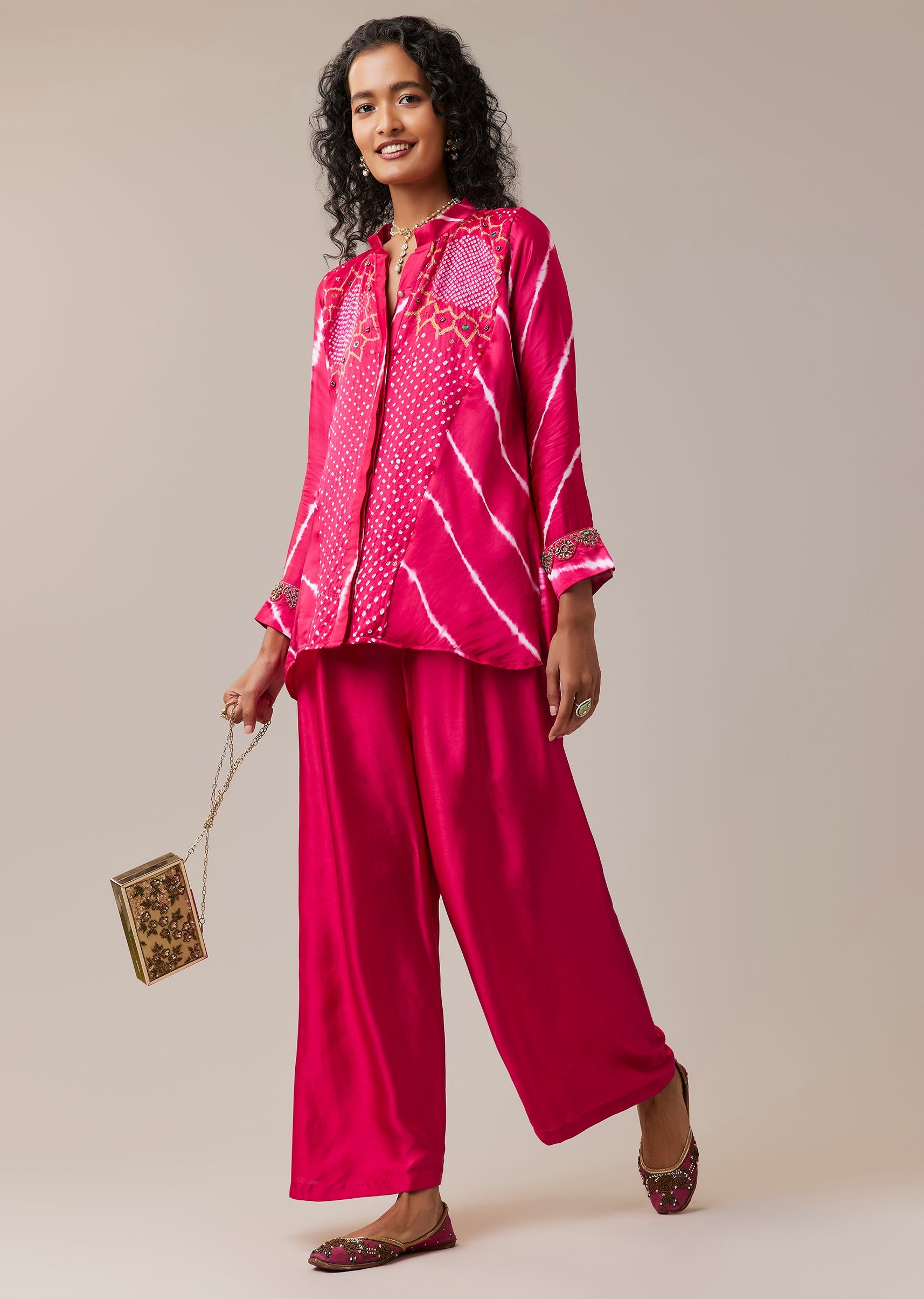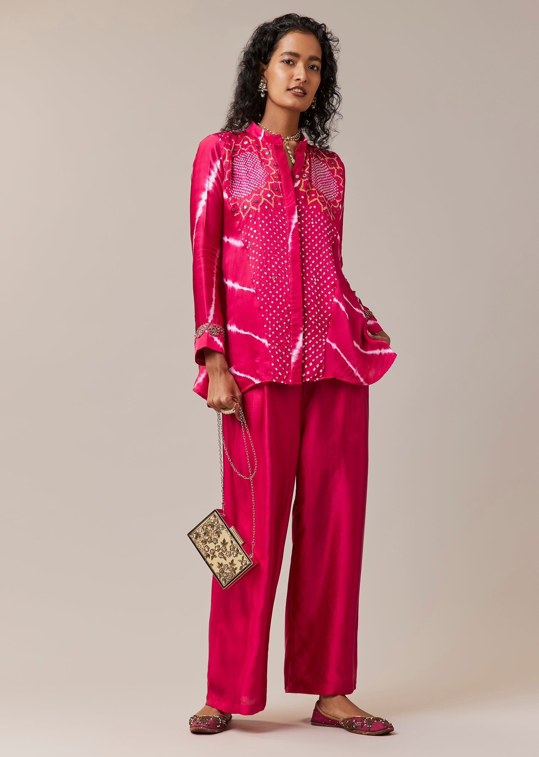 Pink Hand Dyed Bandhani and Leheriya Shirt Pant Set