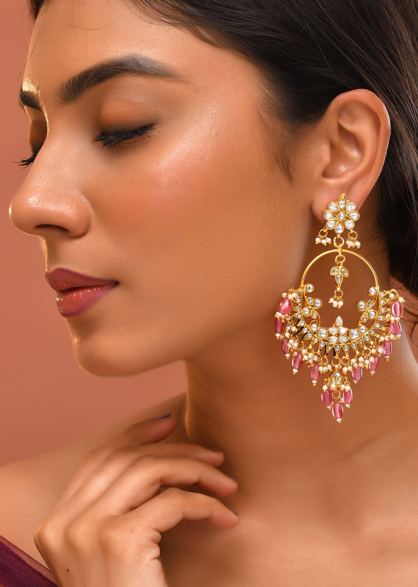 Turn heads with these pink kundan oversized bead drop earrings, crafted with intricate detailing and bold drops for a striking festive look. Perfect for weddings or special occasions, they add a vibrant and elegant touch to any traditional outfit.Awarded as the Most Trusted Brand, we're delivering styles you love, just as promised.