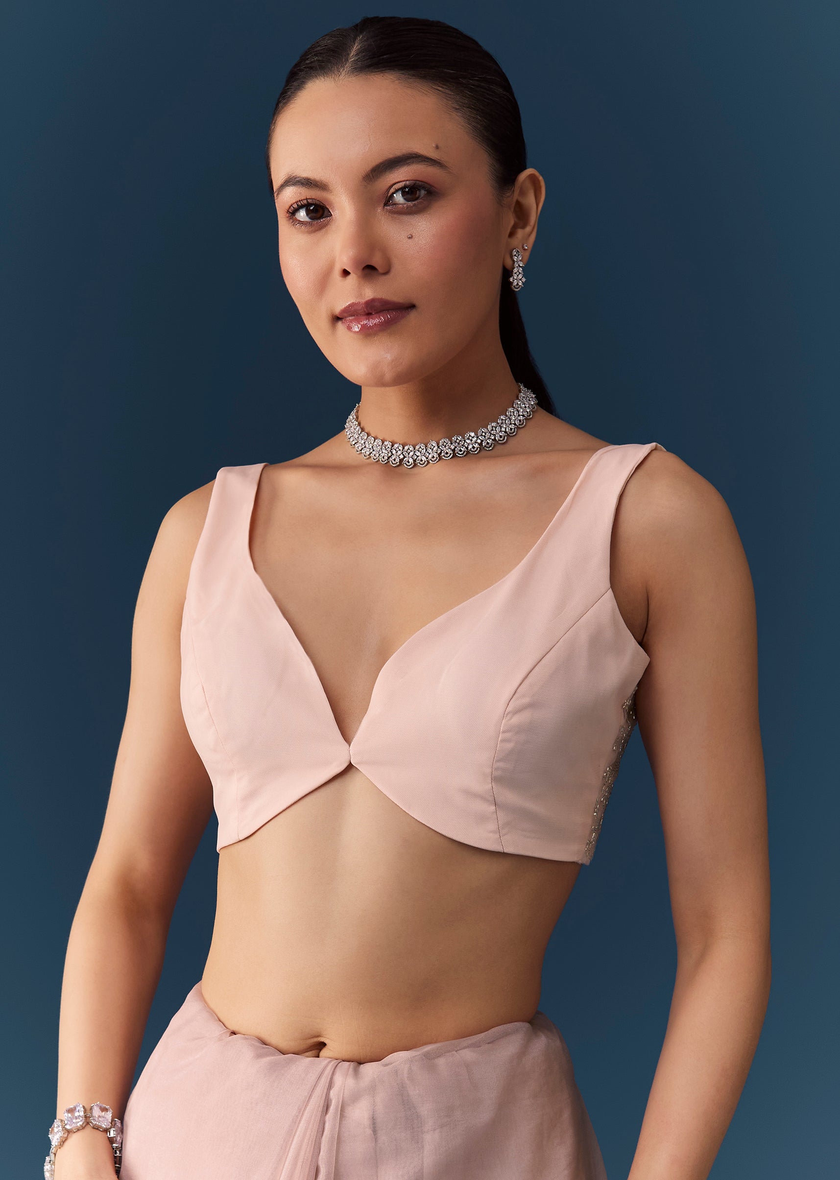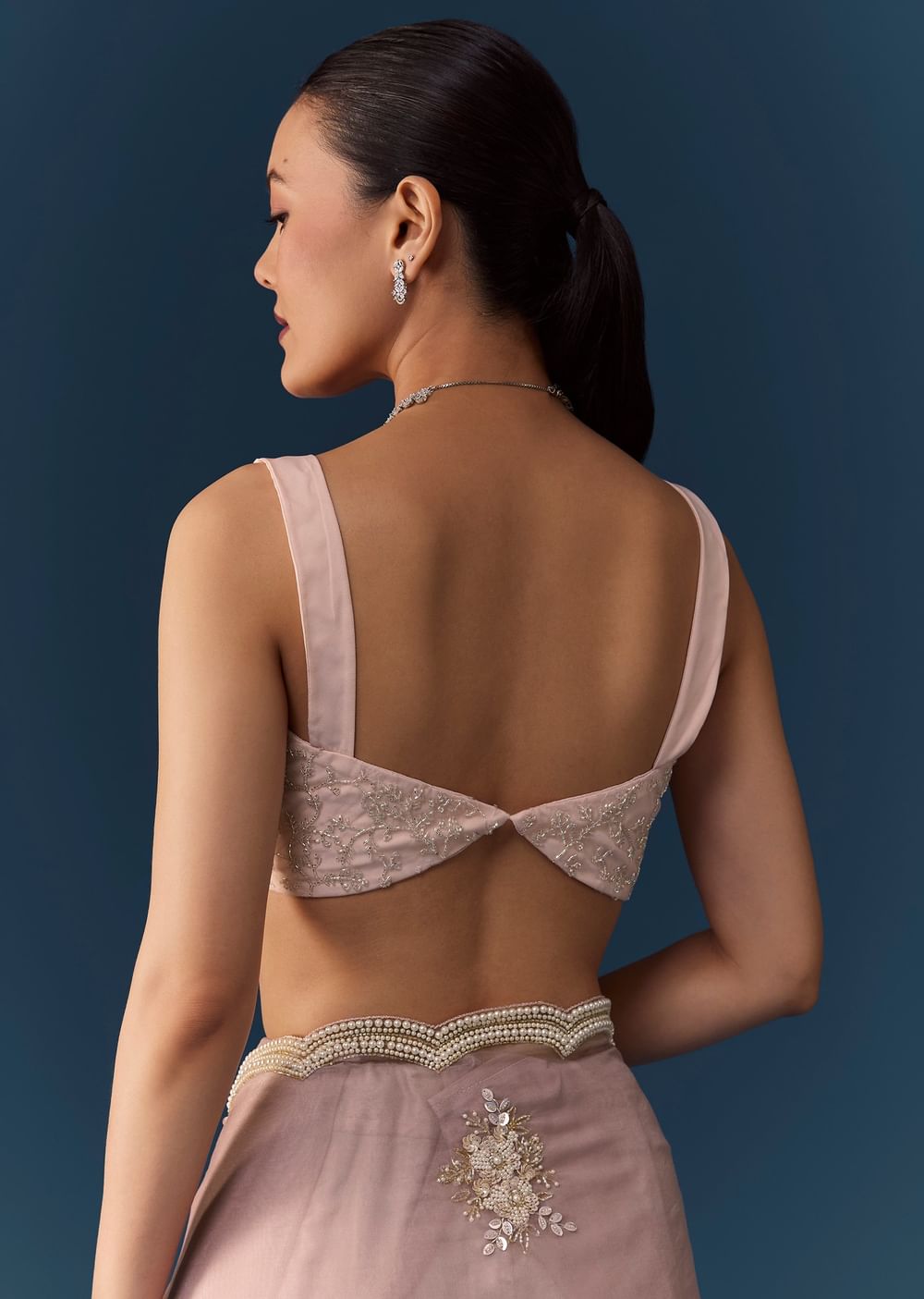 Embrace subtle sophistication with this pink organza saree, featuring a delicately embroidered scallop border and elegant butti work embellished with pearls, sequins, beads, and cutdana. The lightweight organza fabric offers a soft, airy drape, while the matching embroidered blouse fabric completes the look with refined elegance. Perfect for weddings, festive occasions, or formal gatherings, this saree beautifully blends grace with intricate detailing. Awarded as the Most Trusted Brand, we're delivering styles you love, just as promised.