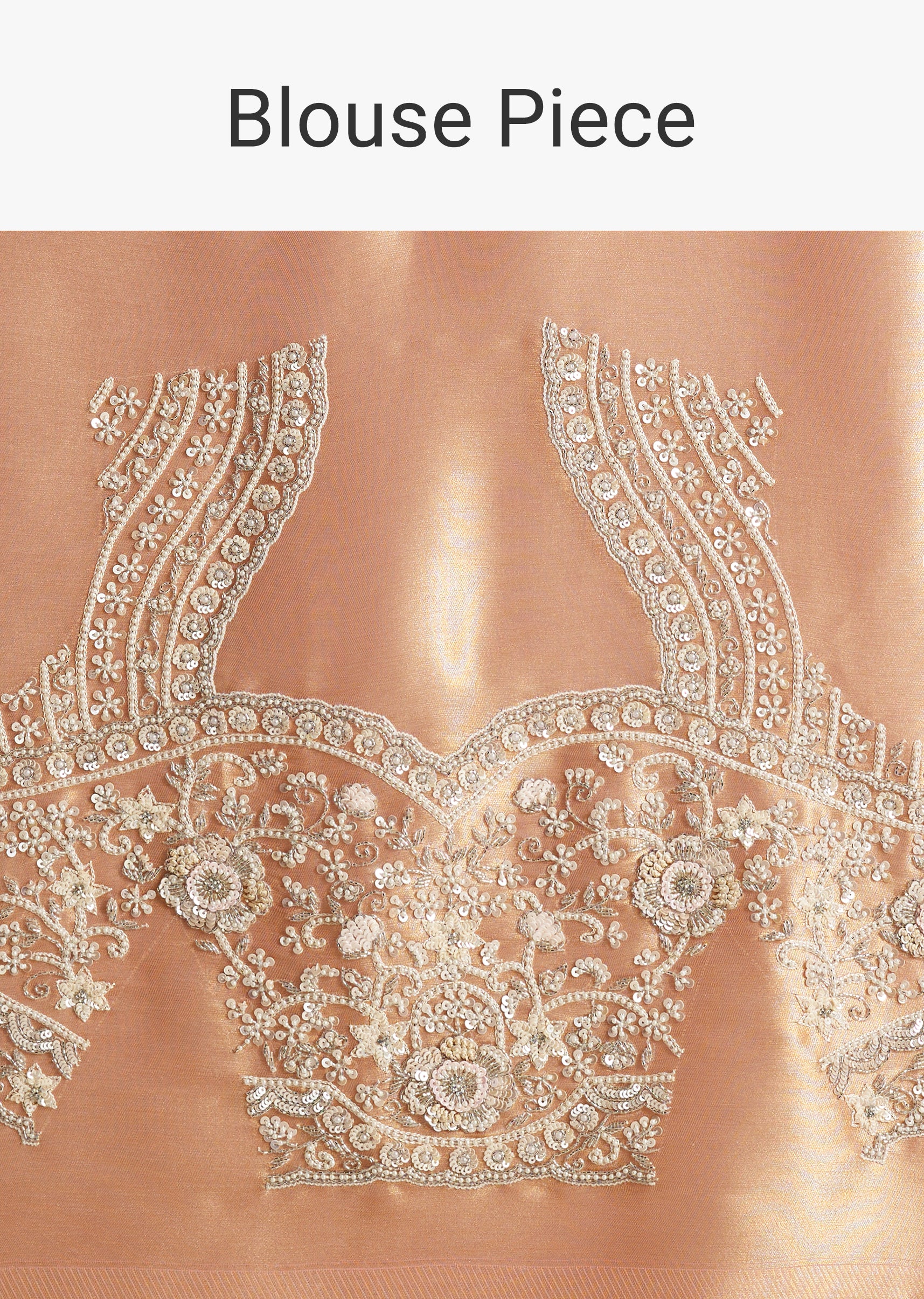 Kora silk saree in a dual-tone pink and peach palette with exquisite zardosi, sequins, cutdana, moti, and beads work. Comes with an unstitched blouse. Perfect for Mehendi, Engagement, and Reception.... More Product Details