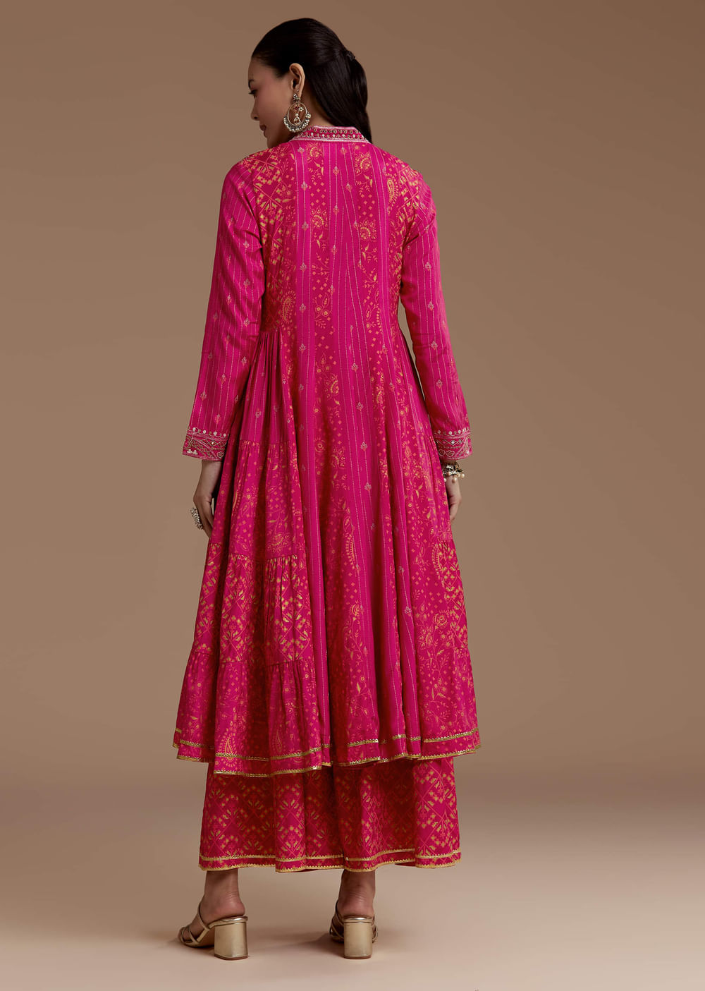 Pink Printed Flared Kurta and Palazzo Set