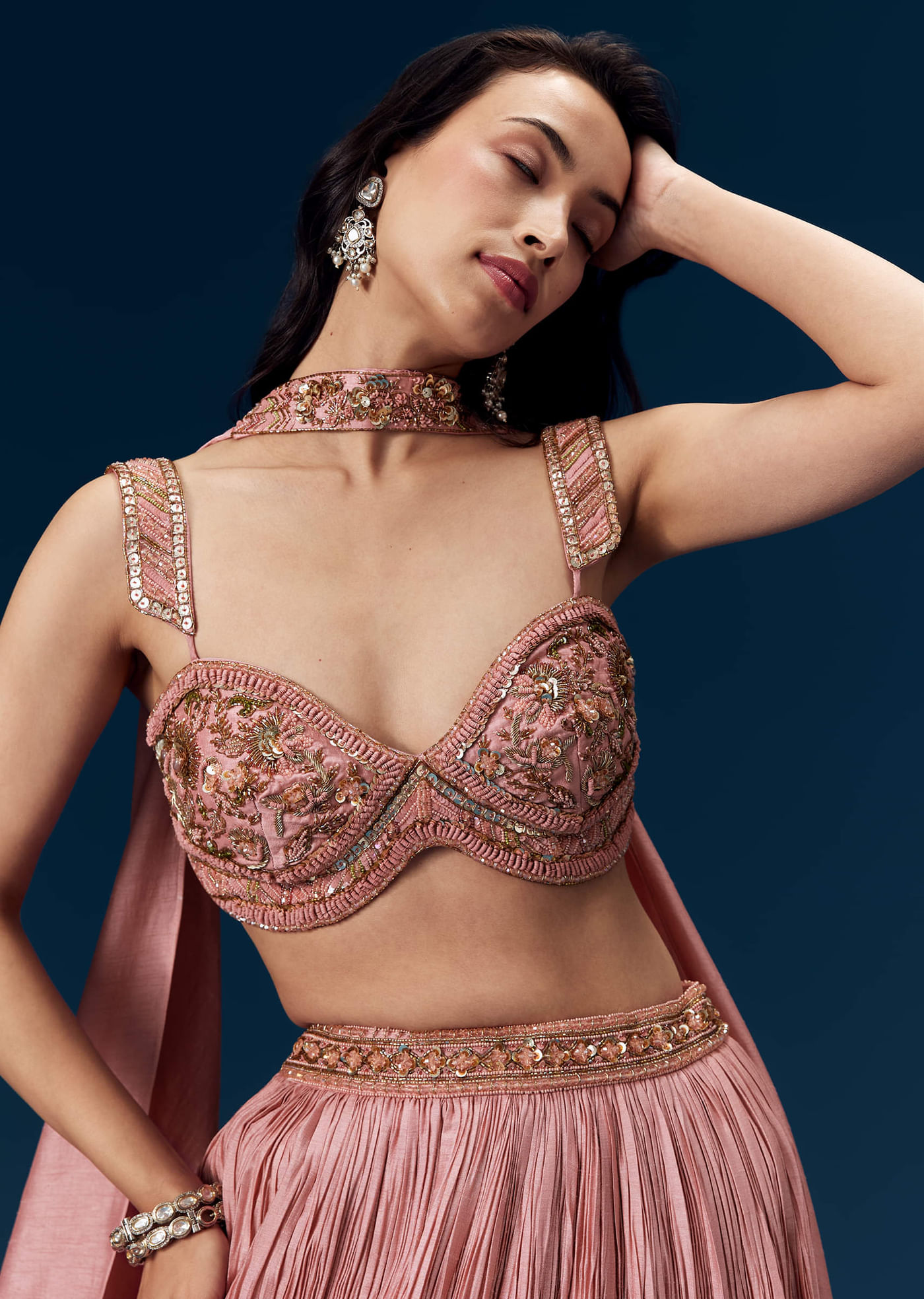 Pink Ruched Bridesmaid Lehega with Choker Dupatta