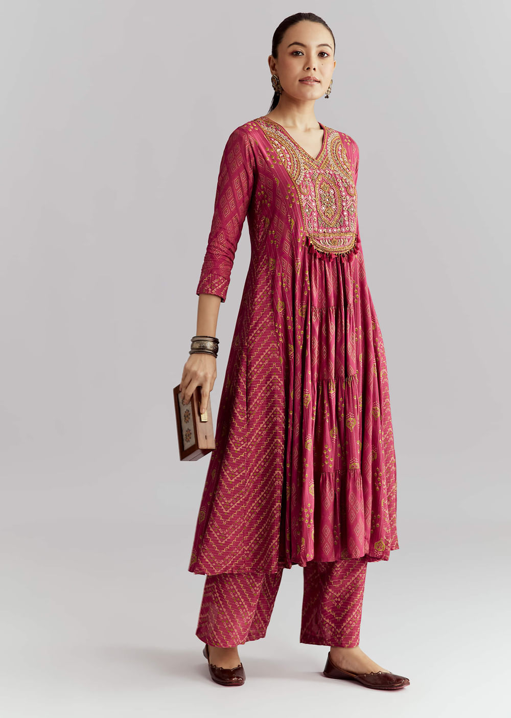 Pink Silk Anarkali Suit With Indie Print And Intricate Embroidery