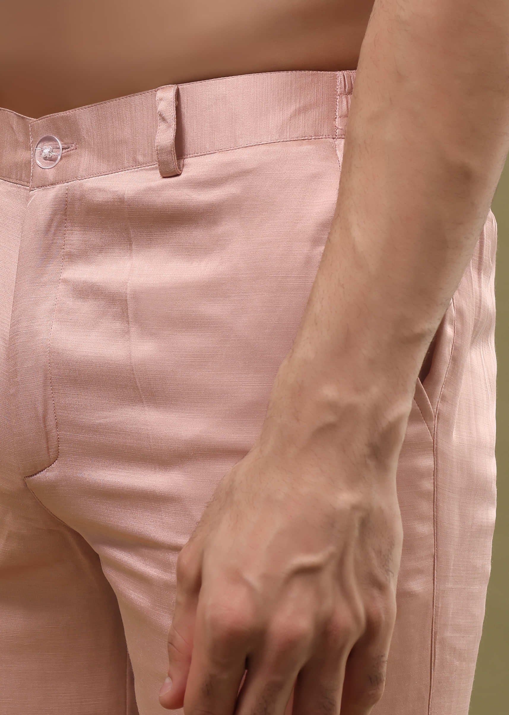 Pink Silk Kurta Set In Resham Work With Dupatta For Men