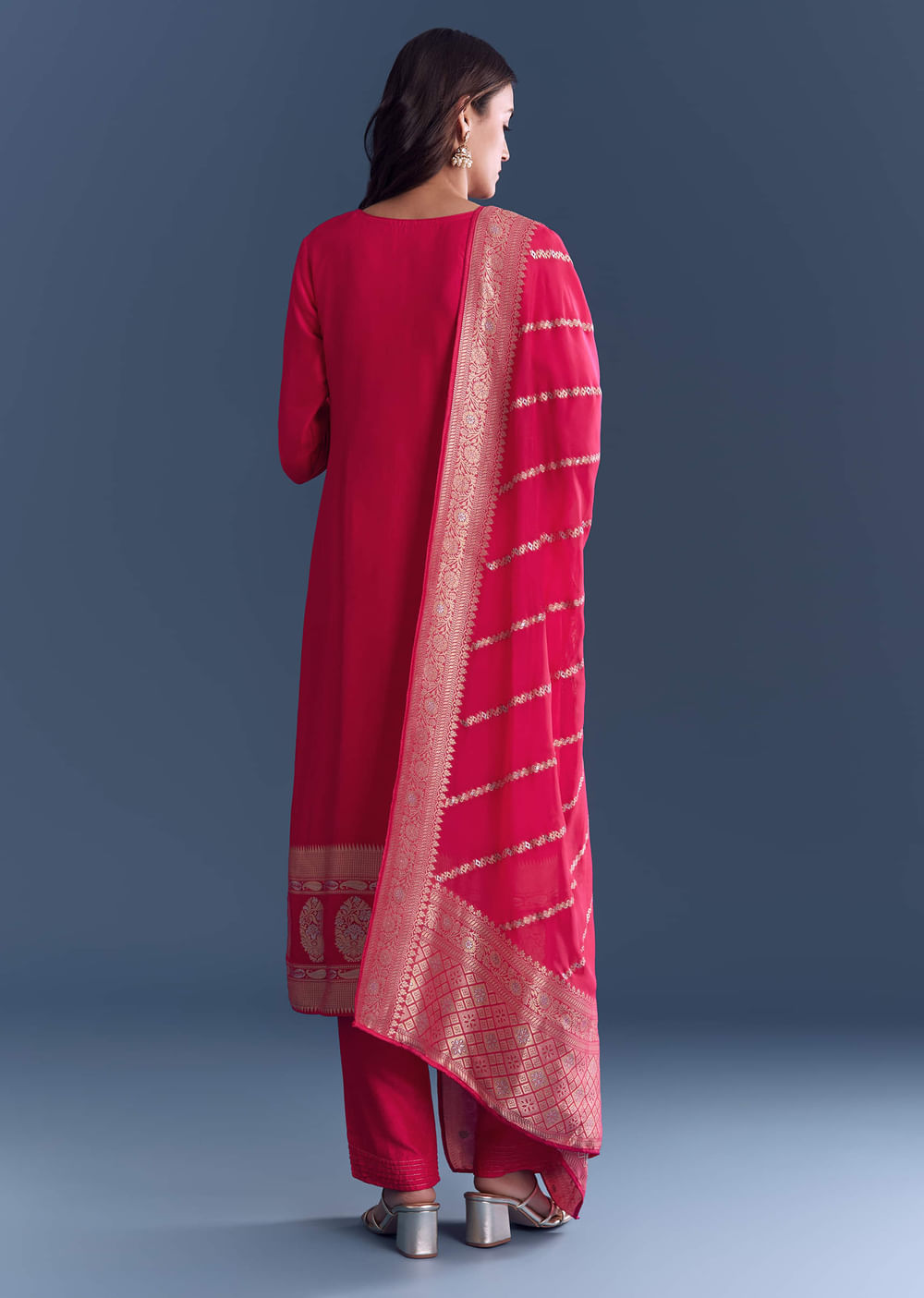 When elegance needs clear craft, this pink silk kurta set frames the silhouette with a refined sheen. Banarasi weave provides heritage detail that reads premium in every light. You feel... More Product Details