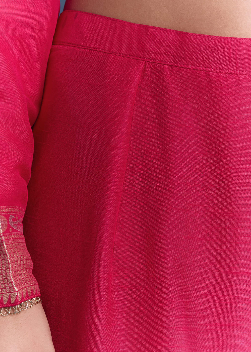 Pink Silk Kurta Set With Banarasi Weave