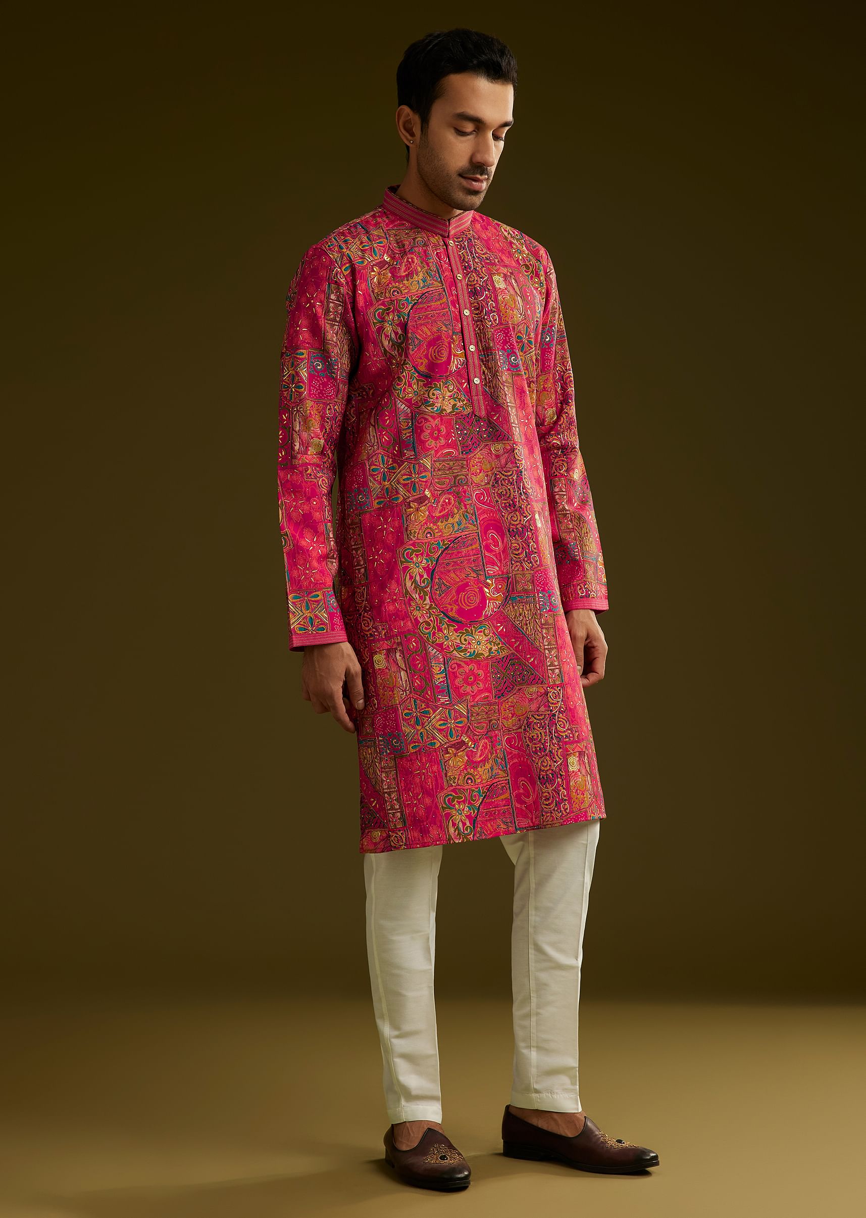 A charming pink silk kurta set with elegant floral abstract prints. The mandarin collar full sleeves and front button closure create a graceful and sophisticated ethnic look..Awarded As The Most Trusted Brand We'Re Delivering Styles You Love Just As Promised.