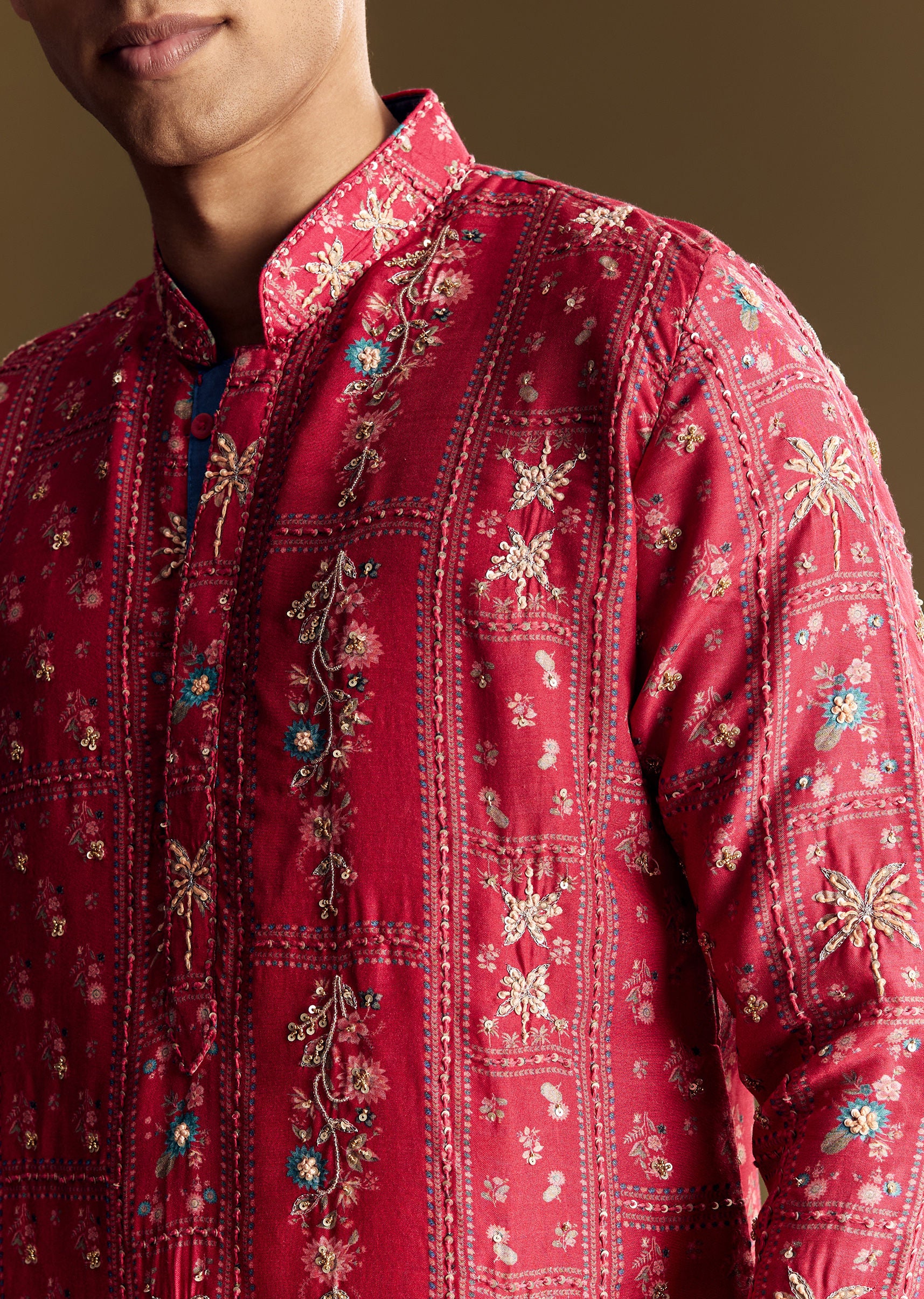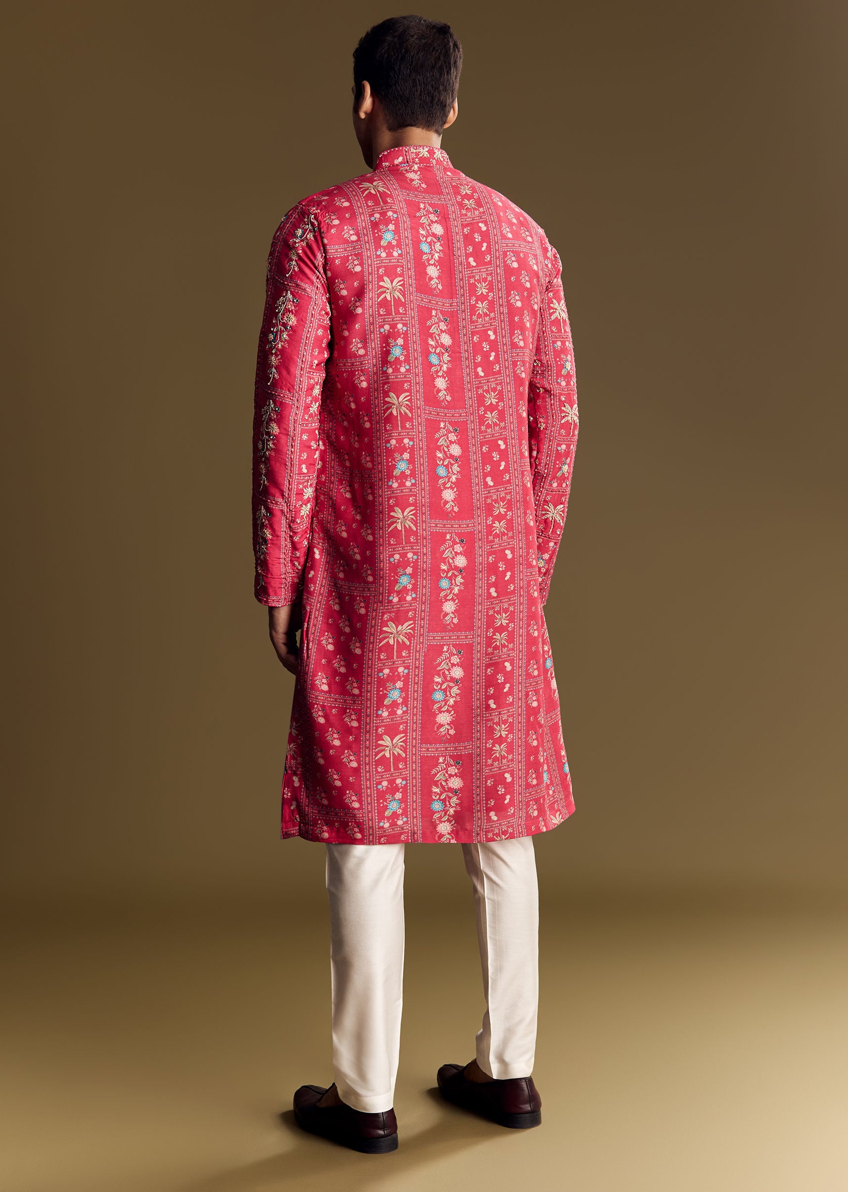 A festive pink kurta set made from luxurious silk, featuring subtle resham threadwork and sequin detailing to create a polished and lively ethnic appearance. Awarded as the Most Trusted Brand,... More Product Details