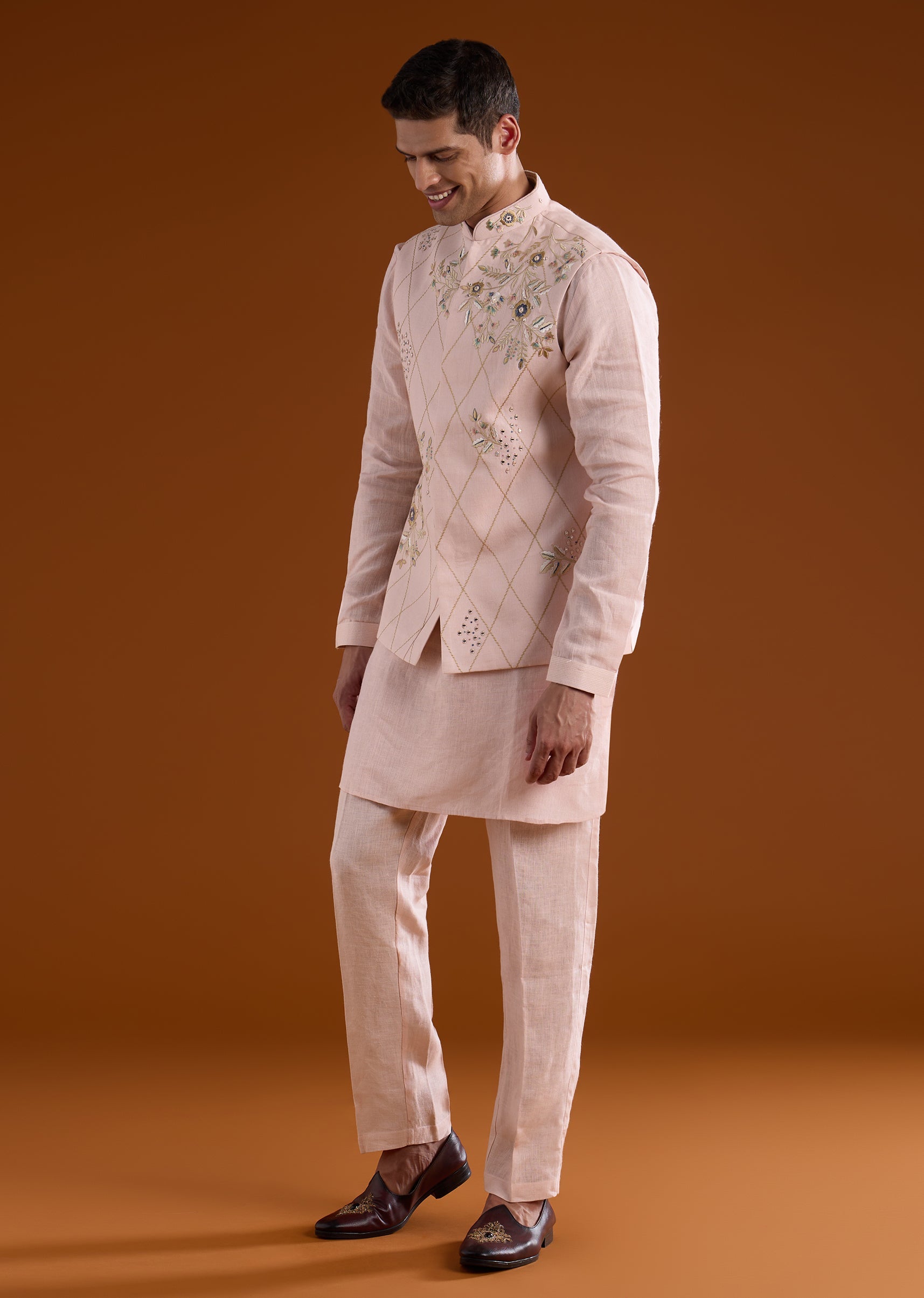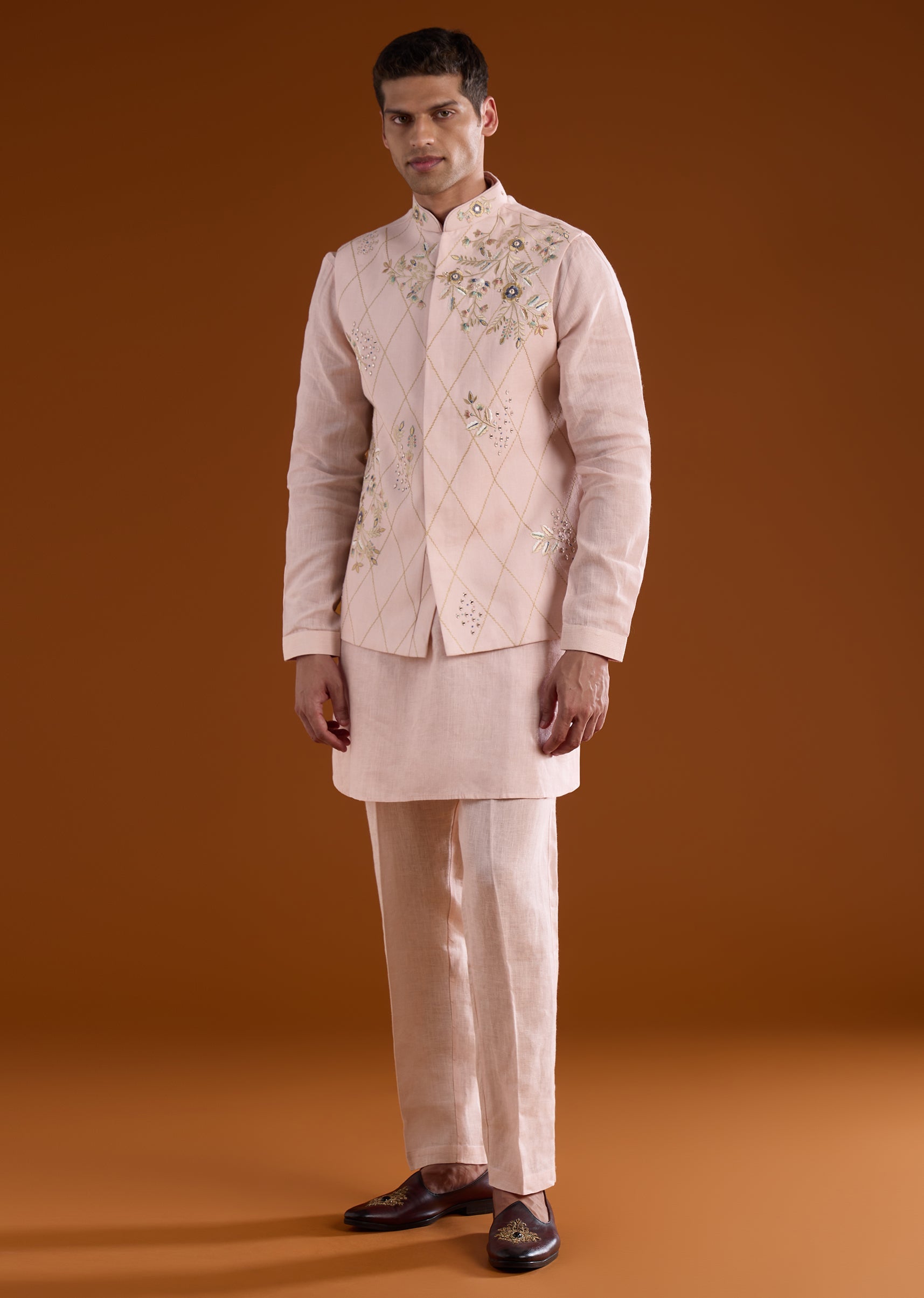 Fit Tips:Ensure the jacket sits comfortably on the shoulders with ease through the arms, and the kurta drapes smoothly for effortless movement during long ceremonial events.