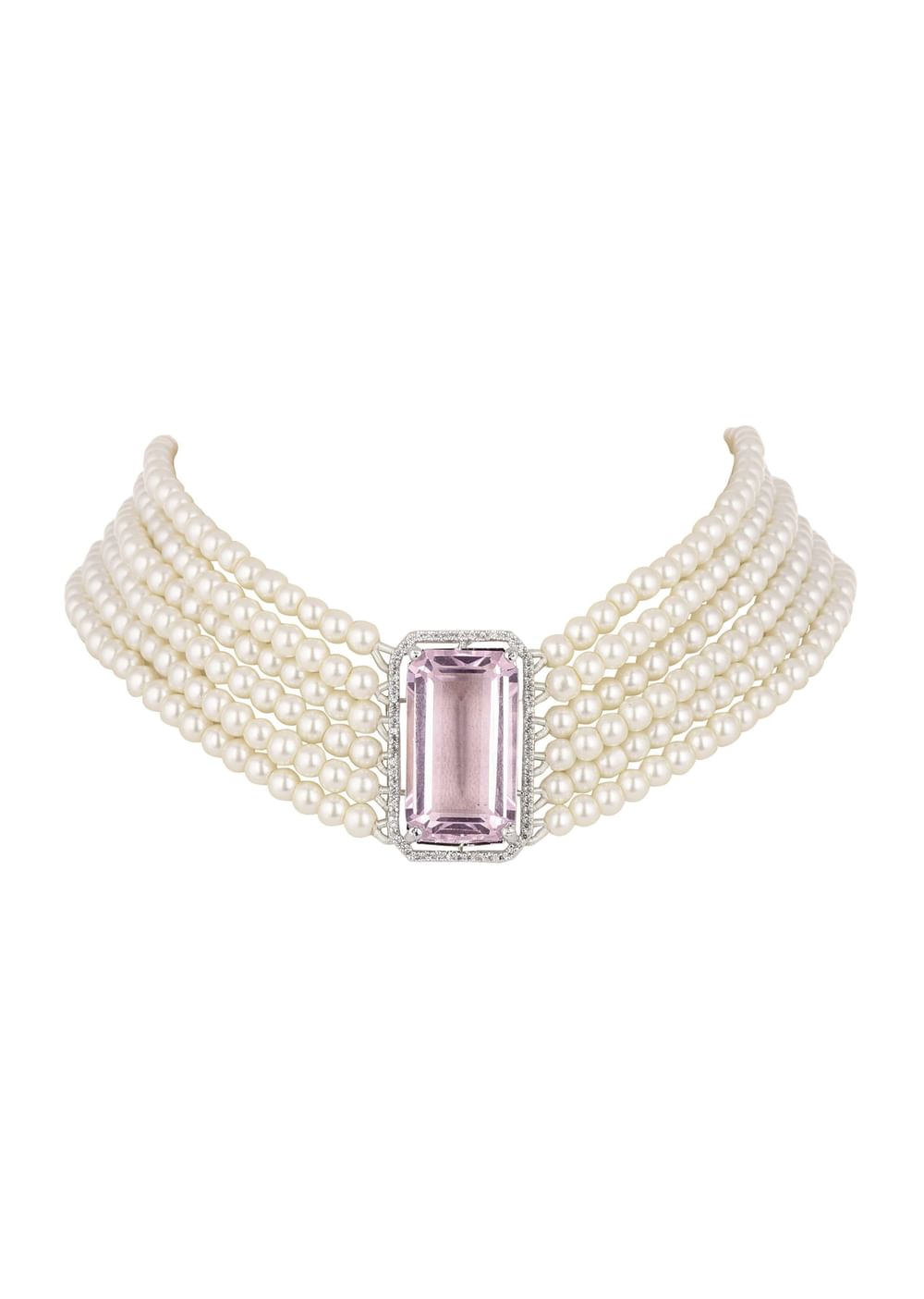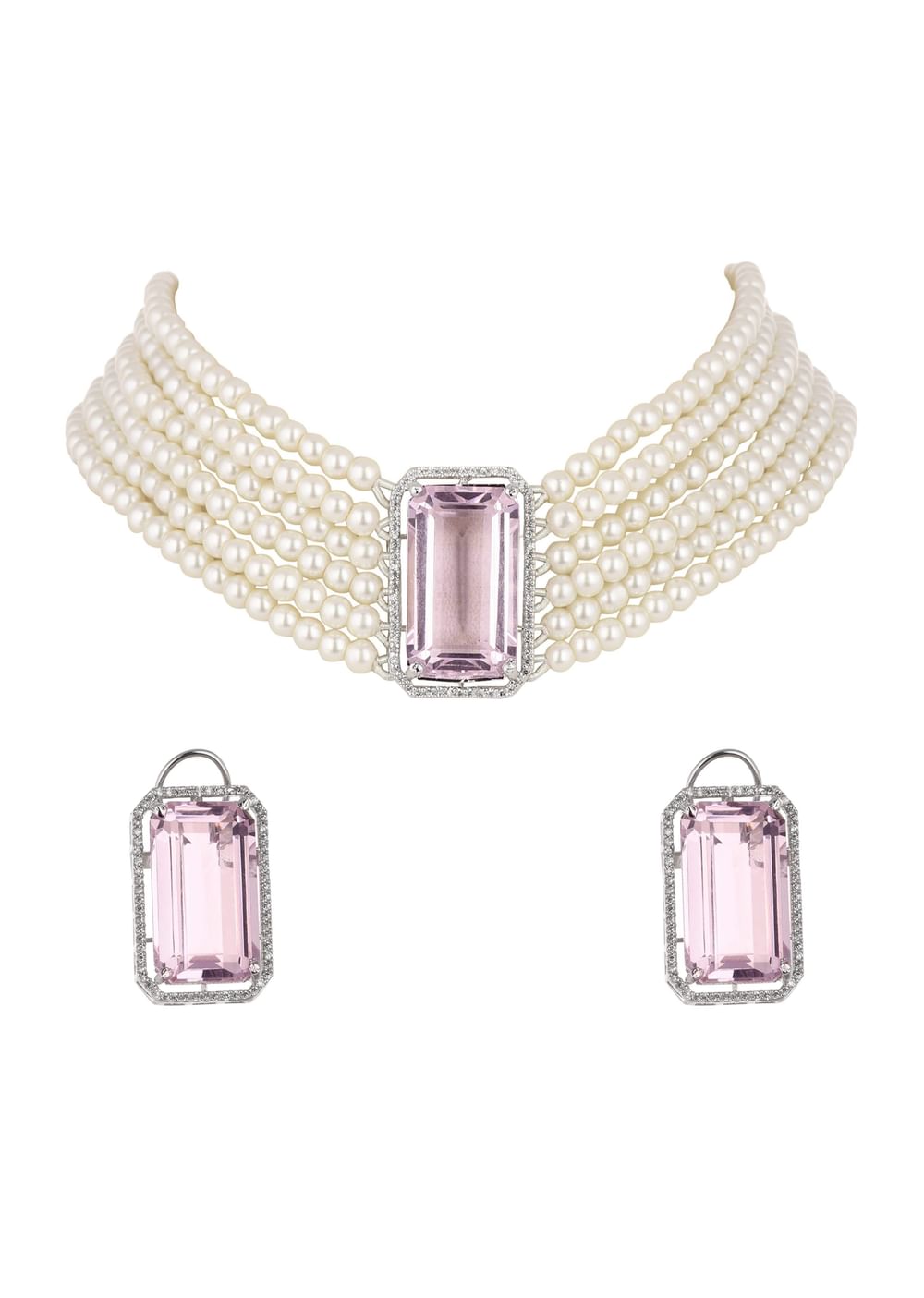 Add a touch of edgy elegance to your look with our pearl choker and earring set in mix metal. This statement piece combines feminine pearls with a bold pink stone in the center creating a perfect balance of sophistication and a rock 'n' roll attitude. EVENT - The set is perfect for all festive occasions including weddings.Store in a dust bag. Keep away from moisture perfume alcohol and harsh chemicals. Spot clean only. Keep away from sharp objects. Actual color may slightly vary due to photographic lighting sources and device screen settings. Awarded as the Most Trusted Brand, we're delivering styles you love, just as promised.