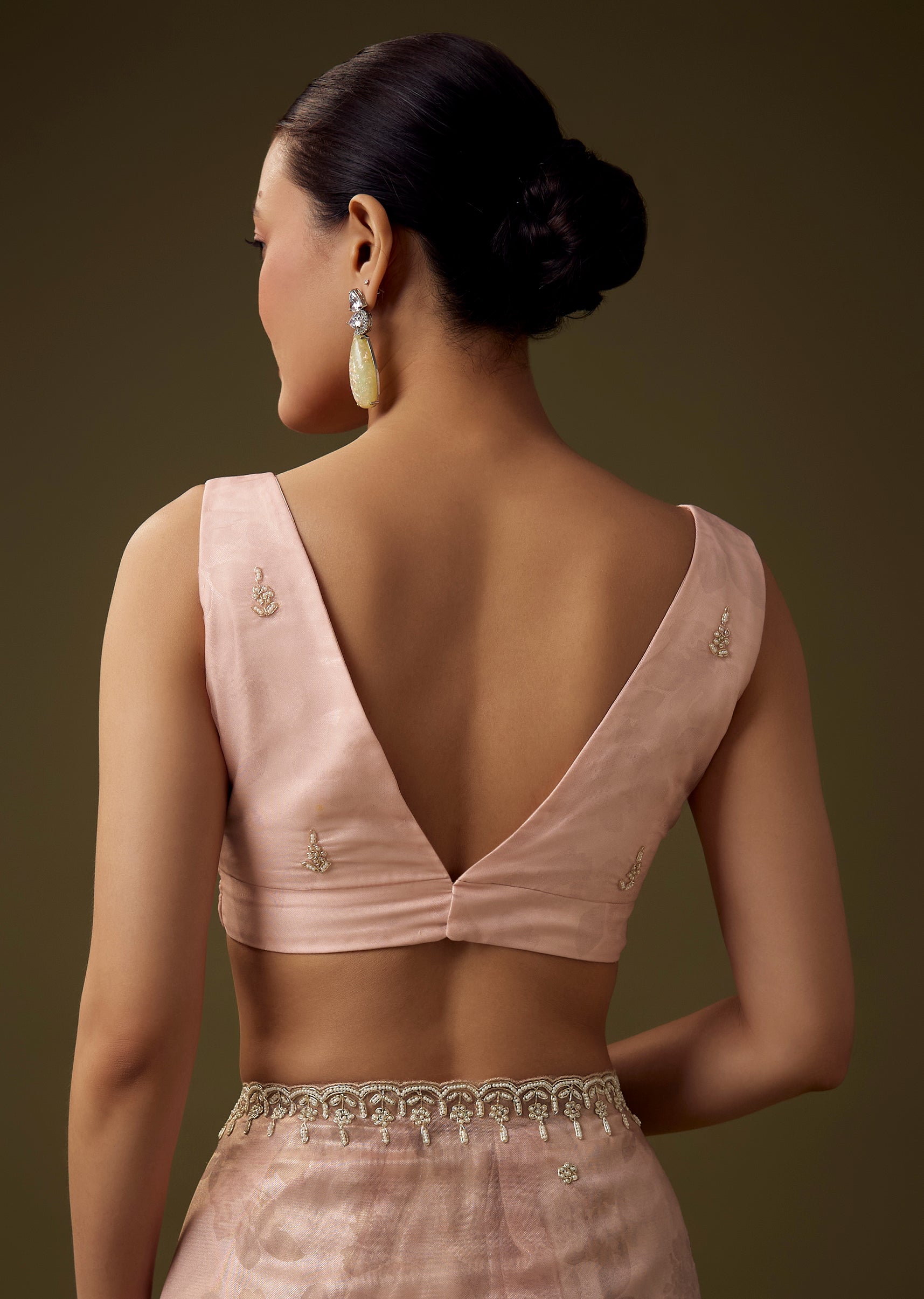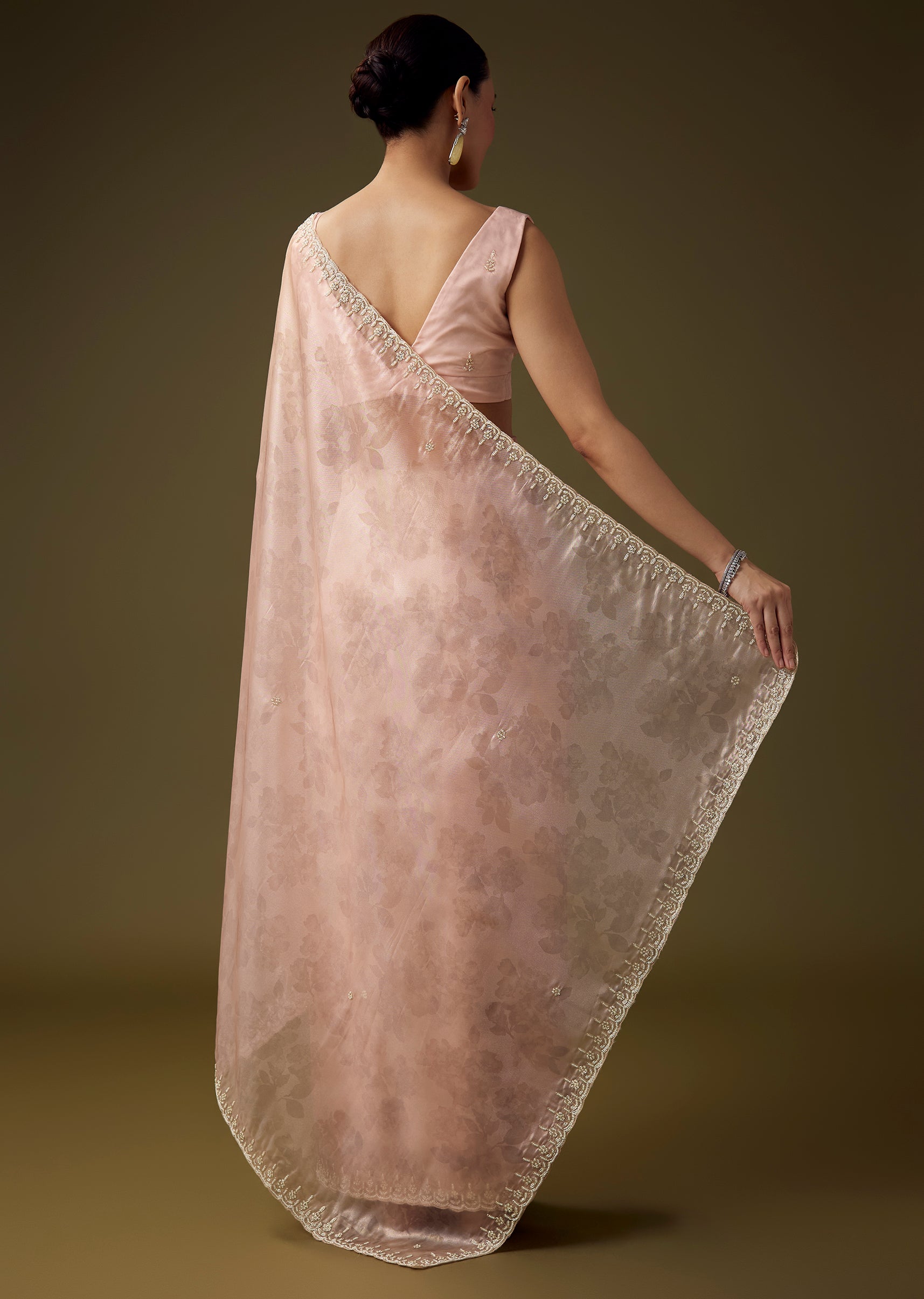 Pink Tissue Moti Embroidered Saree with Unstitched Blouse