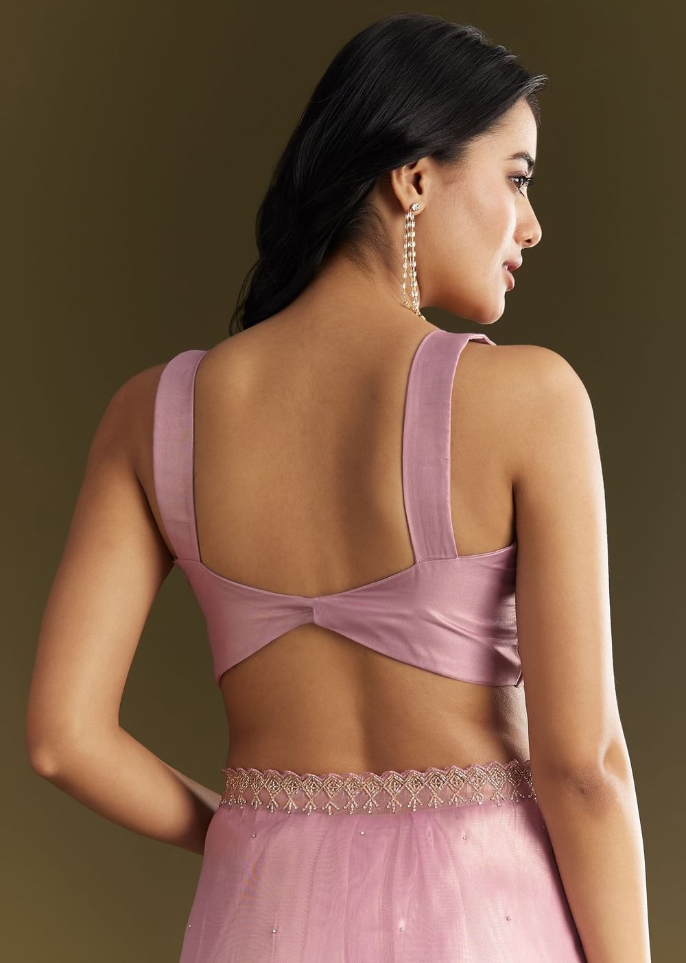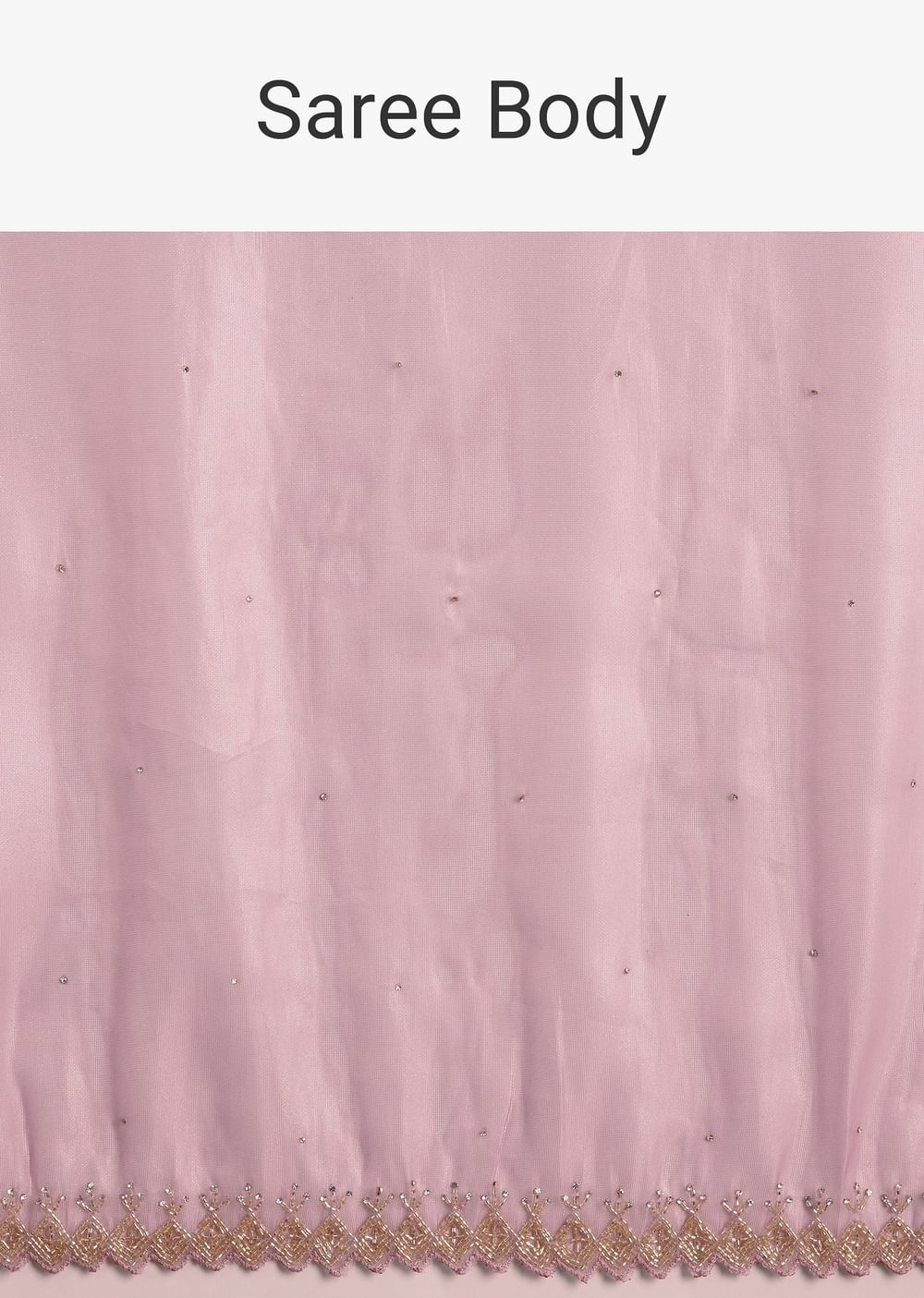 Pink Tissue Saree With All Over Stone Embellishment And Cutdana Scallop Border