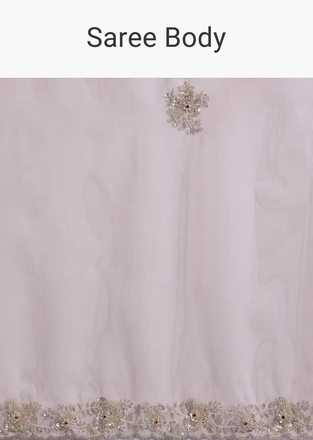 Pink Tissue Saree With Heavy Floral Hand Embroidery