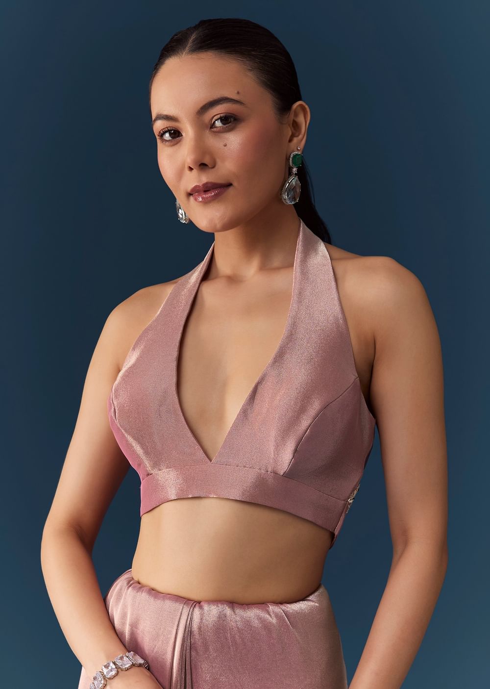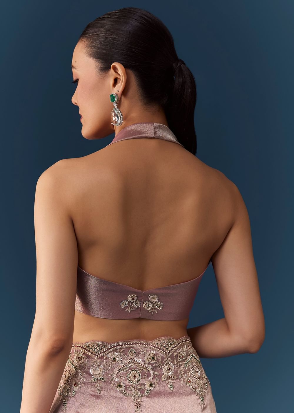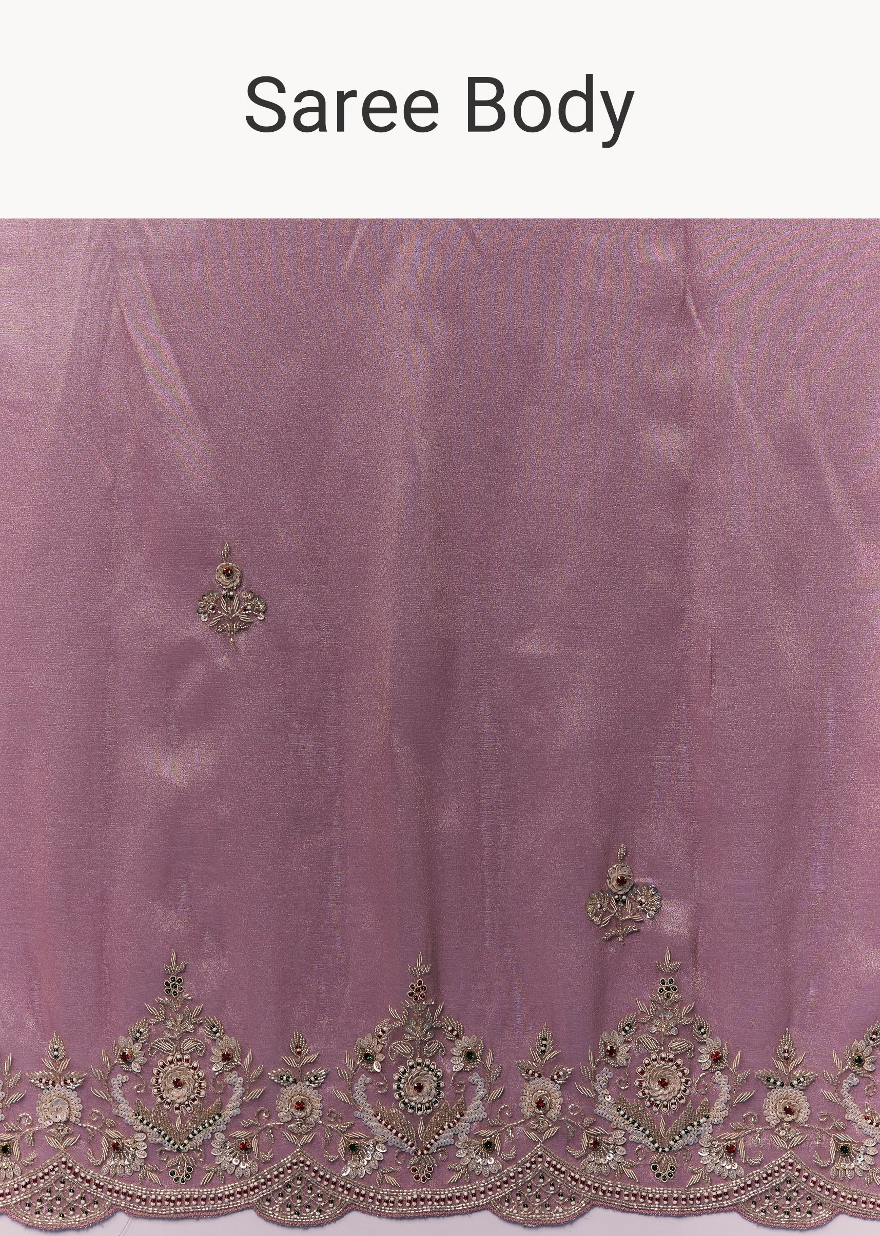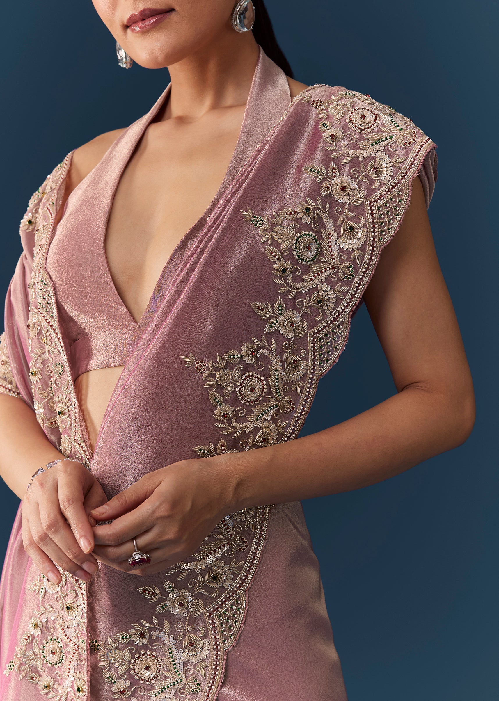 Pink Tissue Silk Embroidered Saree with Blouse Fabric
