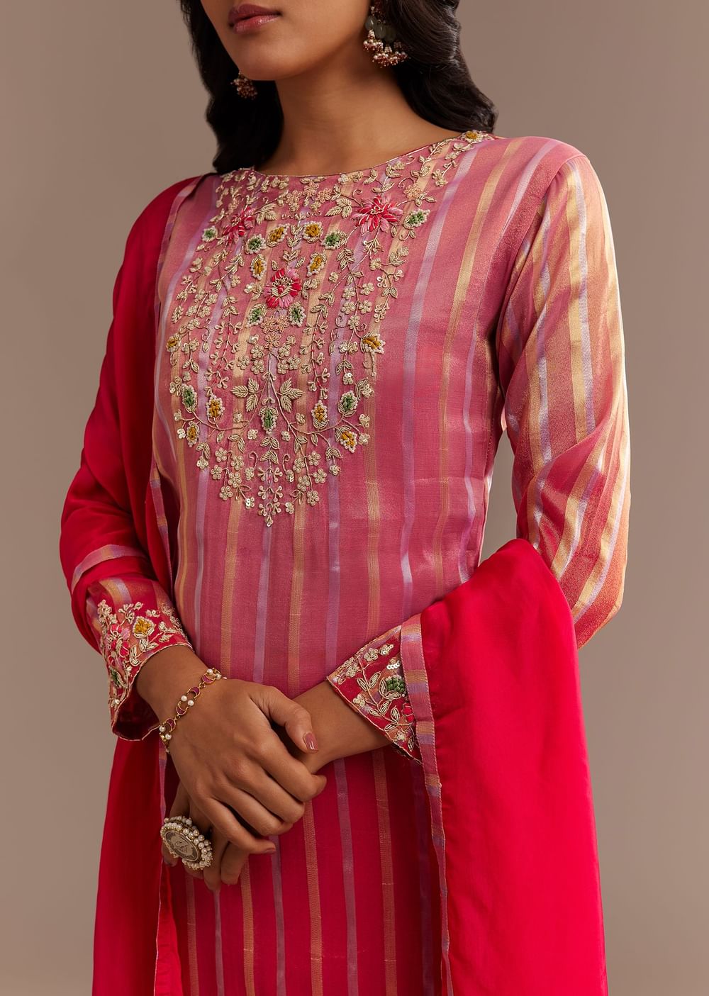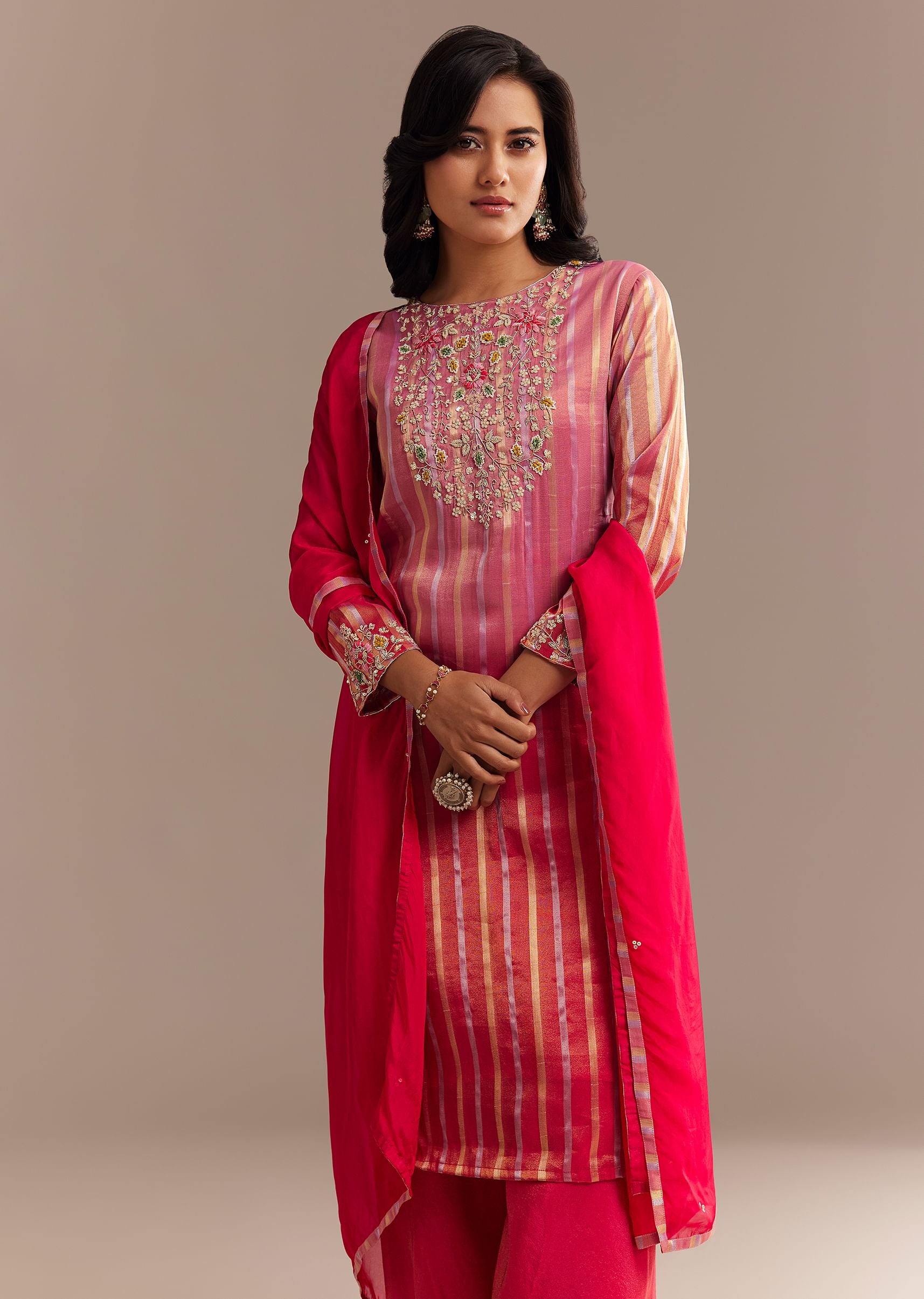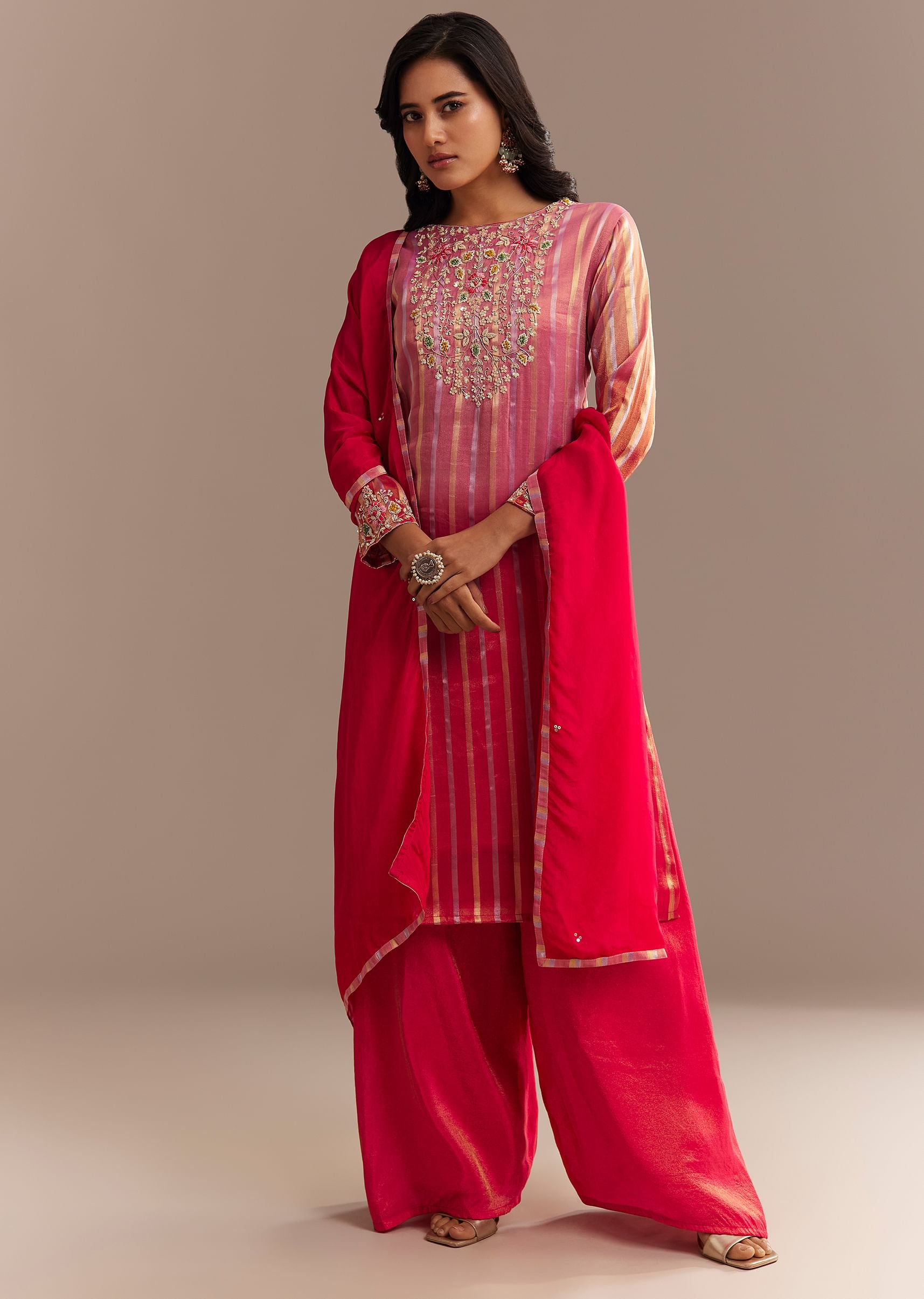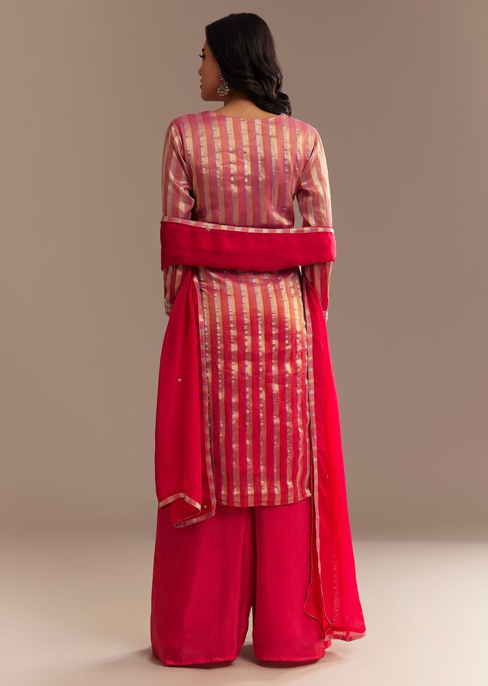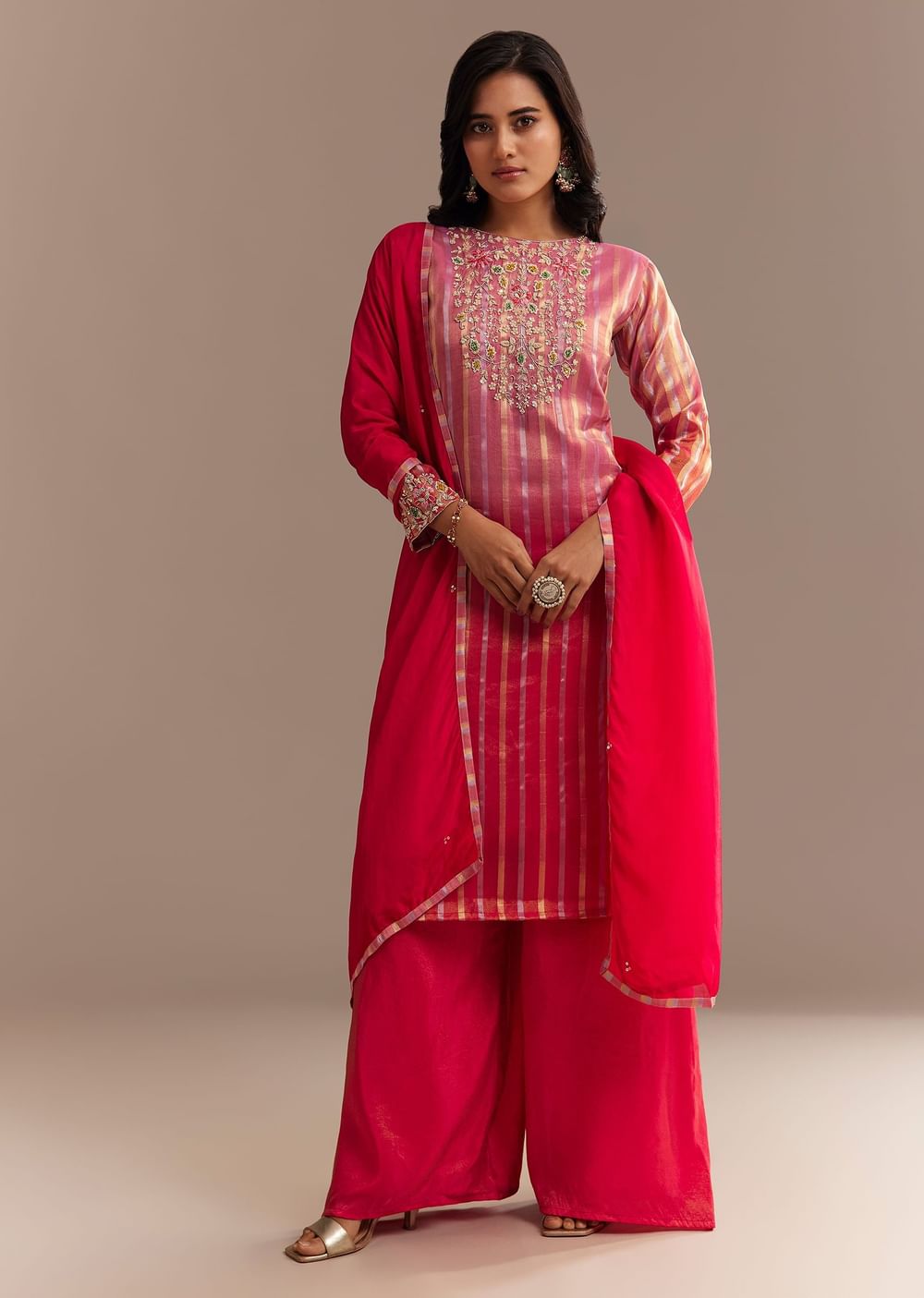 Pink Tissue Zardosi Embroidered Palazzo Set